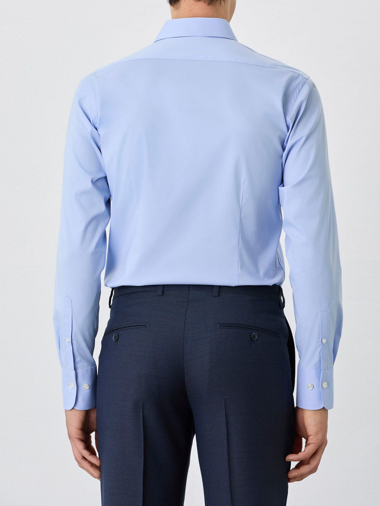 K-Easy line shirt in plain comfort cotton poplin. Fabric made of blended cotton with added polyester and spandex fibres mean every shirt can offer perfect comfort and an excellent fit, the top-performance yarns guarantee excellent elasticity, breathability, and shine. Featuring slim fit, Dublin collar and front button-up fastening. Long sleeves with single cuffs with 2 buttons. Side gussets in self fabric. All shirts have regular fitting measures from size 44. This shirt is ideal for office wear and for those situations when looking impeccable is essential. Shirts for every occasion. Once you’ve tried them, you’ll never want to take them off.