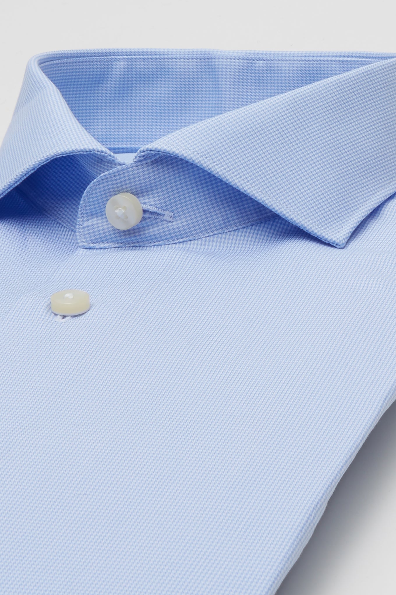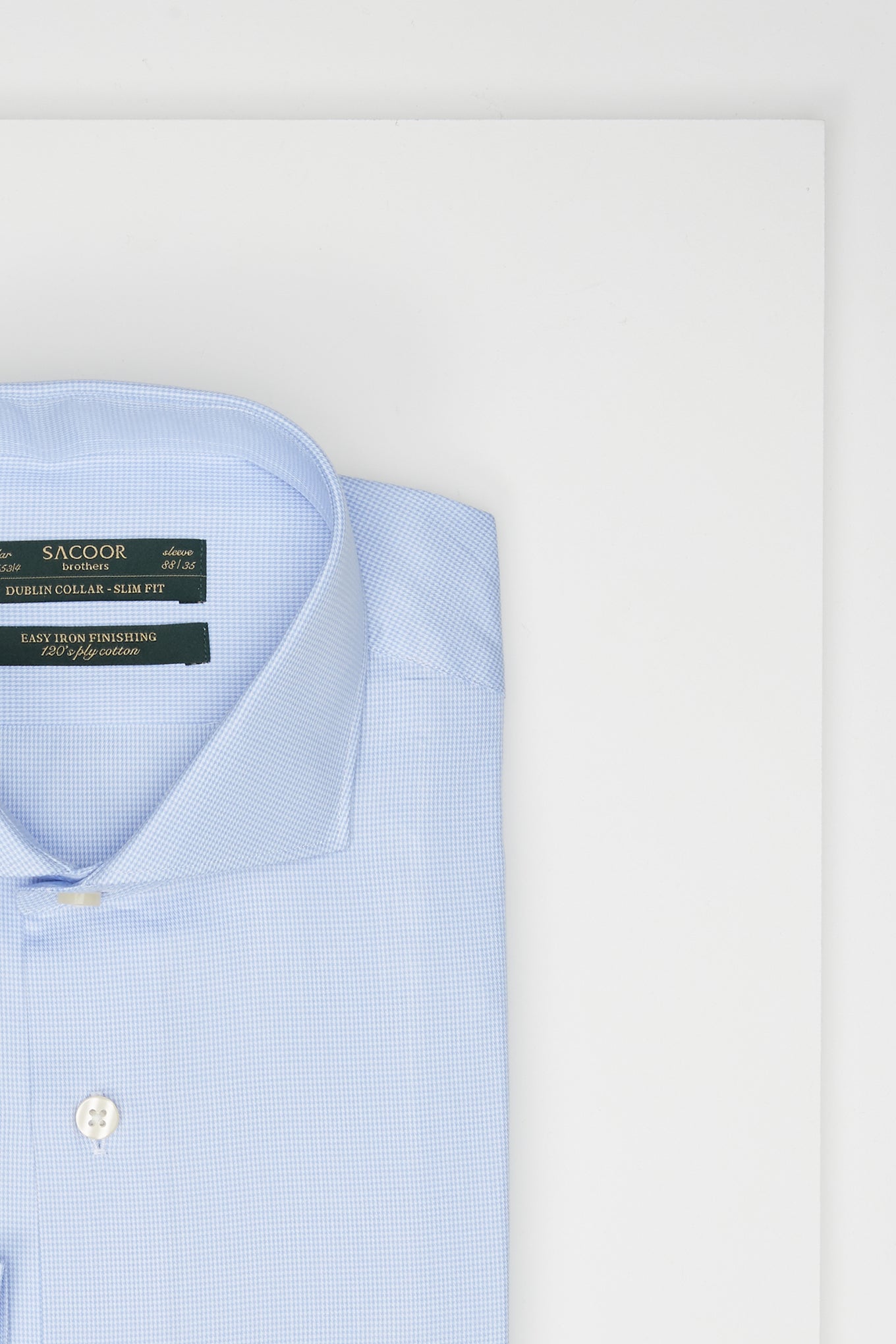 Men's false-plain slim fit classic shirt. Dublin collar with stays. Pure cotton long sleeve shirt with cuff buttons. Available at Sacoor Brothers' online store.
