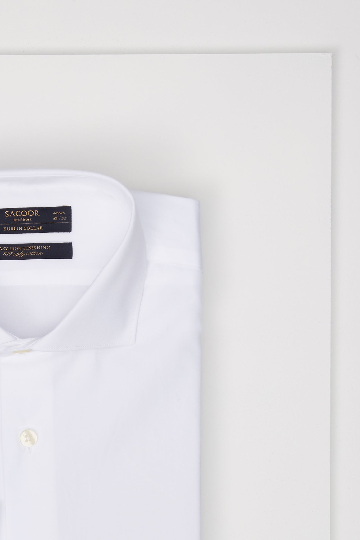Men's regular fit classic shirt. Long sleeves and buttoned cuff. Dublin collar with stays. Made of 100% cotton. Available at Sacoor Brothers' online store.