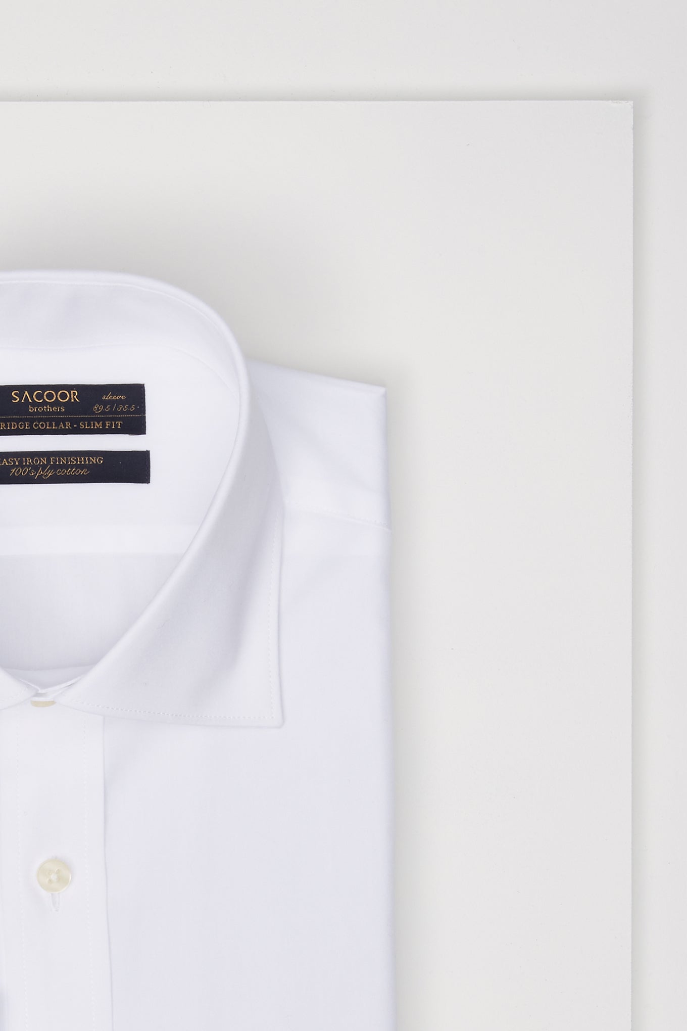 Men's plain slim fit classic shirt. Long sleeve shirt and cuff buttons. Features Cambridge collar with stays. Made of pure cotton of 100 quality. Easy to iron. Available at Sacoor Brothers' online store.
