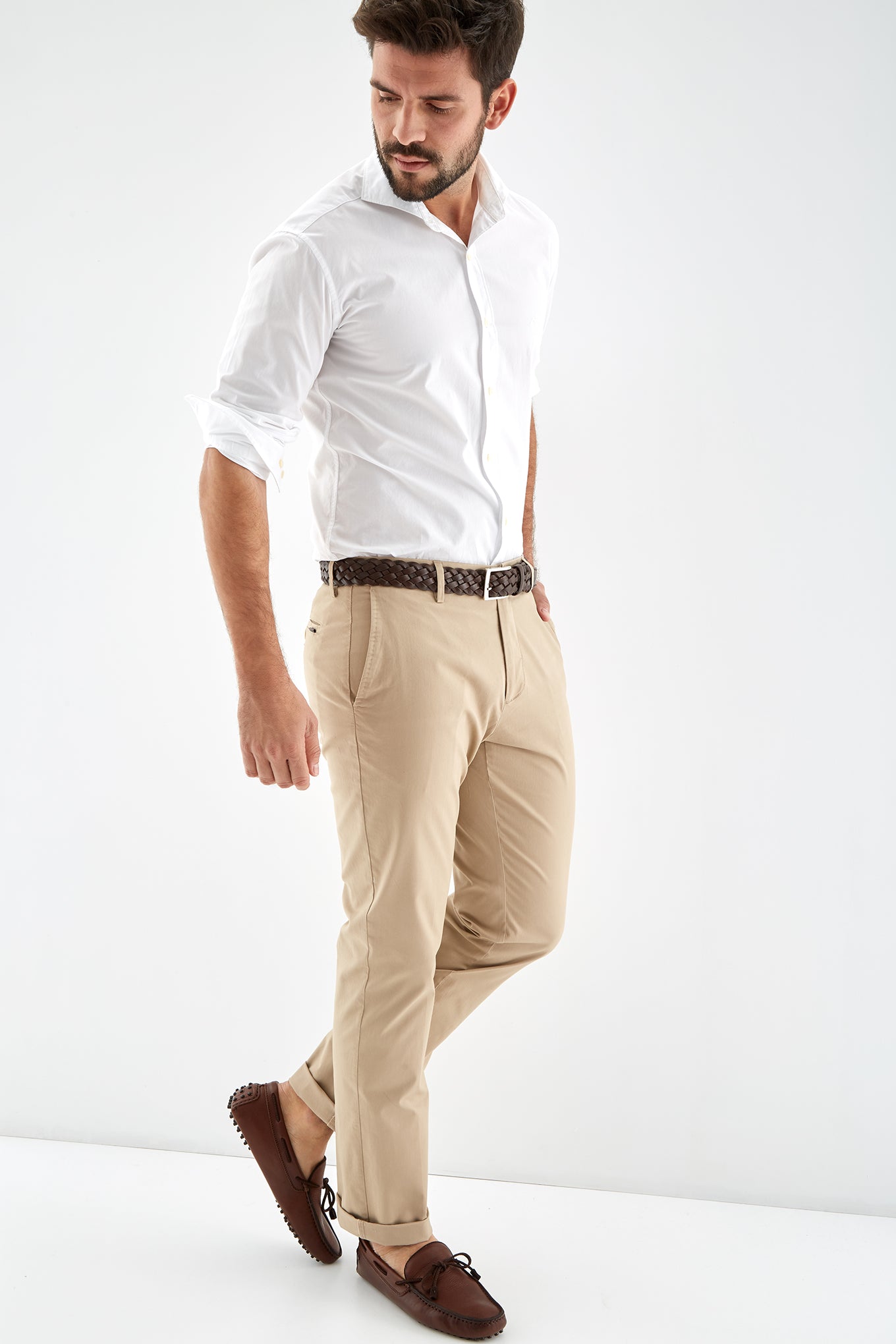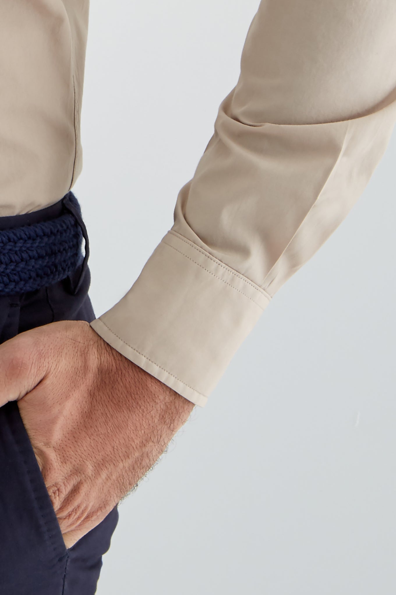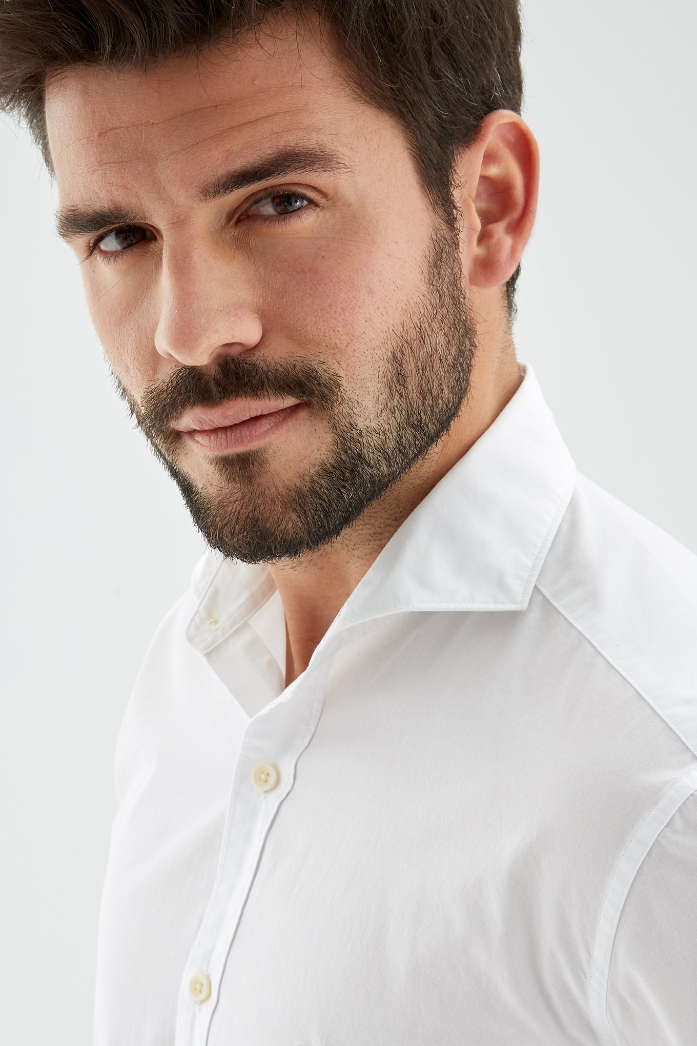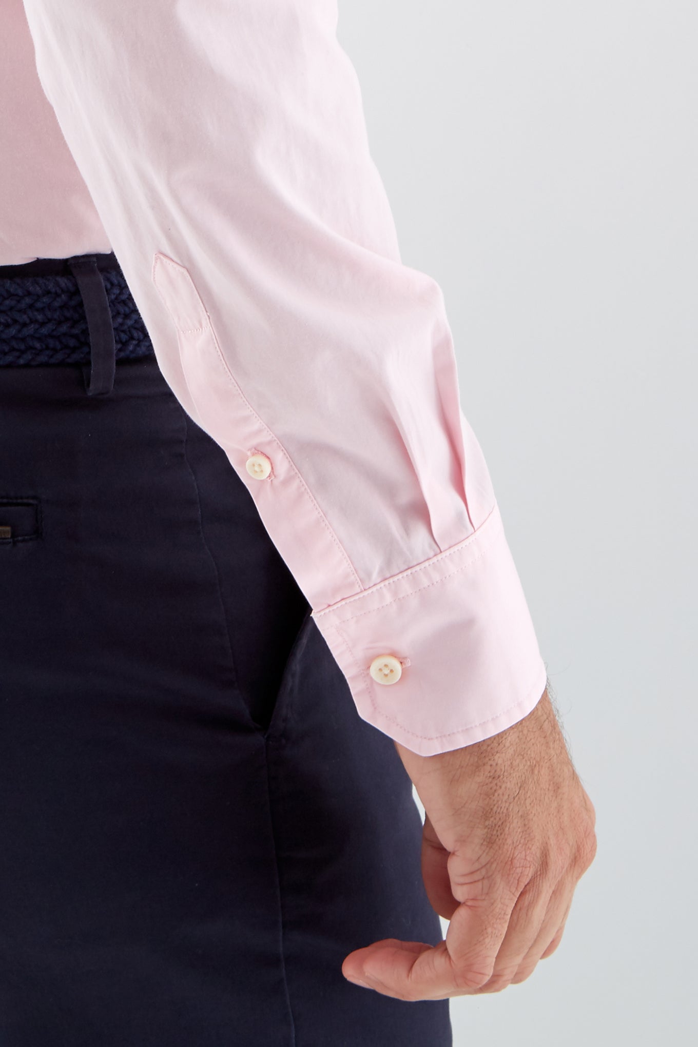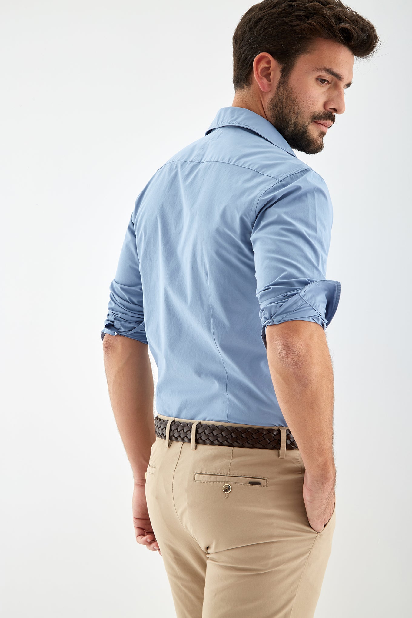 Men's plain slim fit sports shirt. Logo detail embroidered on the chest. 100% cotton long sleeve shirt, with cuff buttons and collar with stays. Available at Sacoor Brothers' online store.