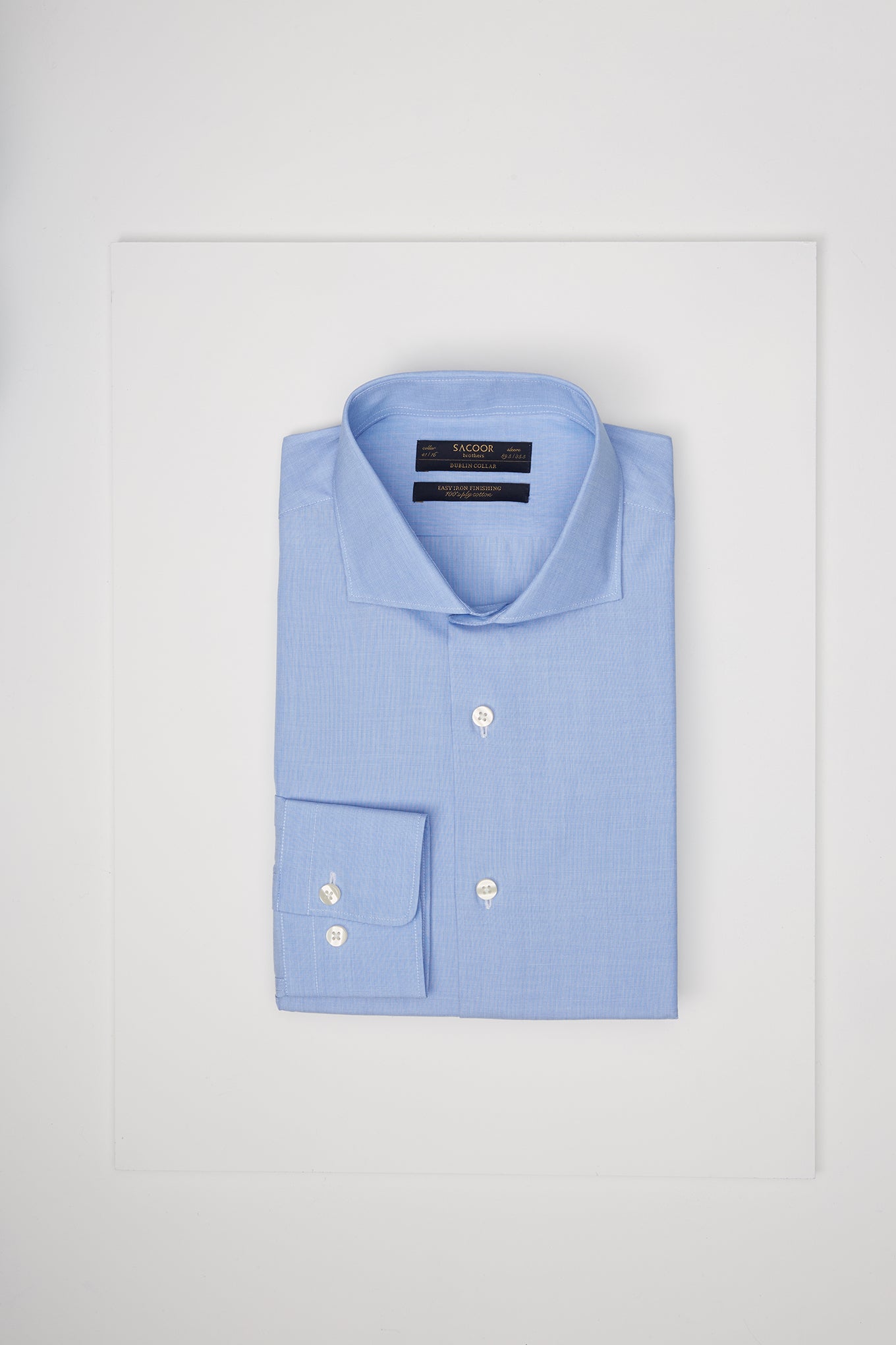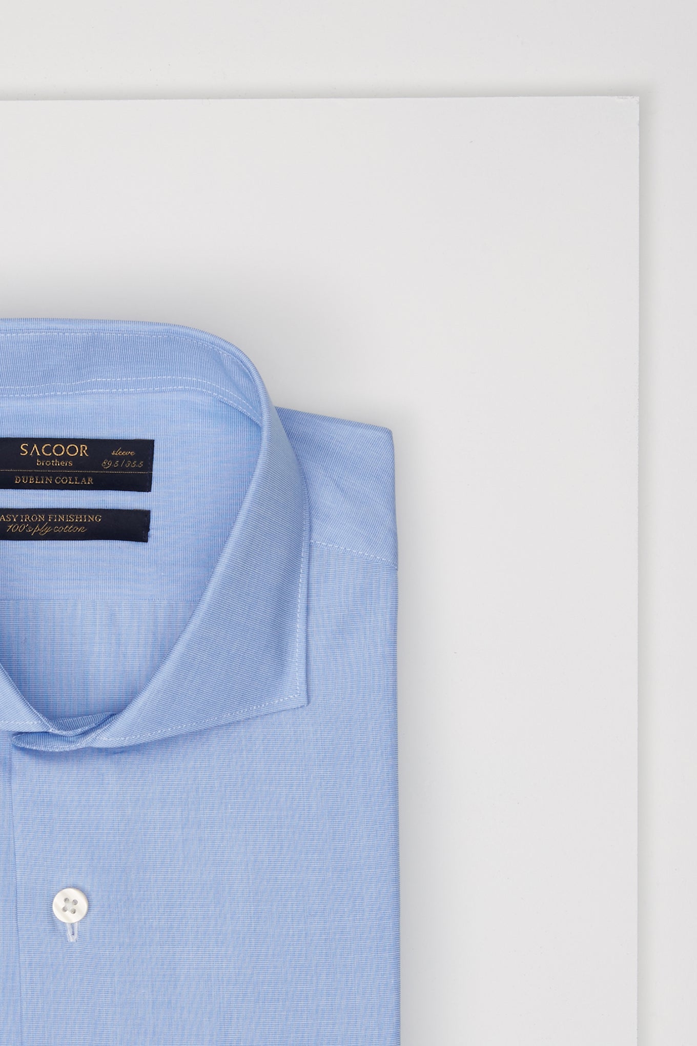 Men's regular fit classic shirt. Long sleeve shirt and cuff buttons. Dublin collar with stays. Made of pure cotton of 100 quality. Easy to iron. Available at Sacoor Brothers' online store.