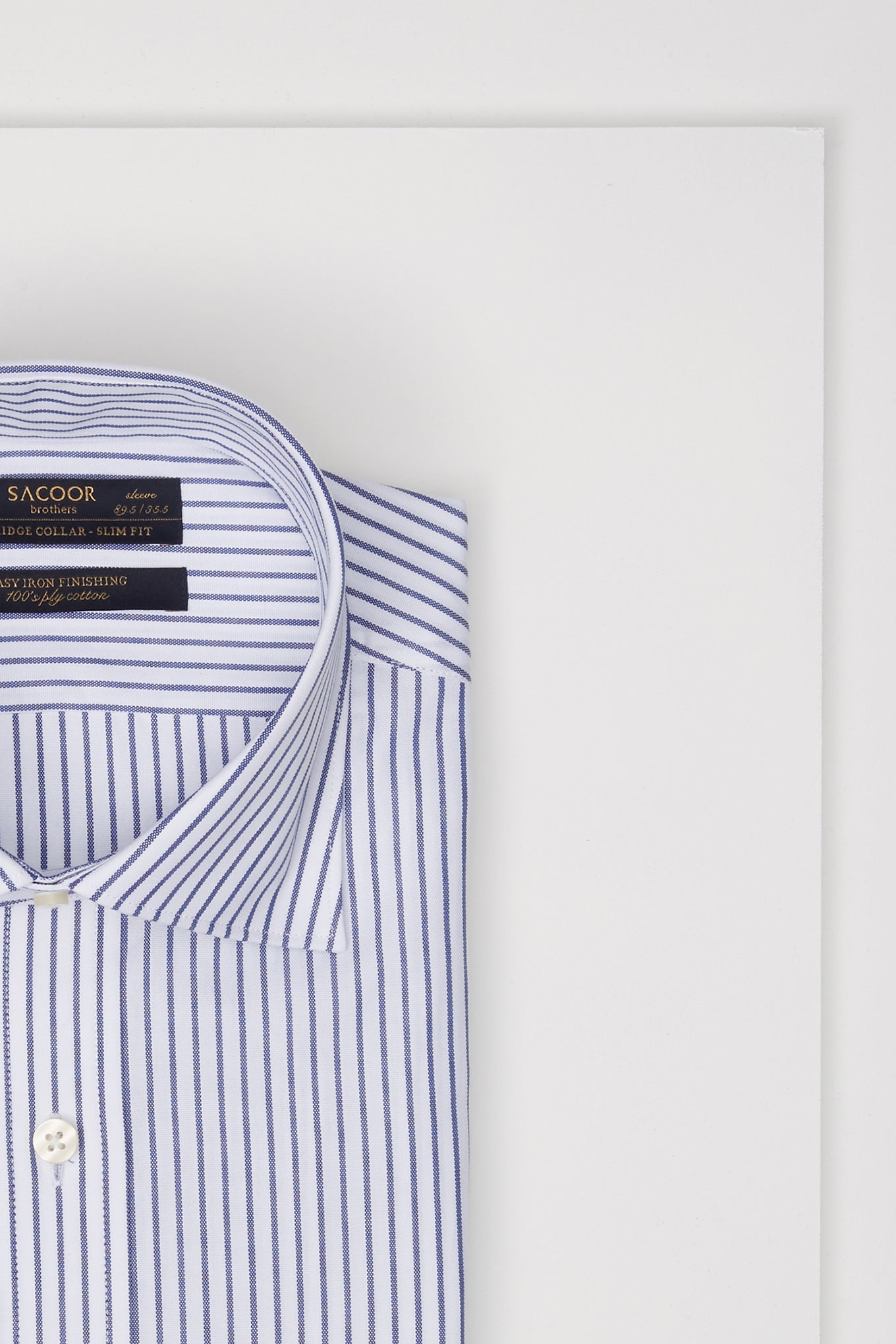 Men's striped slim fit classic shirt. Long sleeve shirt and cuff buttons. Features Cambridge collar with stays. Made of pure cotton of 100 quality. Easy to iron. Available at Sacoor Brothers' online store.