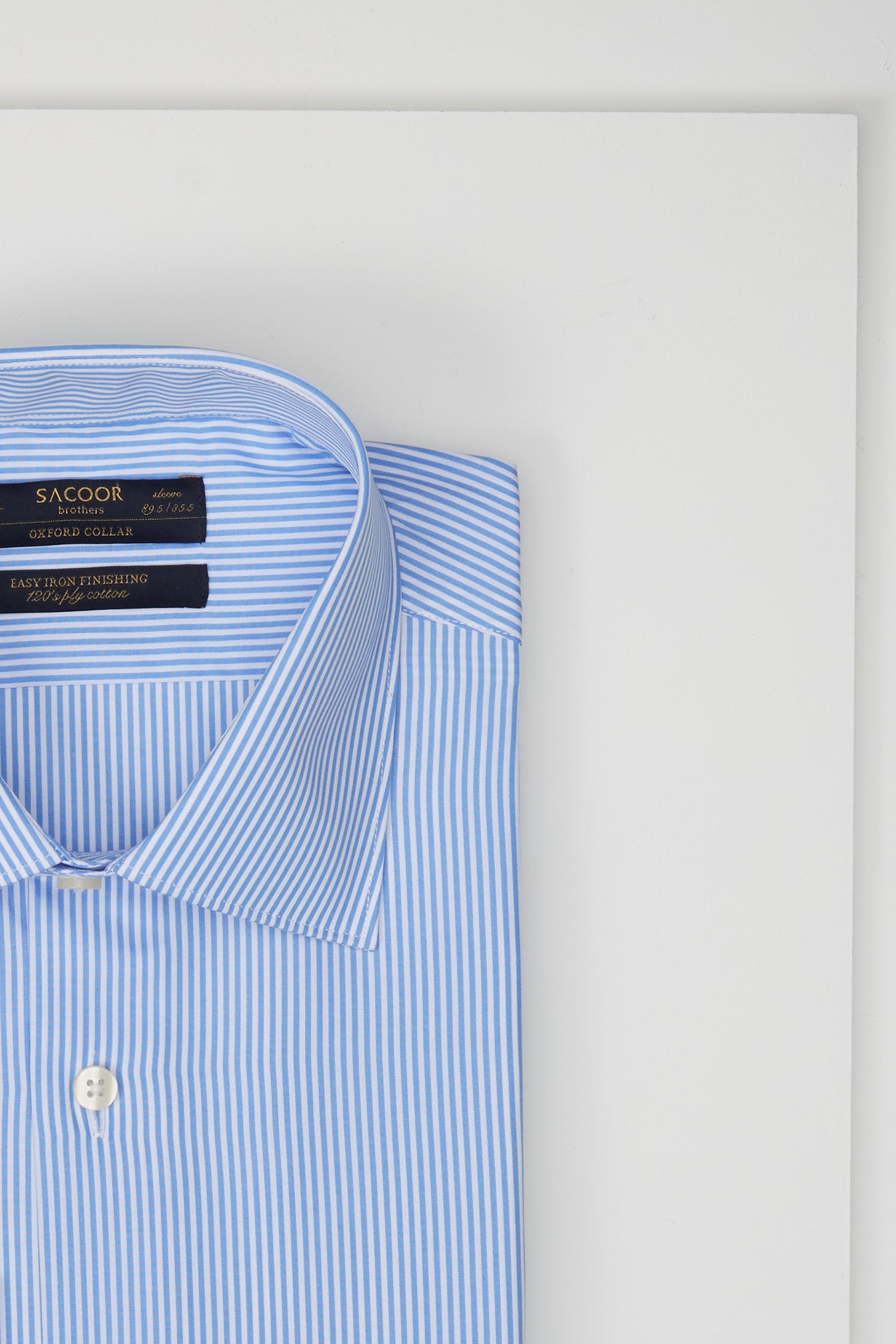 Men's striped regular fit classic shirt. Features long sleeves, cuff buttons and a chest pocket. Oxford collar with stays. Made of 100% 120 quality cotton. Available at Sacoor Brothers' online store.