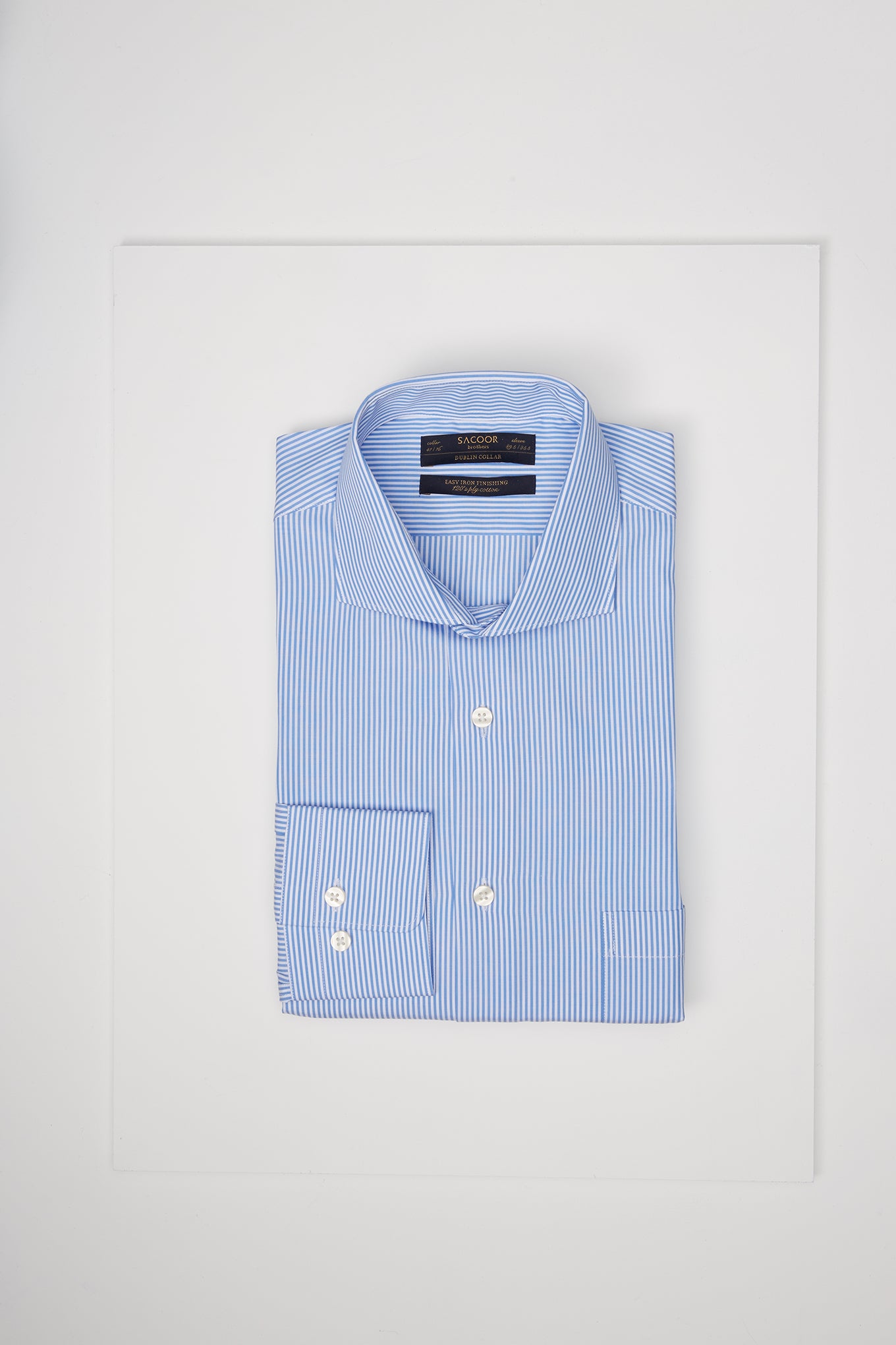 Men's striped regular fit classic shirt. Long sleeve shirt and cuff buttons. Dublin collar with stays. Made of 100% cotton. Easy to iron. Available at Sacoor Brothers' online store.