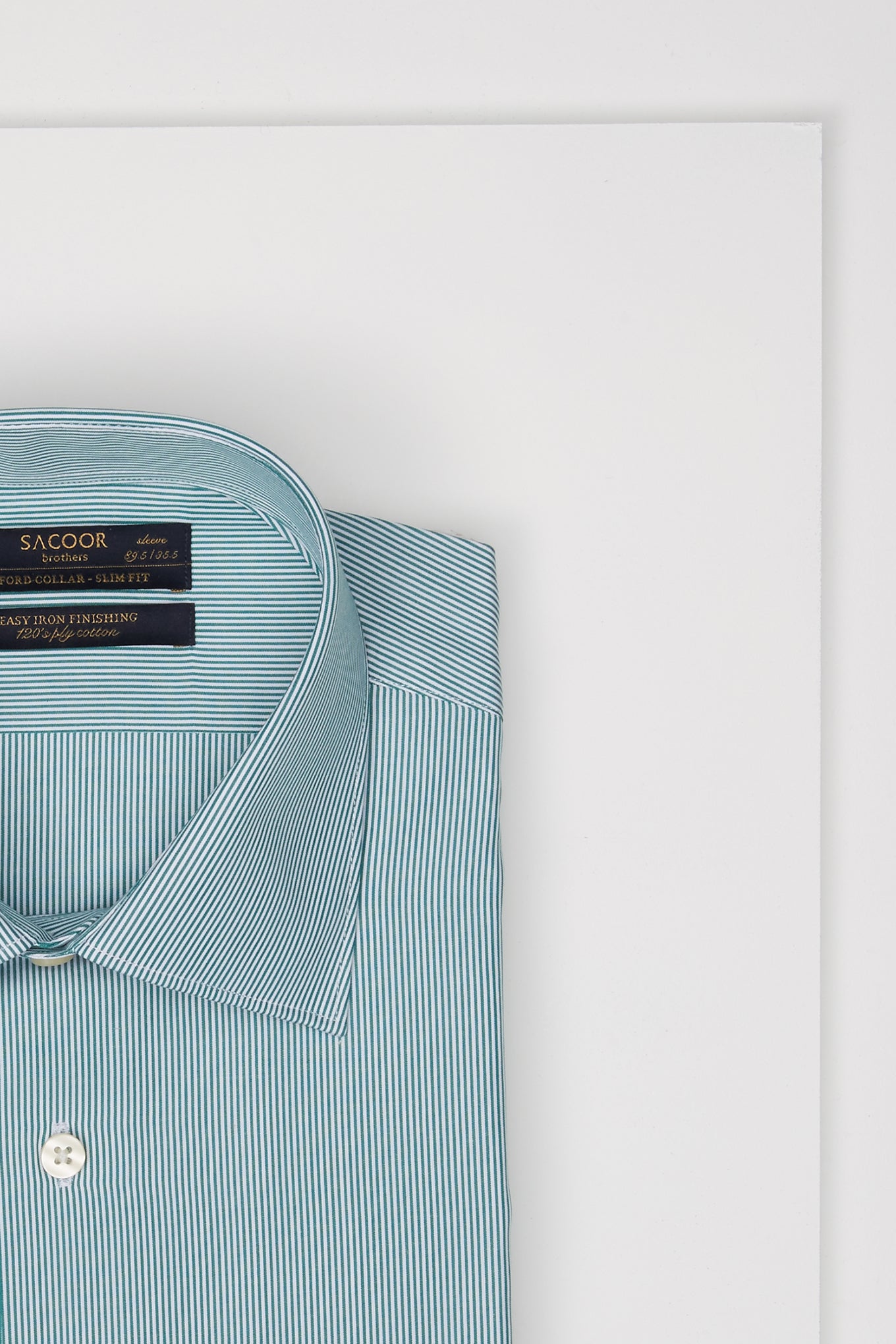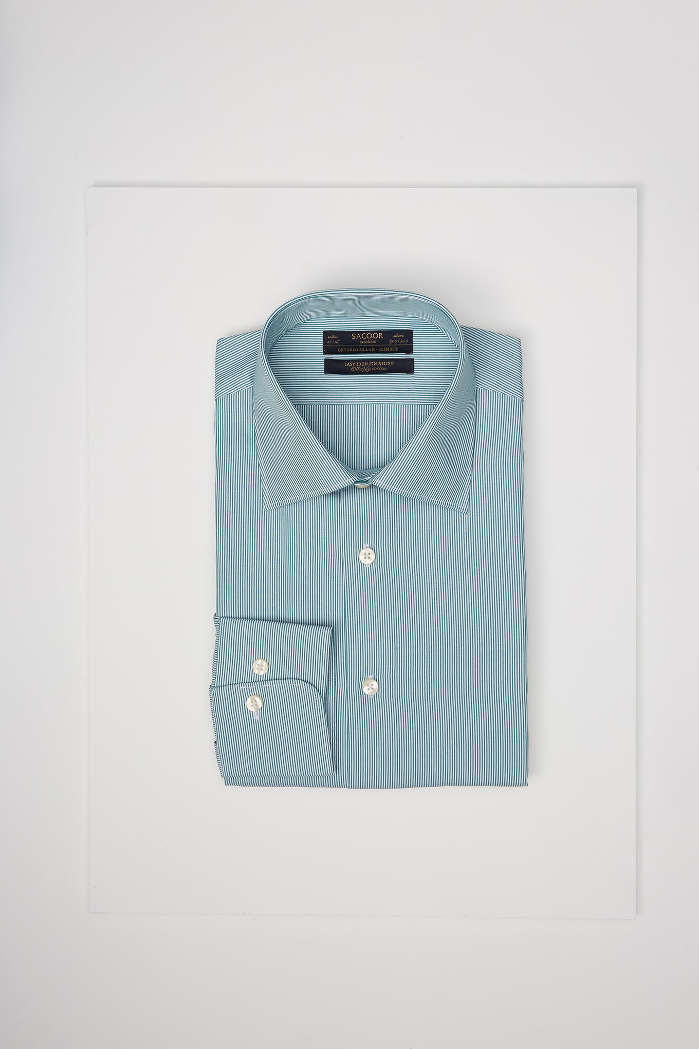 Men's striped slim fit classic shirt. Long sleeve shirt and cuff buttons. Oxford collar with stays. Made of 100% cotton of 120 quality. Easy to iron. Available at Sacoor Brothers' online store.