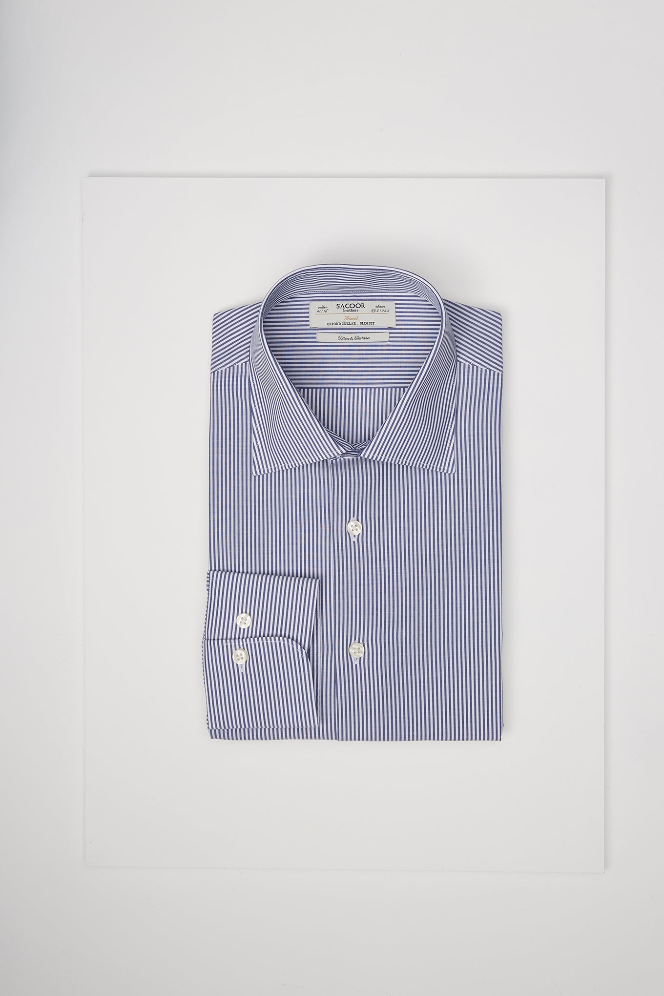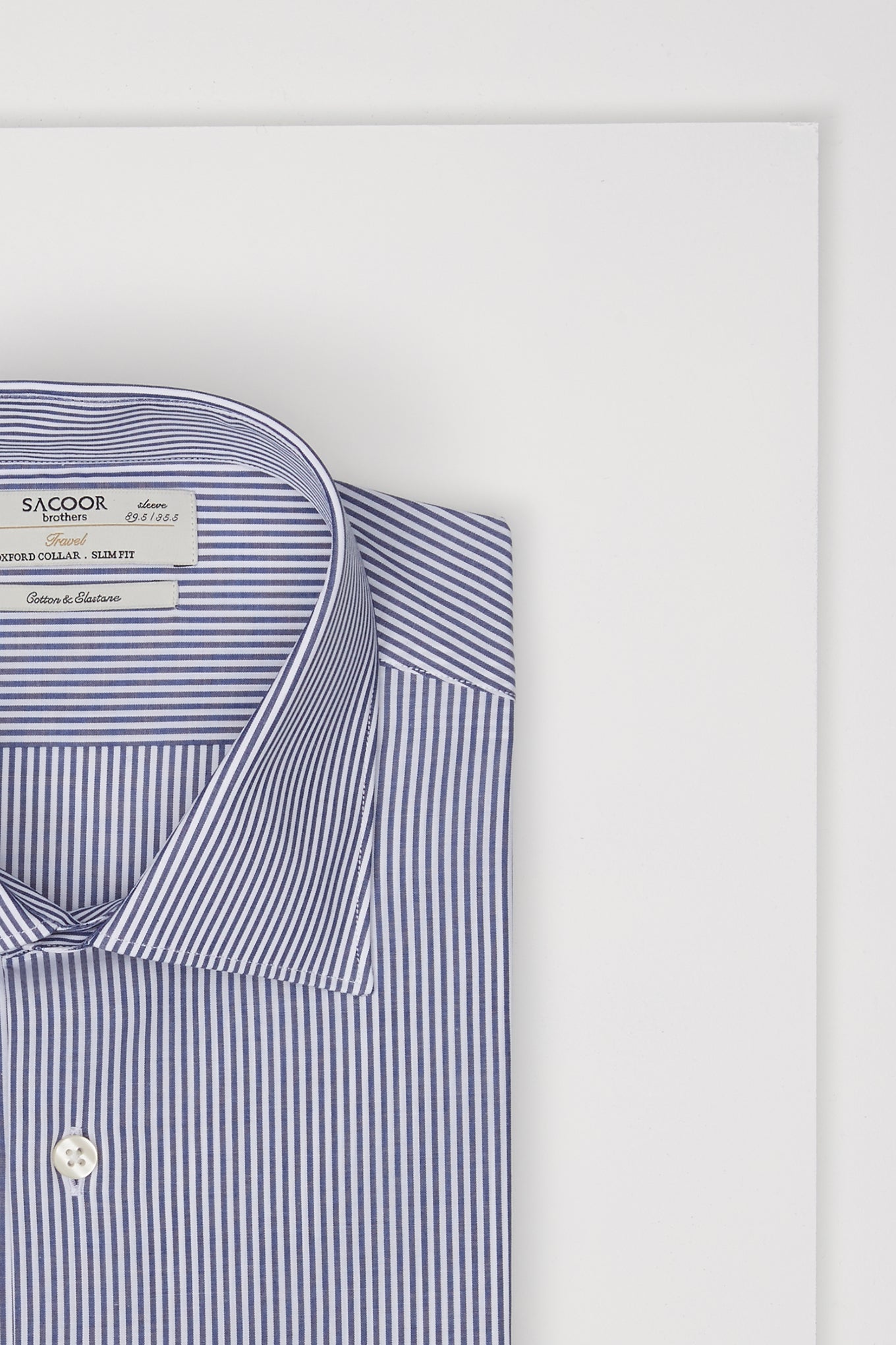 Men's striped slim fit classic shirt. Long sleeve shirt and cuff buttons. Oxford collar with stays. Made of 97% cotton and 3% Elastane. Easy to iron. Available at Sacoor Brothers' online store.