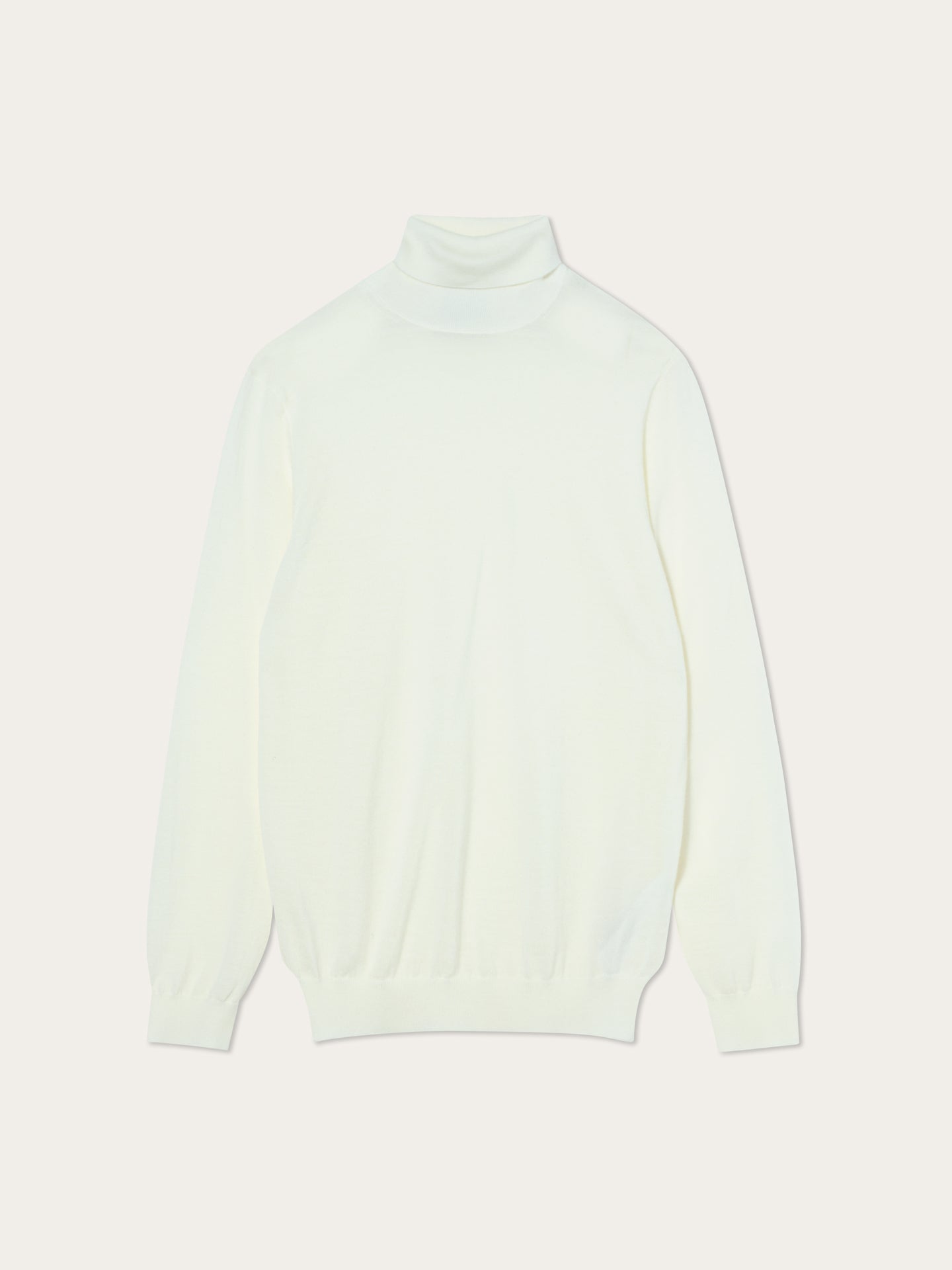 Long-sleeve turtleneck sweater knitted from extra fine Merino Wool. Designed with ribbed finishes at the collar, cuffs, and hem. Fully fashioned at the shoulder seams and armholes for a clean, structured fit.