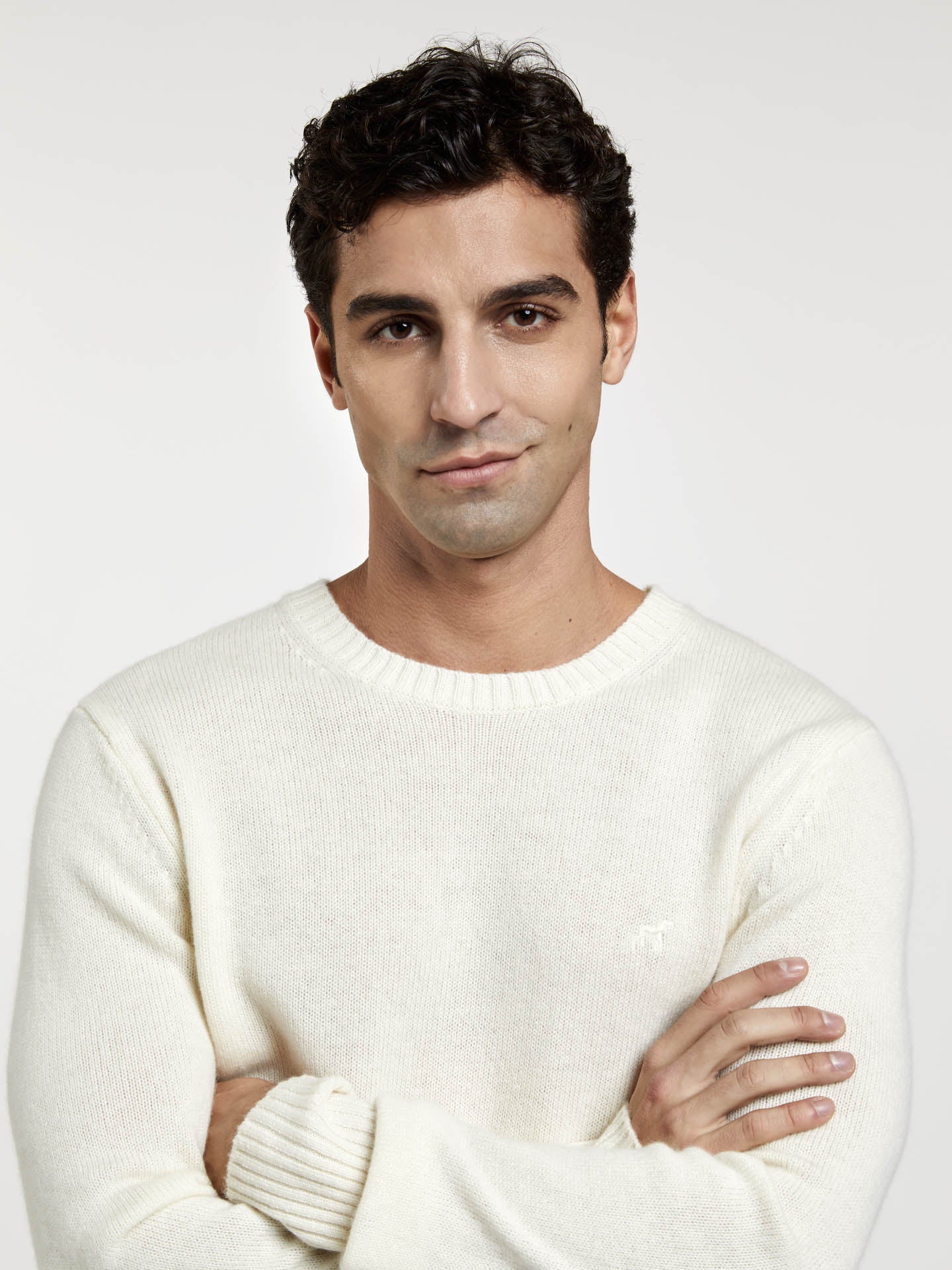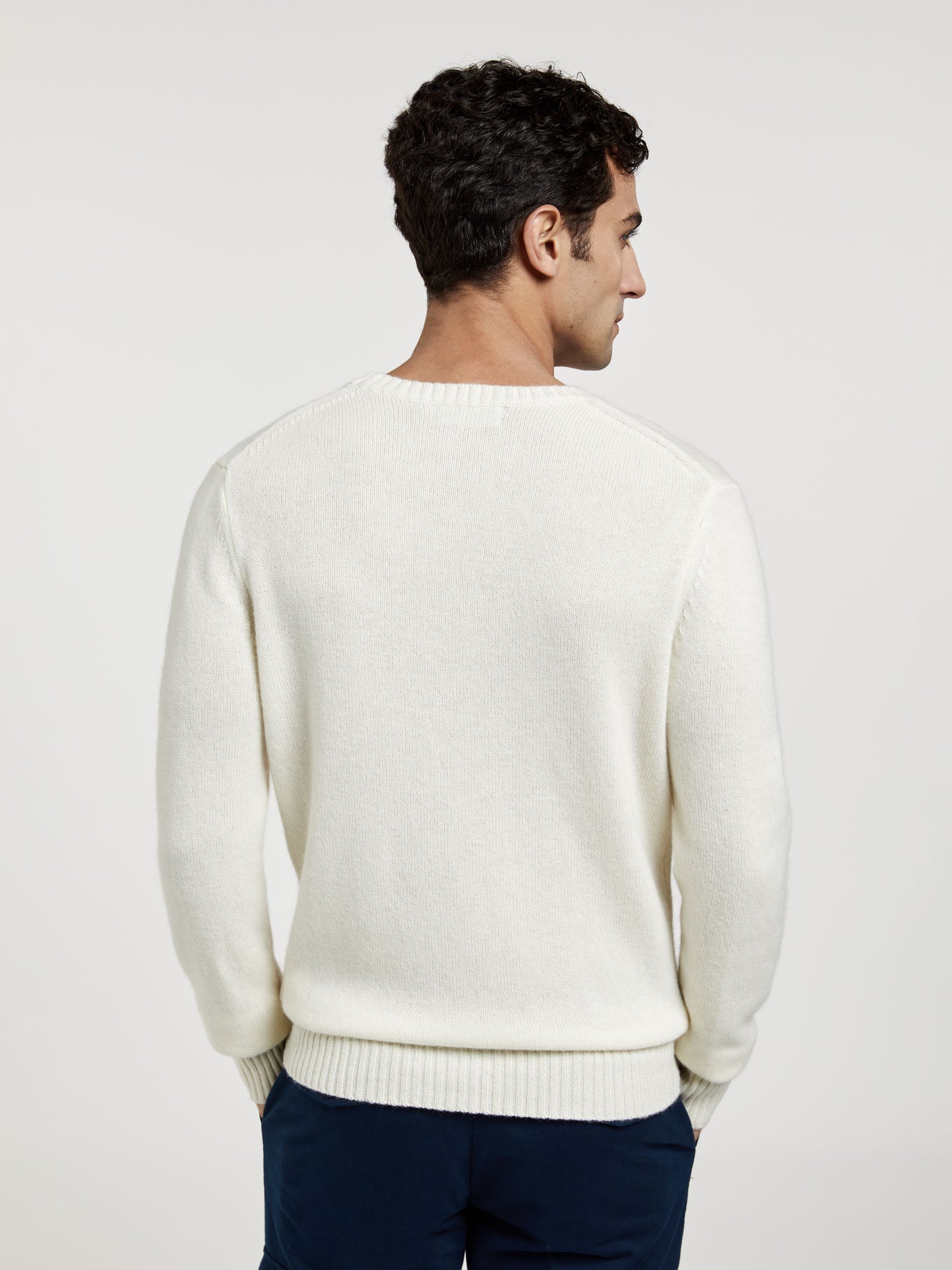Long sleeves crew neck sweater made of Wool and Cashmere blend. This garment is part of our Luxeleisure edition. Featuring tone on tone chest logo embroidery and flag label at side. Cuffs and bottom with rib, fully fashion at shoulders seams and armholes to offer comfort and elegance. Luxeleisure line explores the space between refinement and relaxation, comfort and effortless style, functionality and elegance.