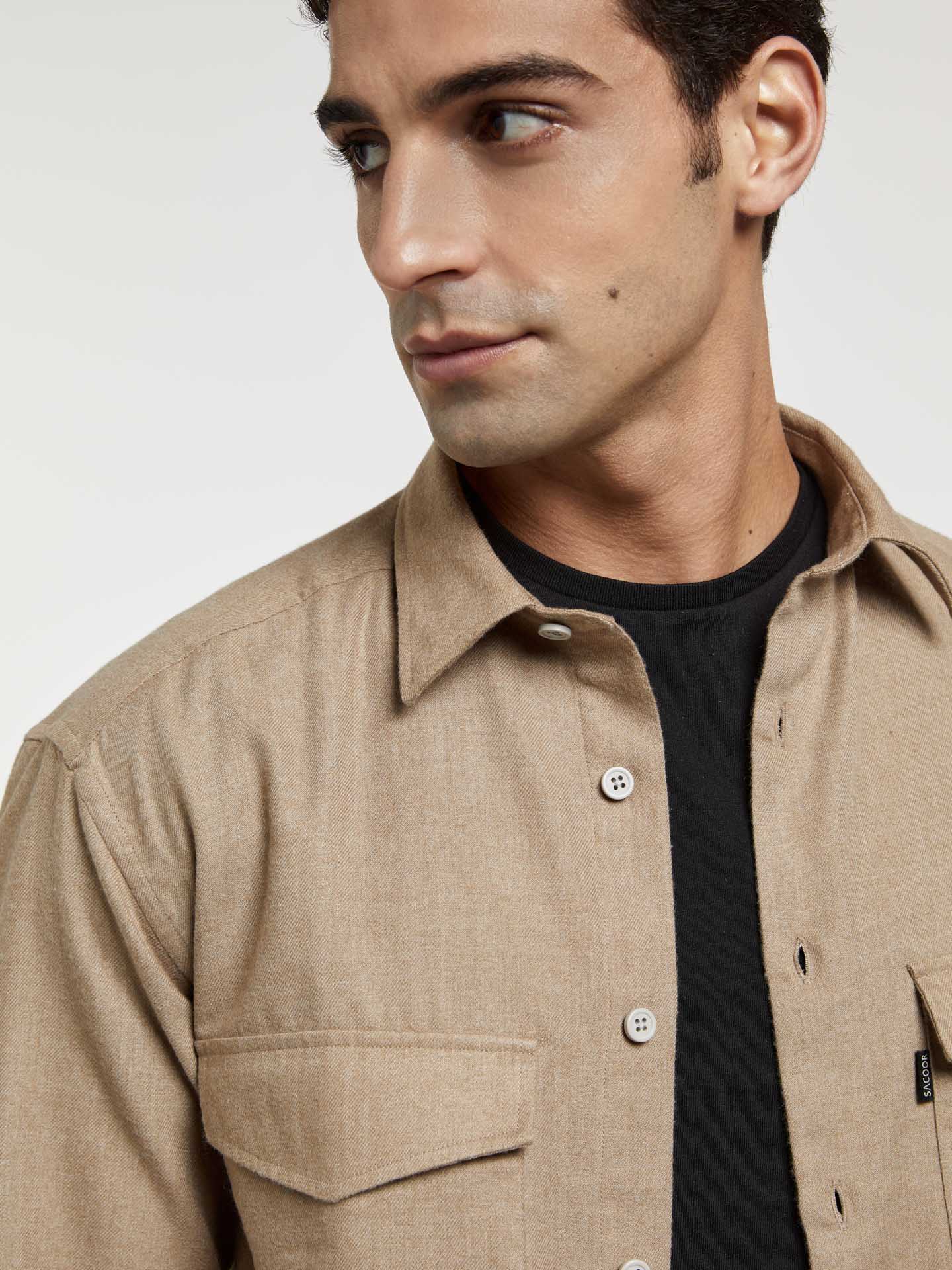 Overshirt in light flannel from our Luxeleisure edition. Fabric made of blended cotton. Featuring a relaxed fit, open spread collar and front button-up fastening. Long sleeves with single cuffs with 2 buttons and two chest pockets with flag label on pocket. Luxeleisure line explores the space between refinement and relaxation, comfort and effortless style, functionality and elegance.