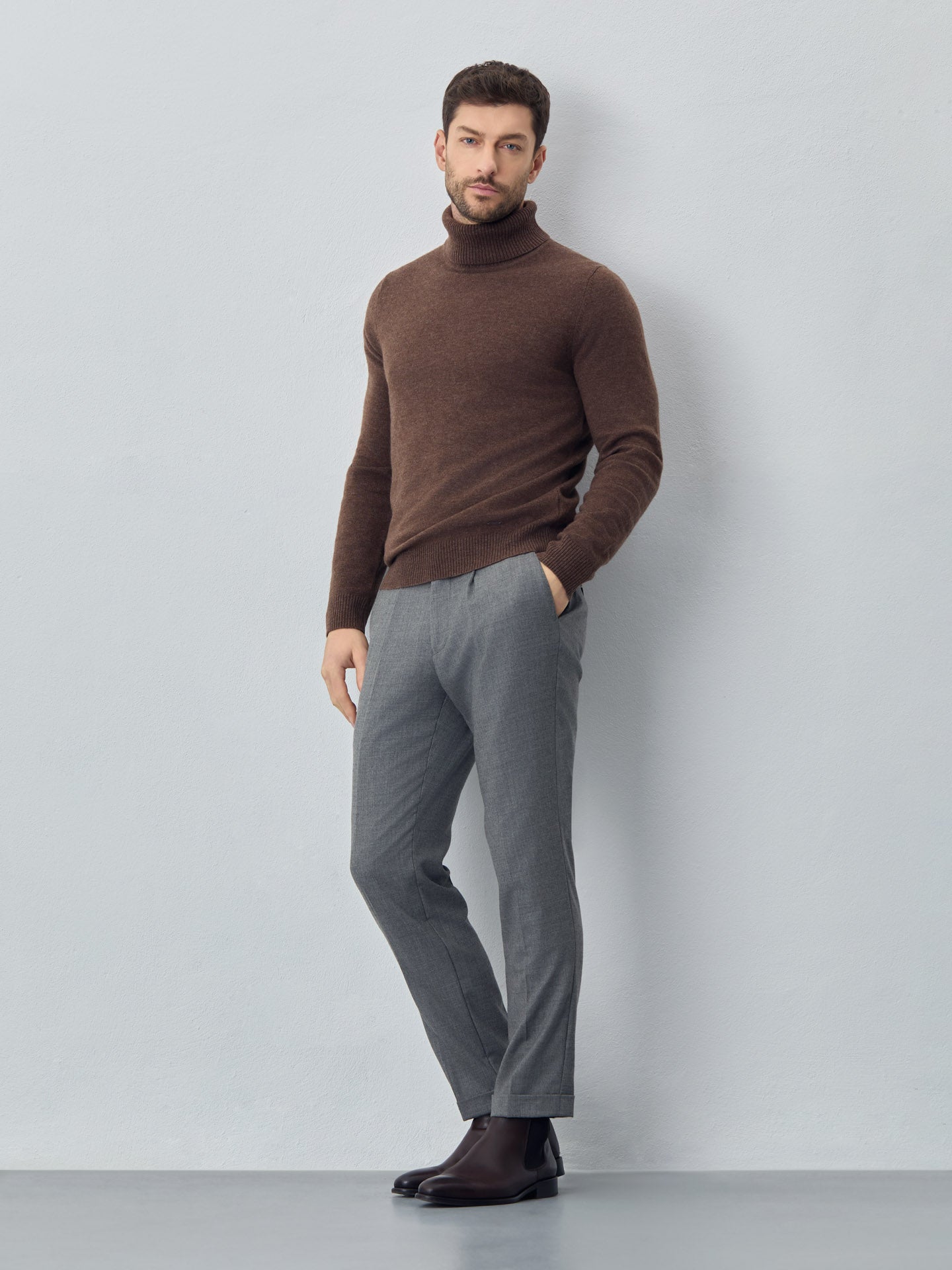 Machine Washable Turtleneck Sweater With Long Sleeves In Lambswool Blend