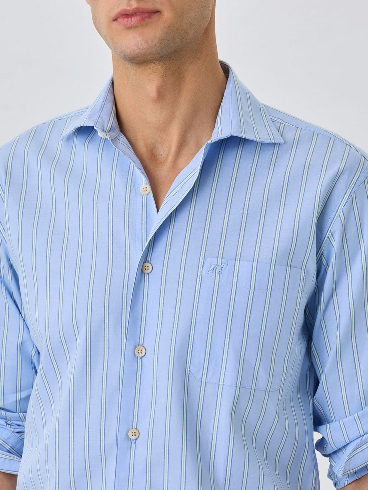 Slim Fit Shirt With Chest Pocket In BCI Cotton With Stripes