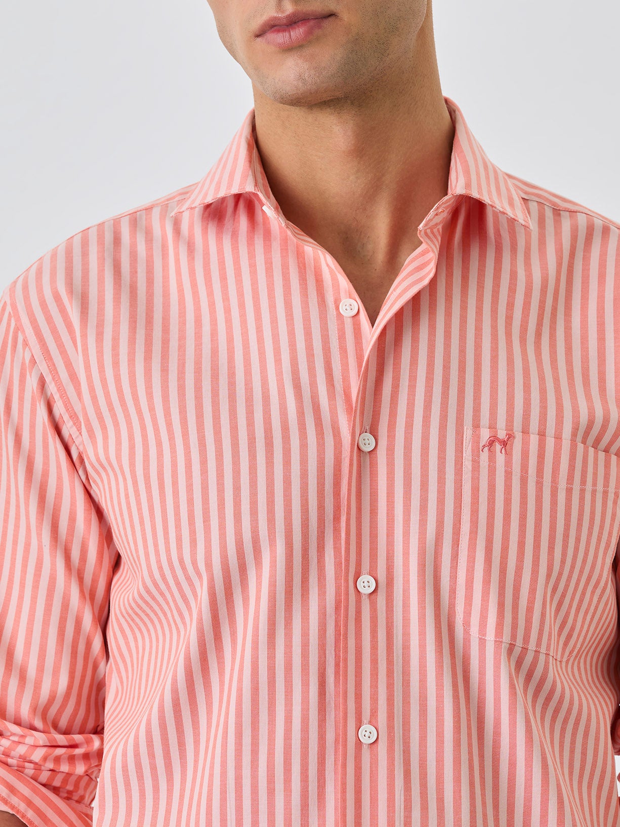 Slim Fit Shirt With Chest Pocket in BCI Cotton With Stripes
