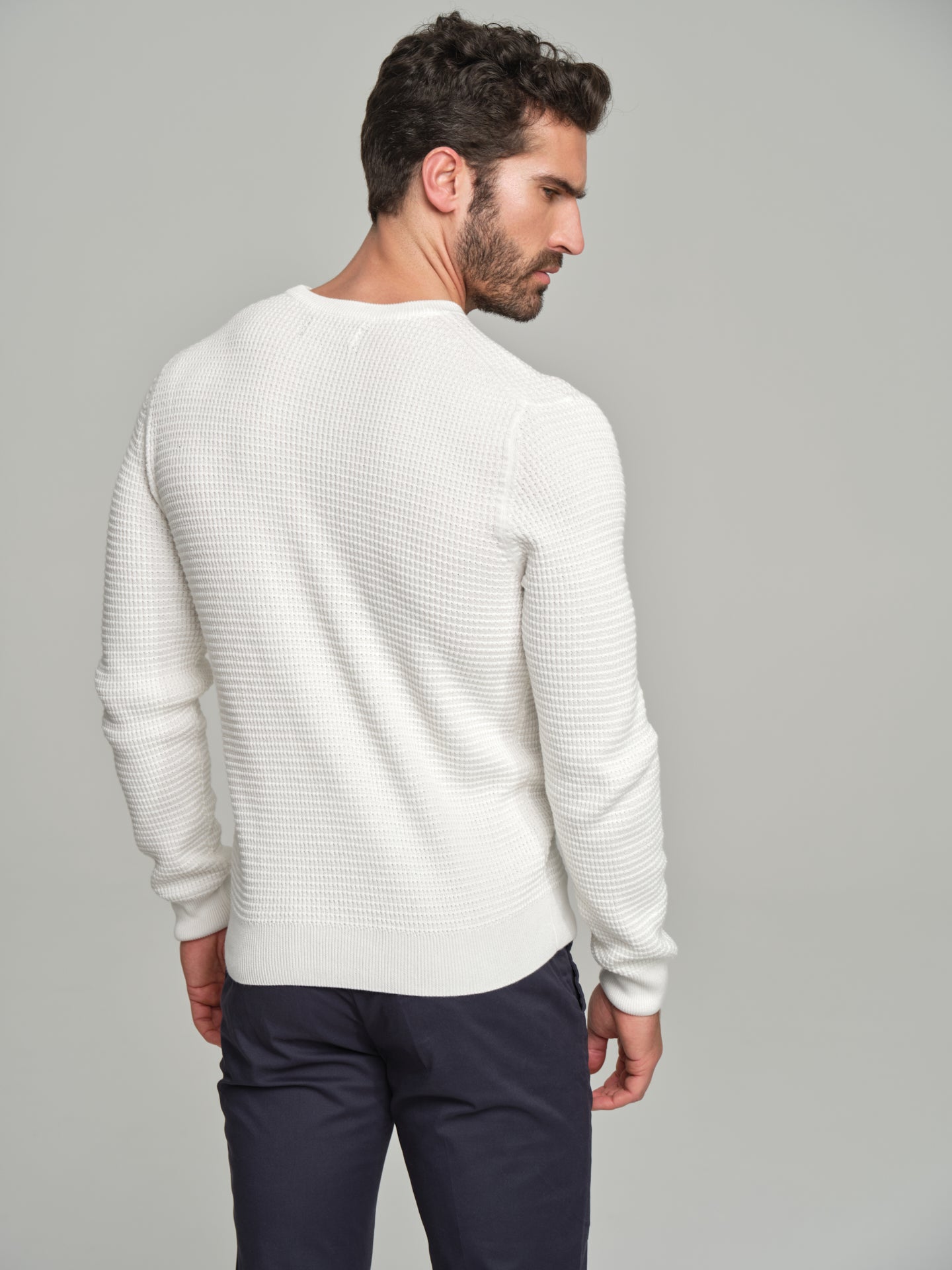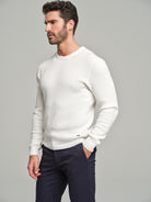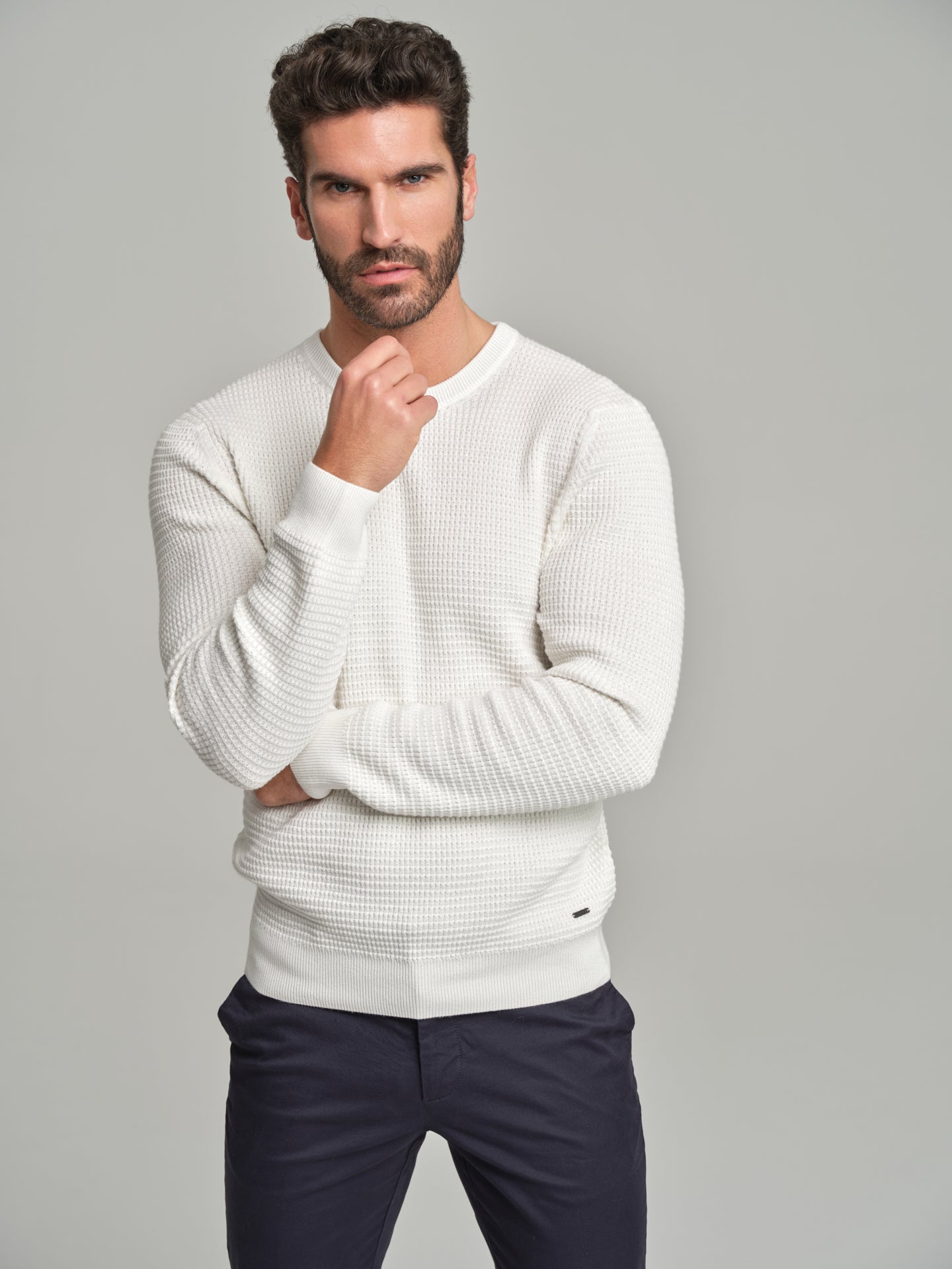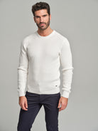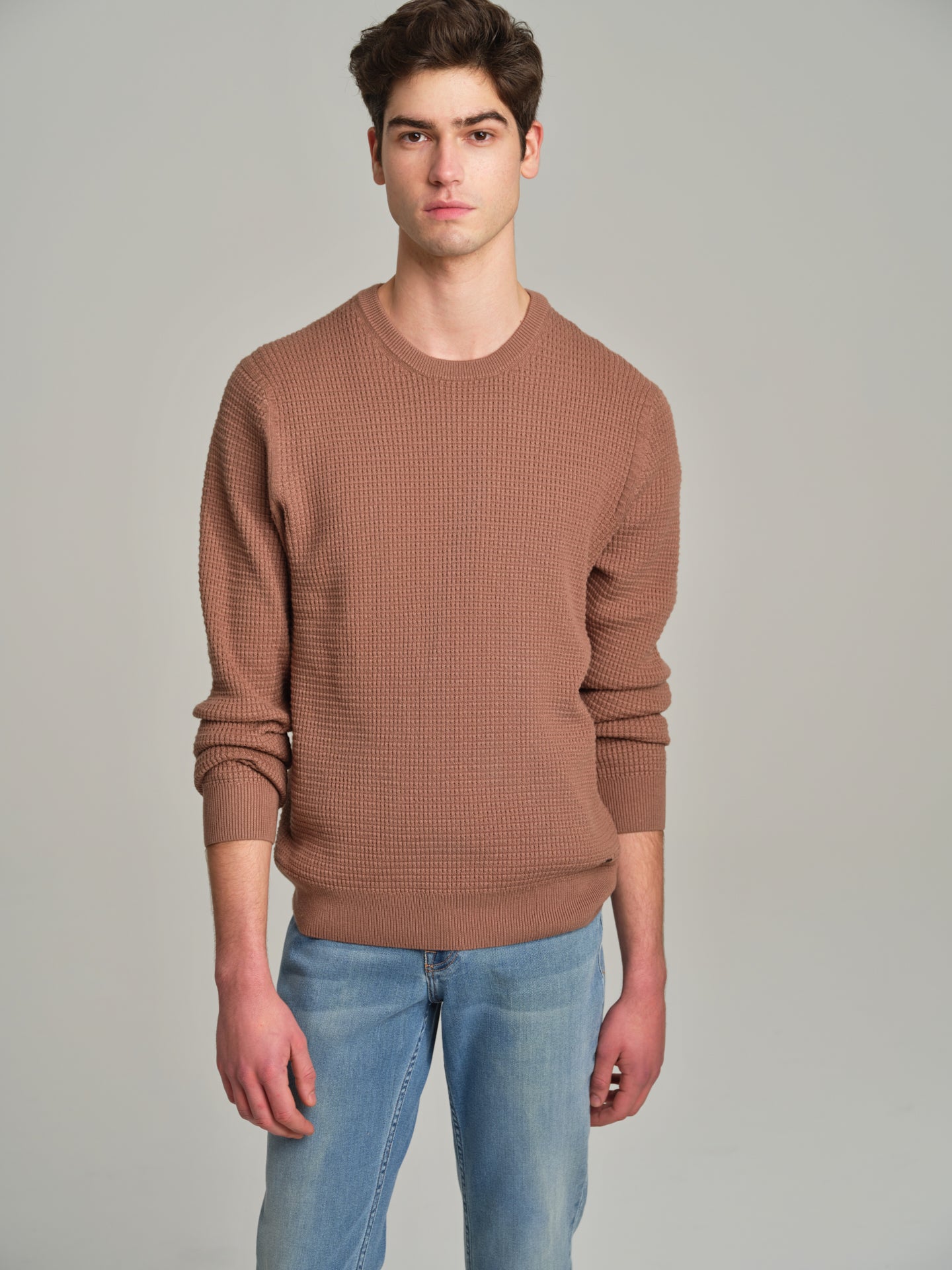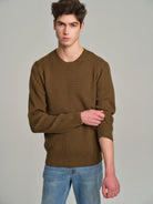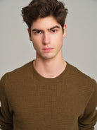 Long sleeve crew neck sweater with waffle knitting