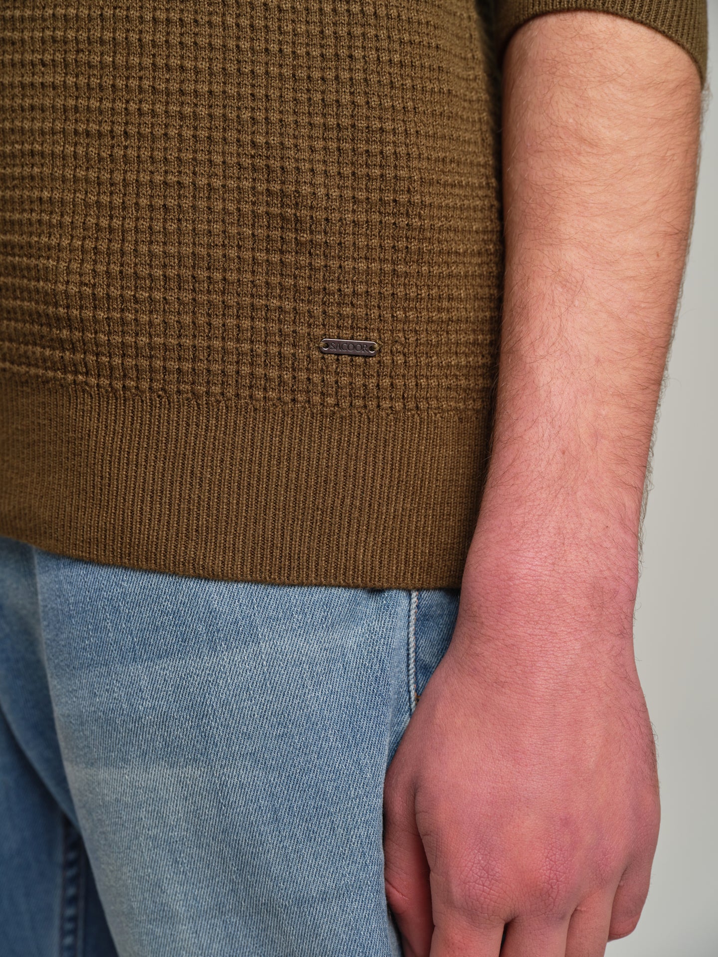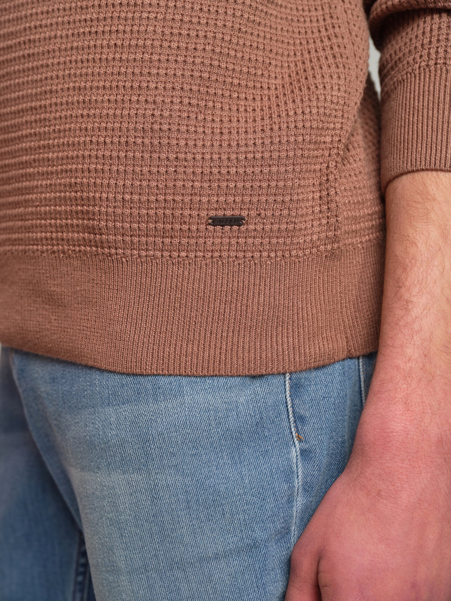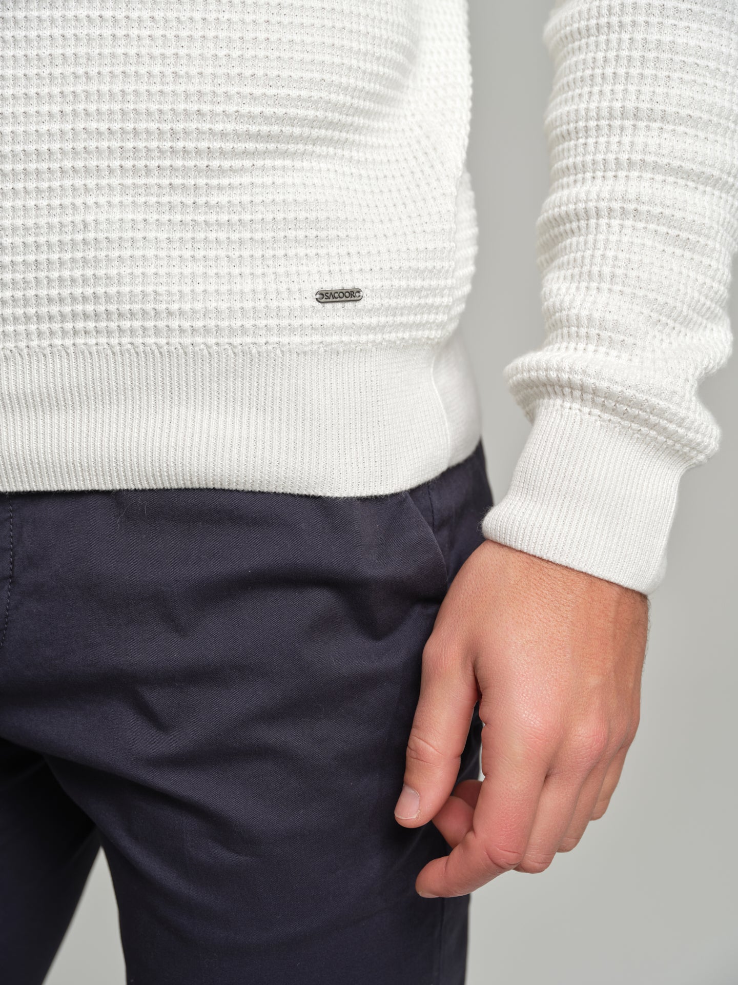 Long sleeve crew neck sweater with waffle knitting