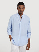 Regular fit special edition cotton-linen blend striped shirt