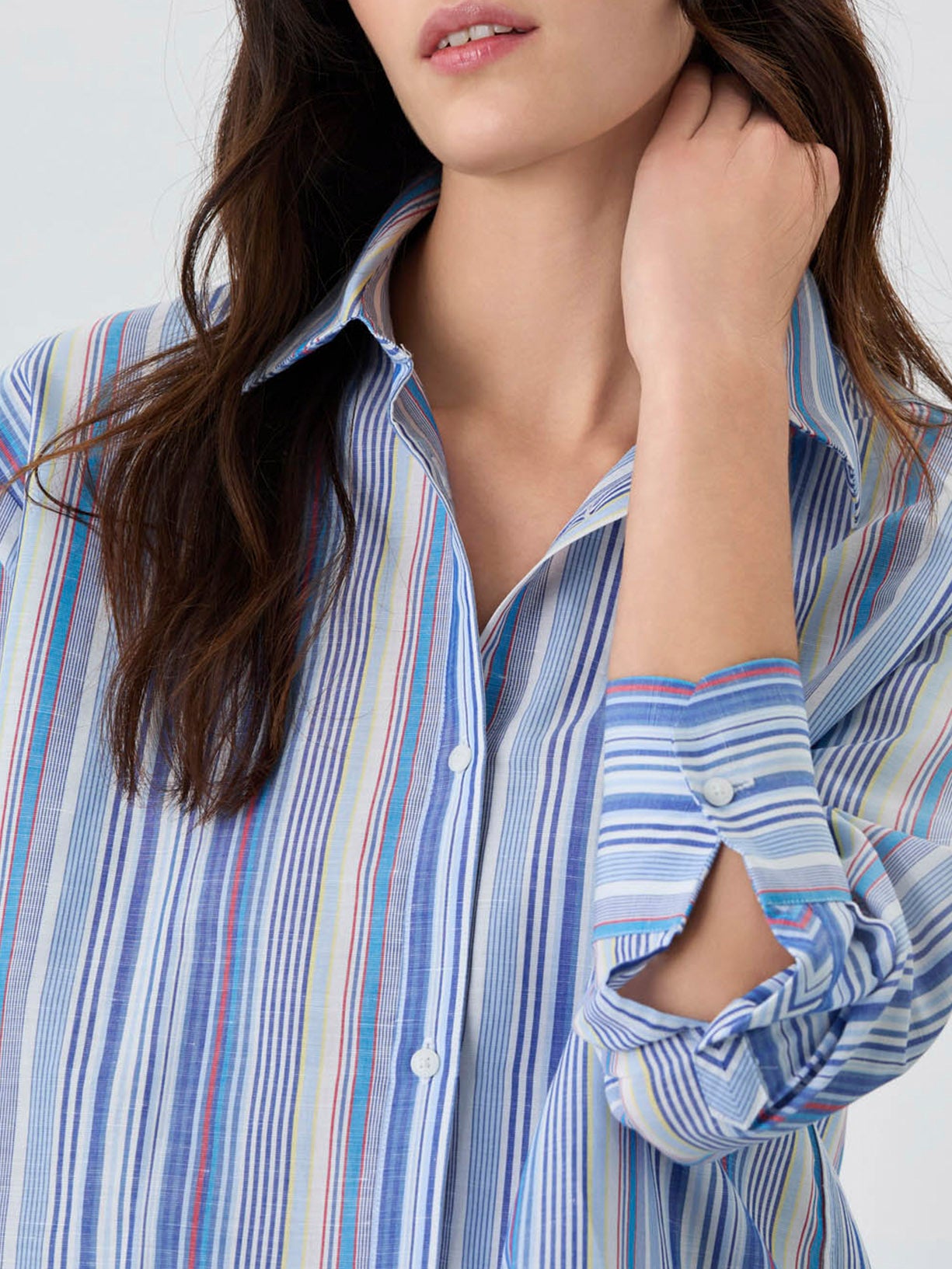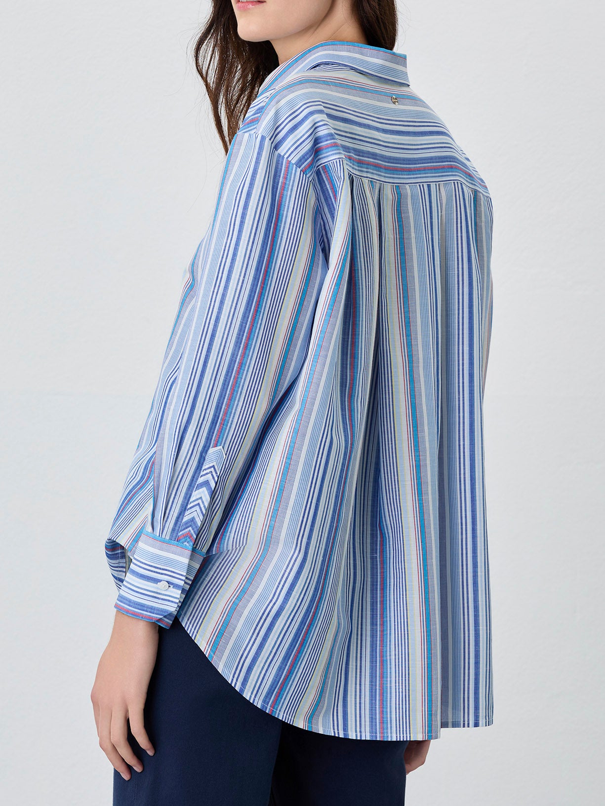 Casual striped shirt made of high-quality Cotton Linen Blend fabric. This Loose Fit shirt features an open collar, plates at the back, personalized buttons and long sleeves with rectangular armholes.
