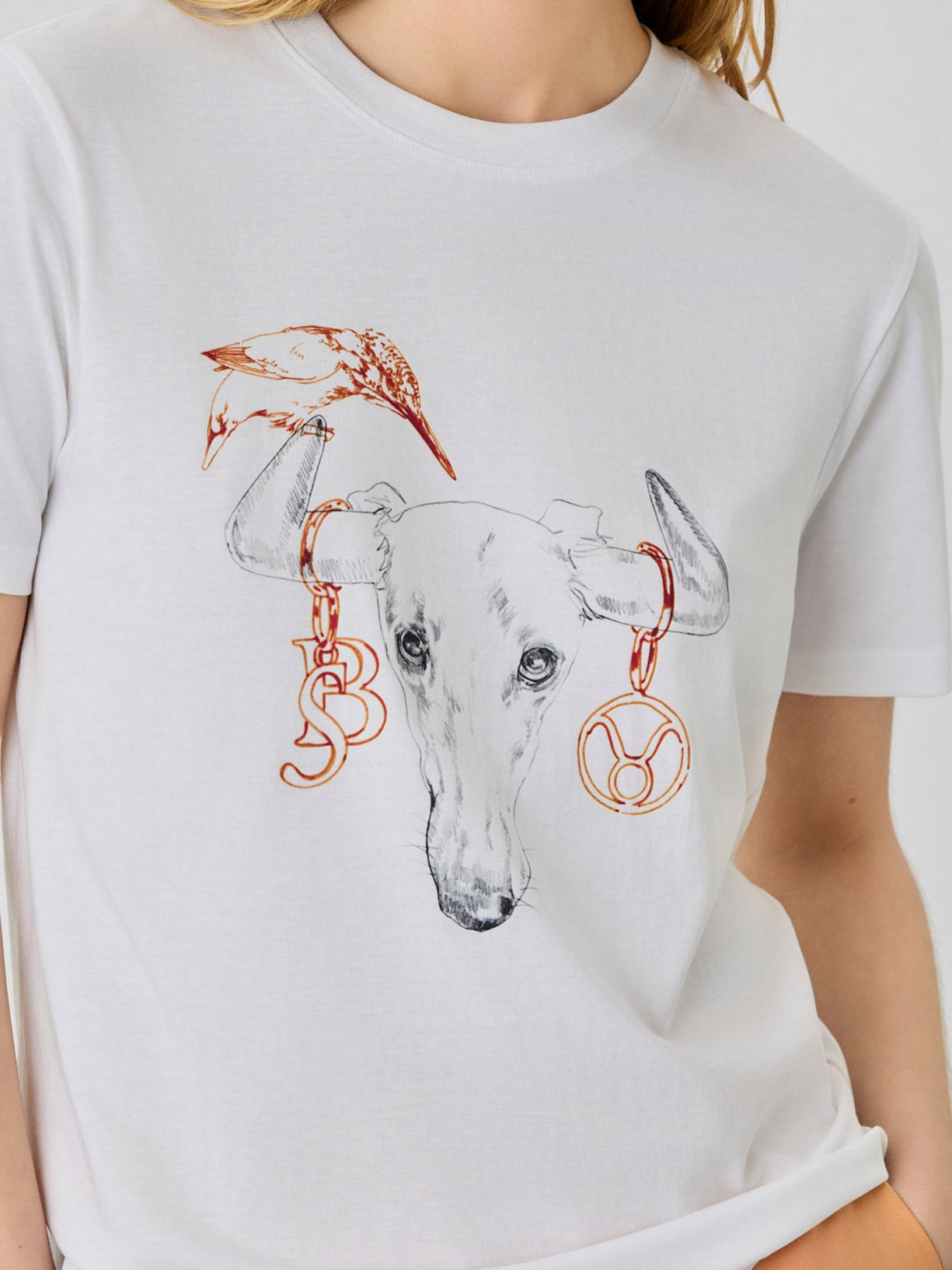 Regular fit Taurus t-shirt from our Special Edition Zodiac Capsule collection. Made in organic cotton with a Taurus Sign illustration by the renowned Portuguese Fashion Illustrator Antonio Soares. This special collaboration with Antonio Soares, brought to life a fresh representation of the zodiac signs trough our greyhound logo, mixing the classic image with fun and colorful details for a more contemporary look. Features a round neckline and short sleeves.