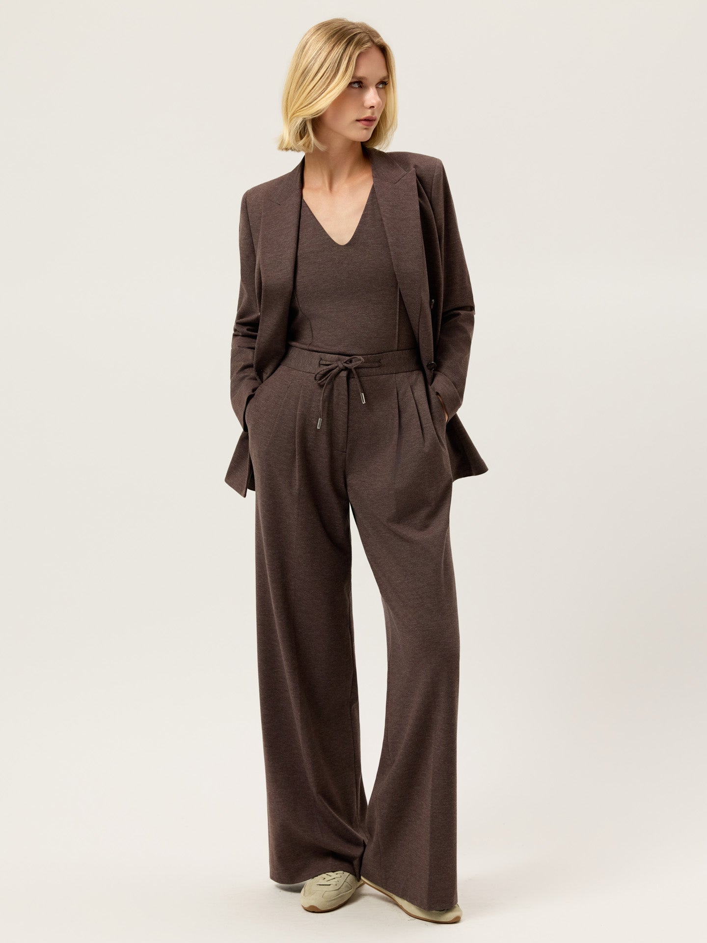 Luxe Leisure V-Neck top made from premium rayon blend. Designed with a slim fitting and two delicate creases at front and back. Special details such as Sacoor Metal plate in Light Gold. This capsule collection explores the space between refinement and relaxation, comfort and effortless style, functionality and elegance.