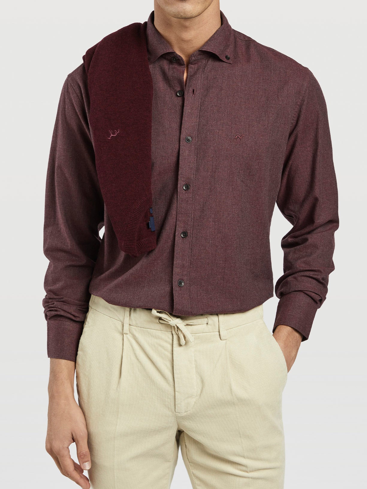 Sport shirt made of 100% cotton herringbone. Featuring slim fit, button-down collar and front button-up fastening. Long sleeves with single cuffs with 2 buttons. Chest logo embroidery.