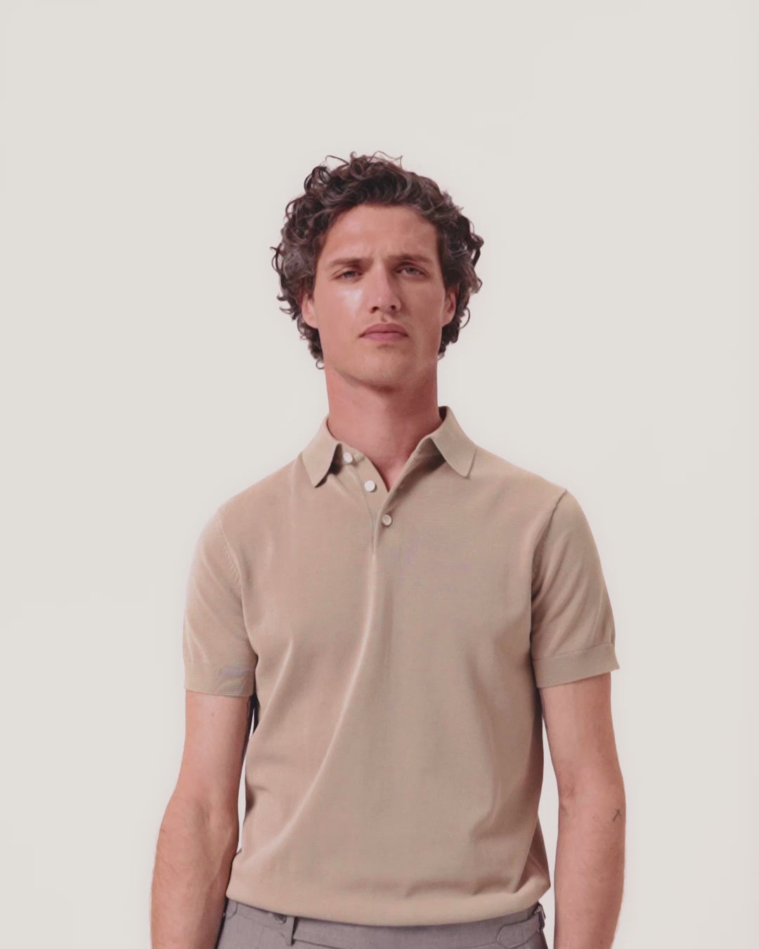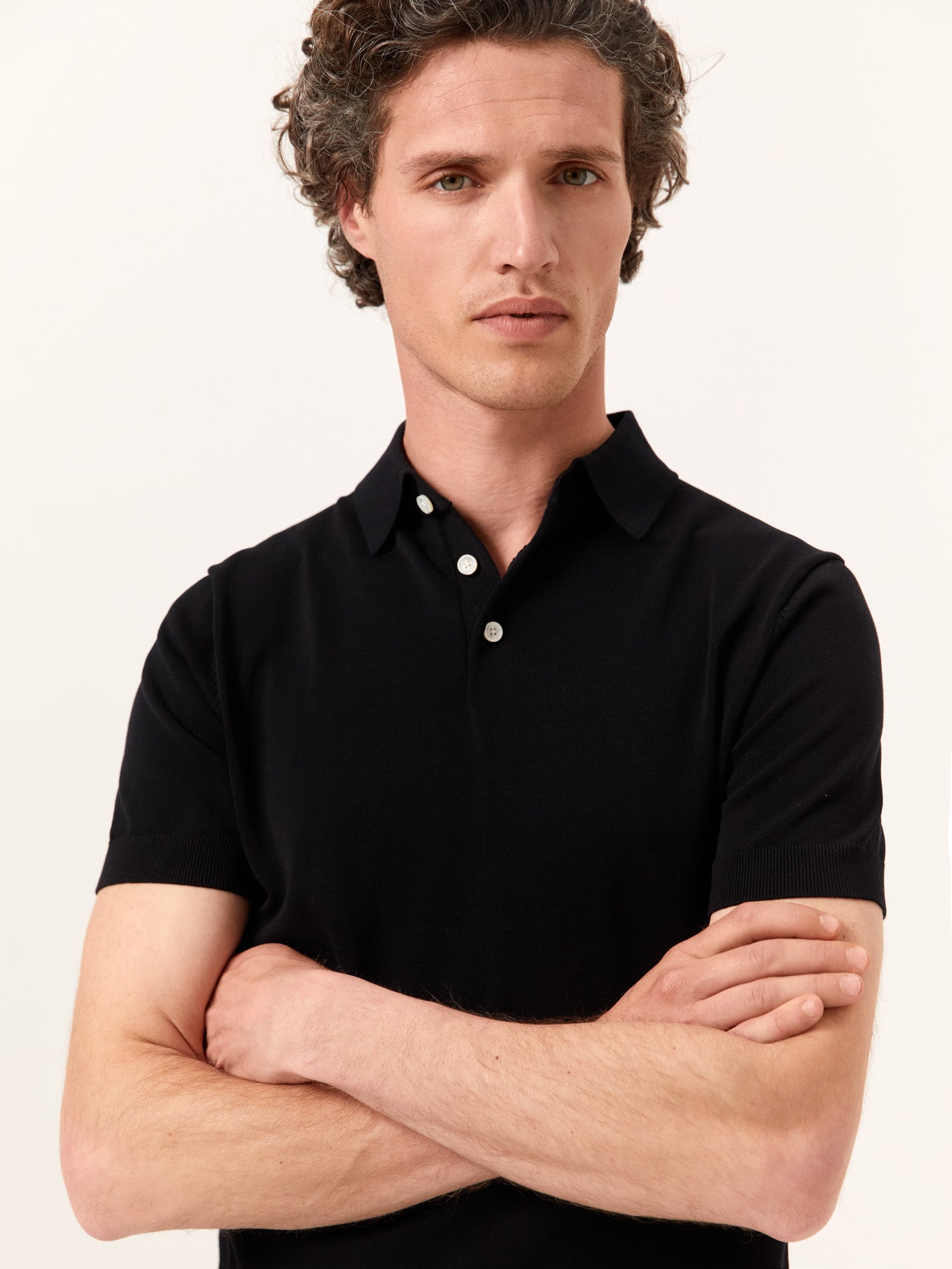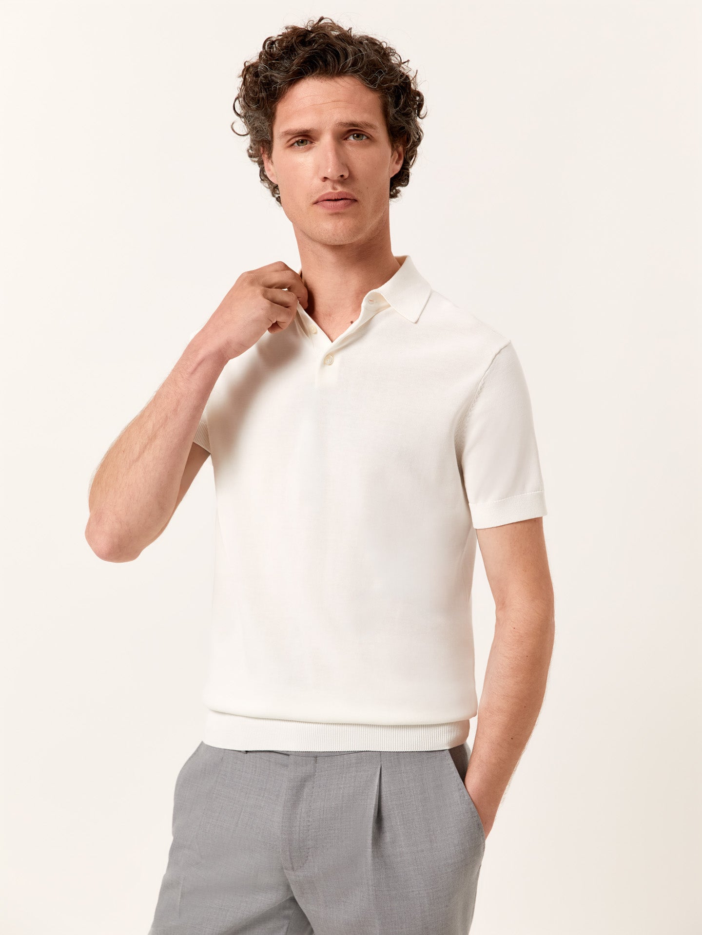 Polo Sweater With Short Sleeves In Cotton and Silk Blend