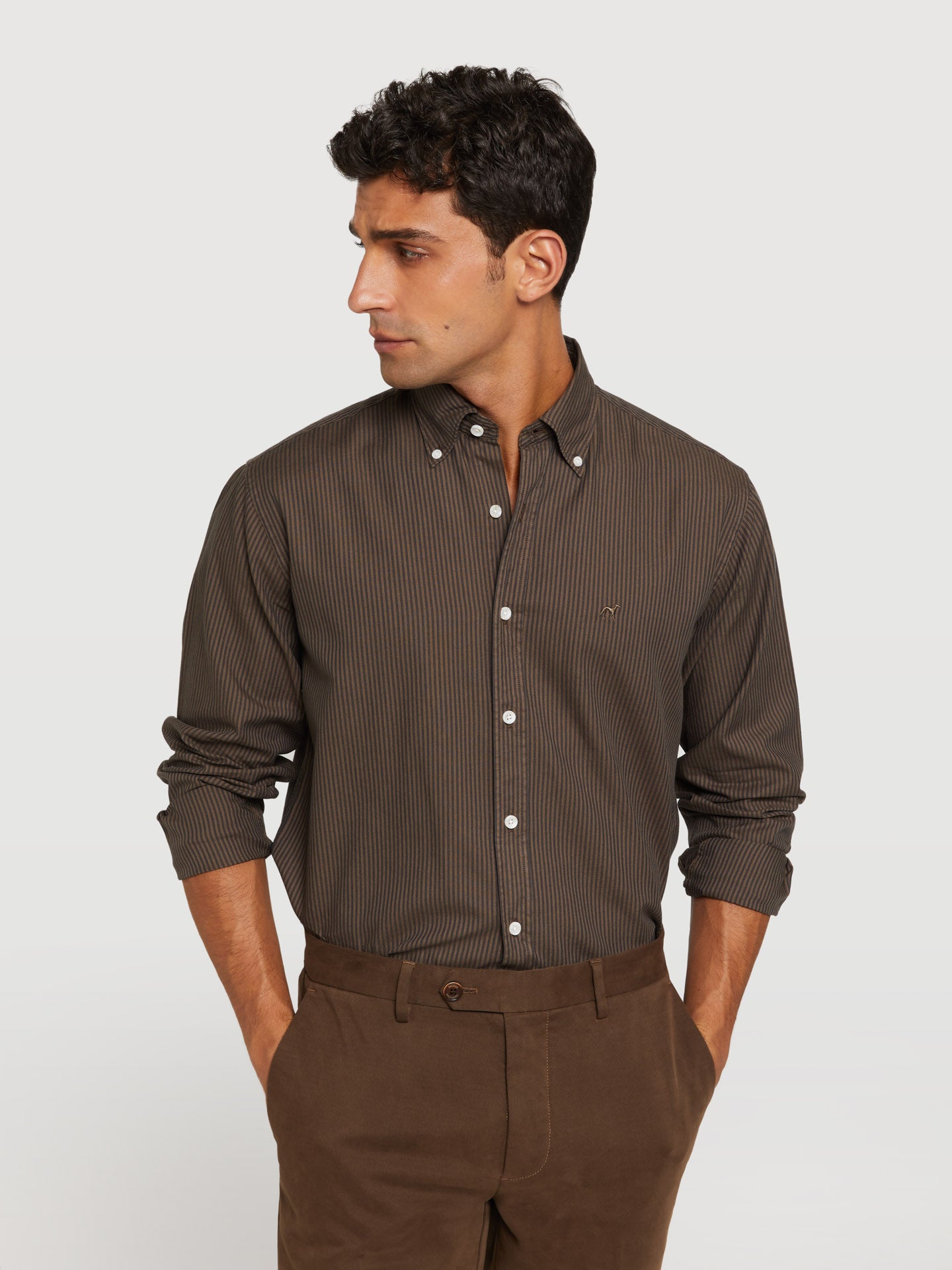 Regular fit 100% bci cotton garment dye striped oxford shirt