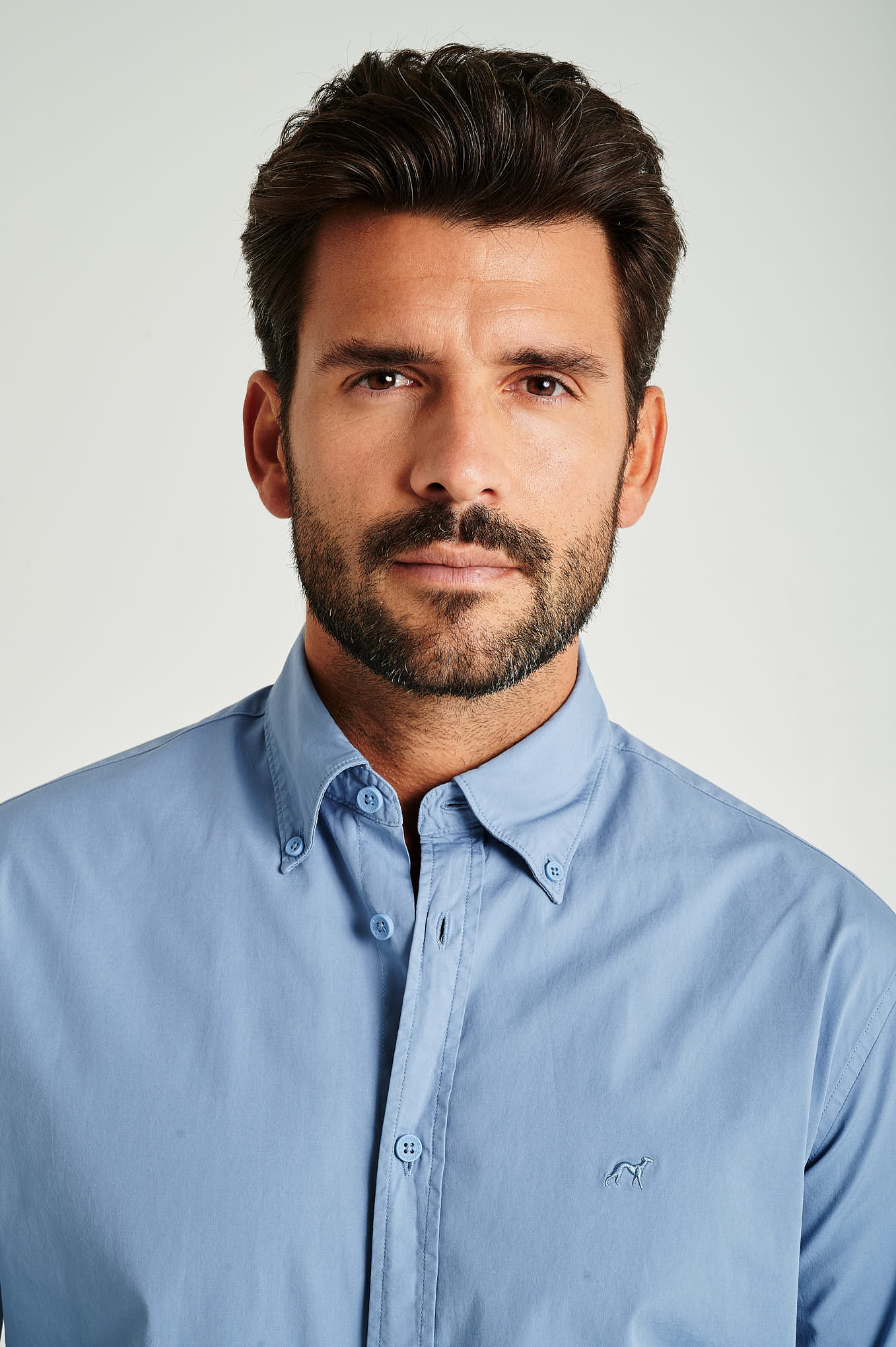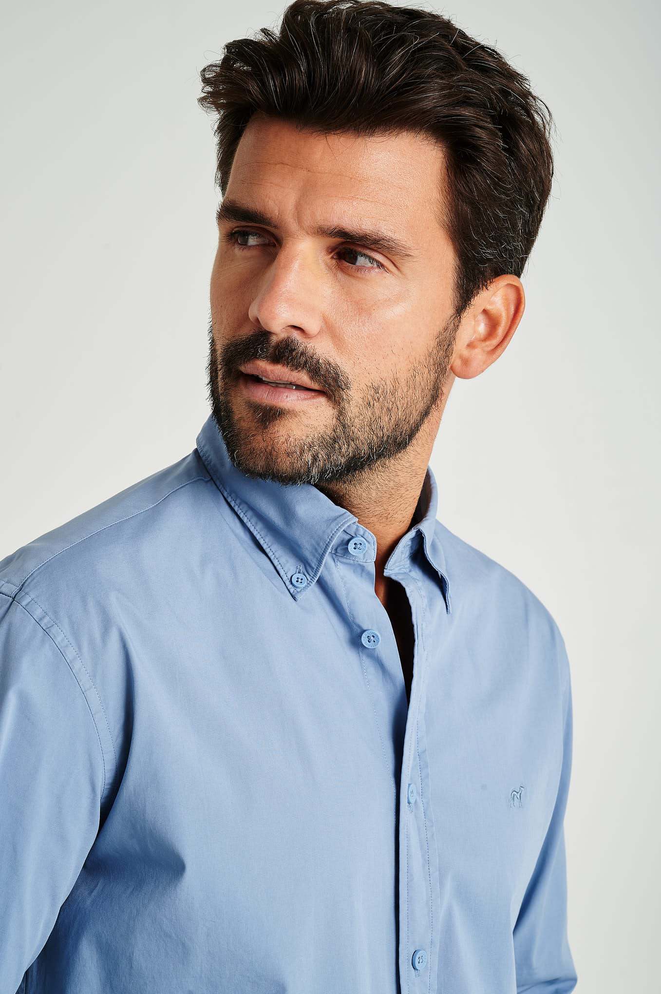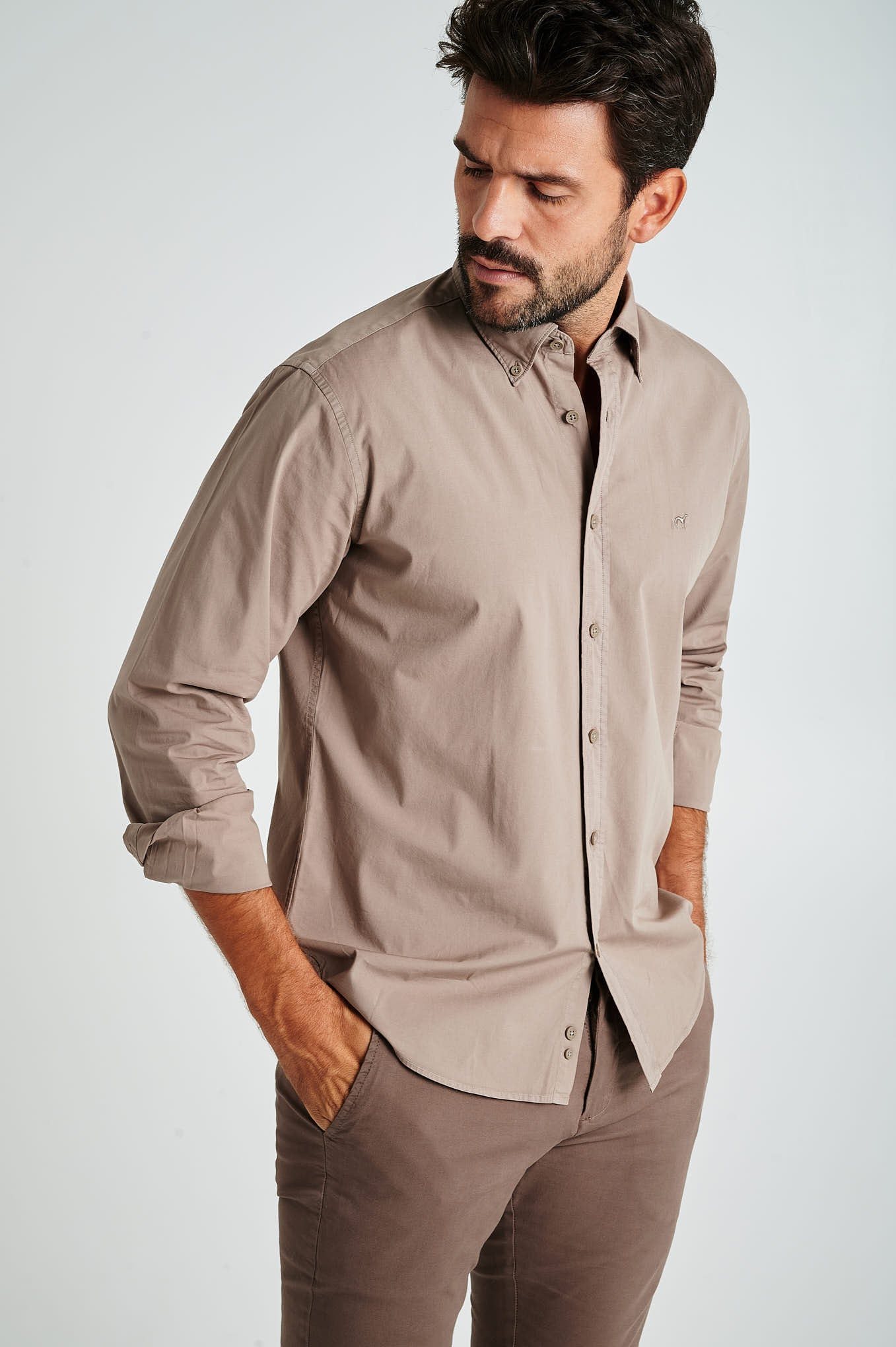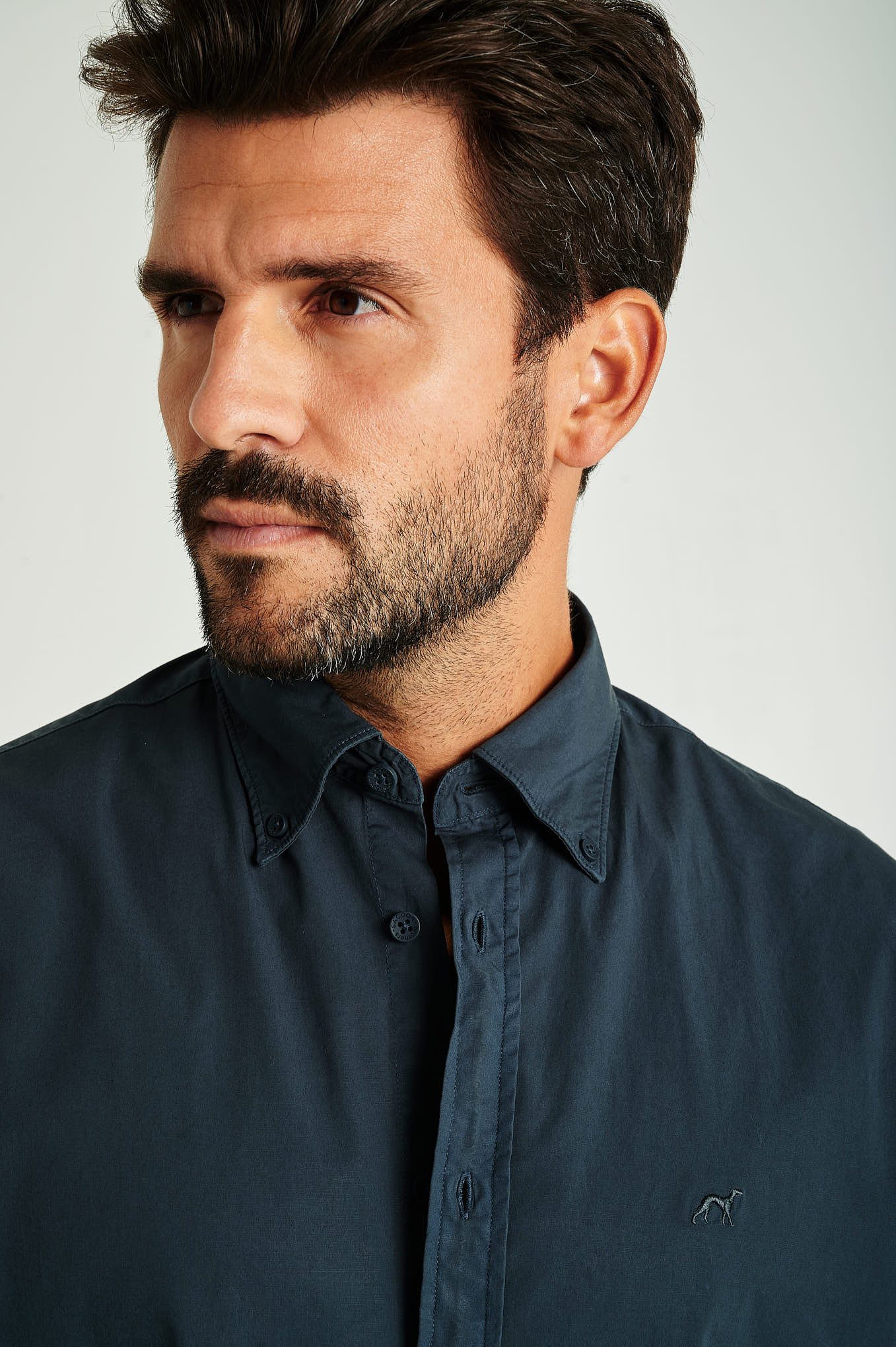 Regular fit cotton elastane comfort poplin shirt in garment dye