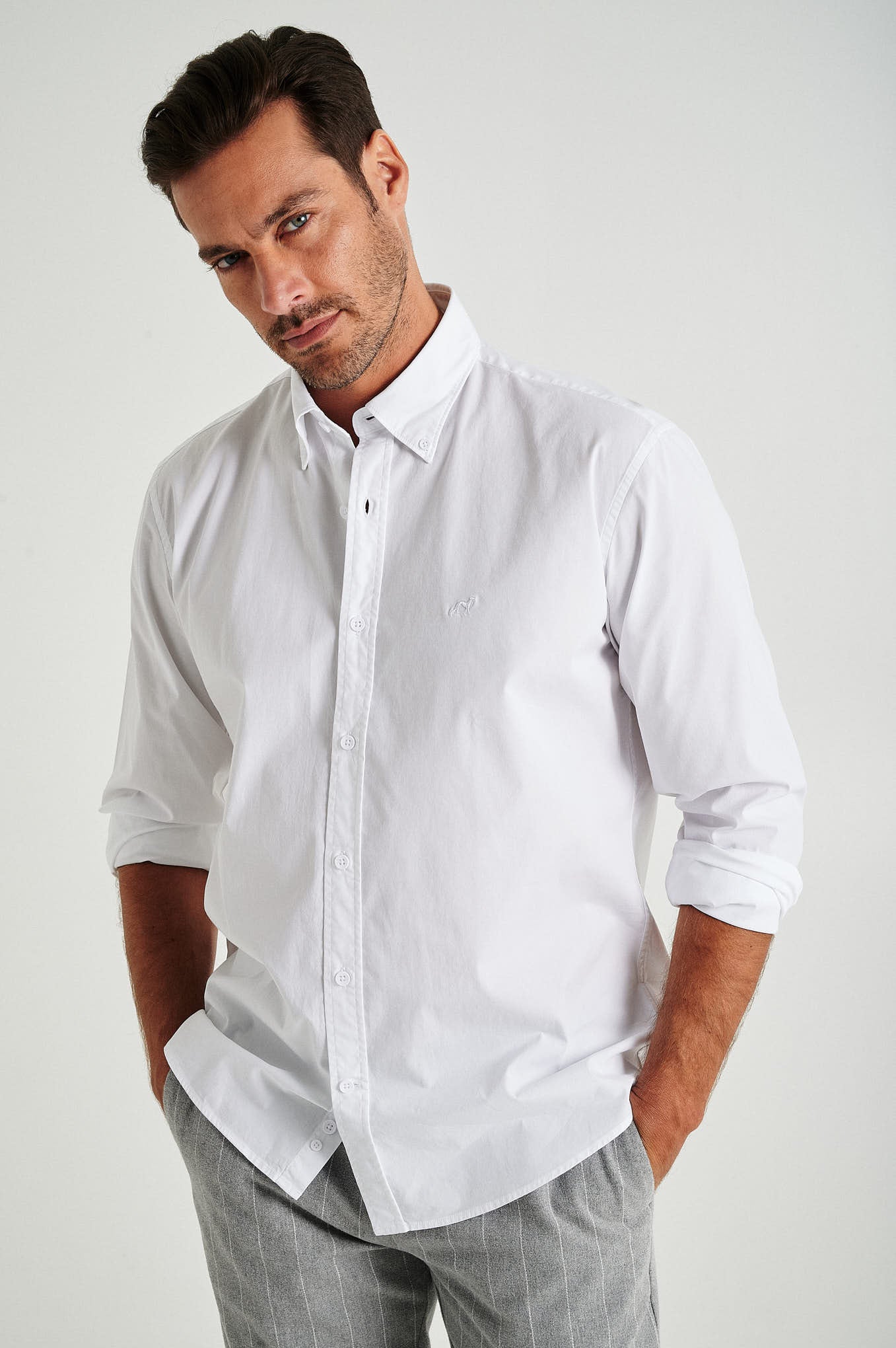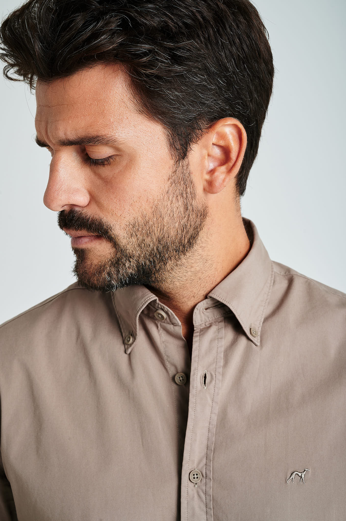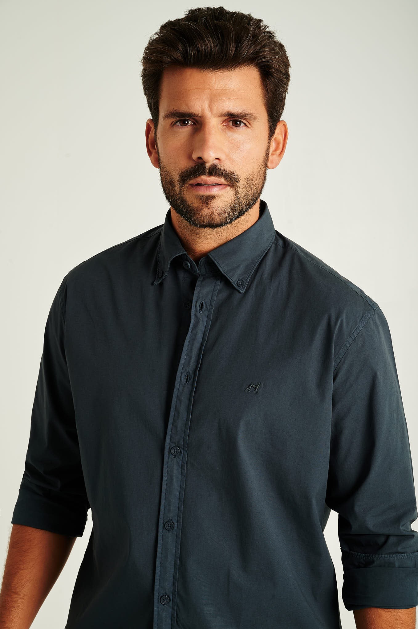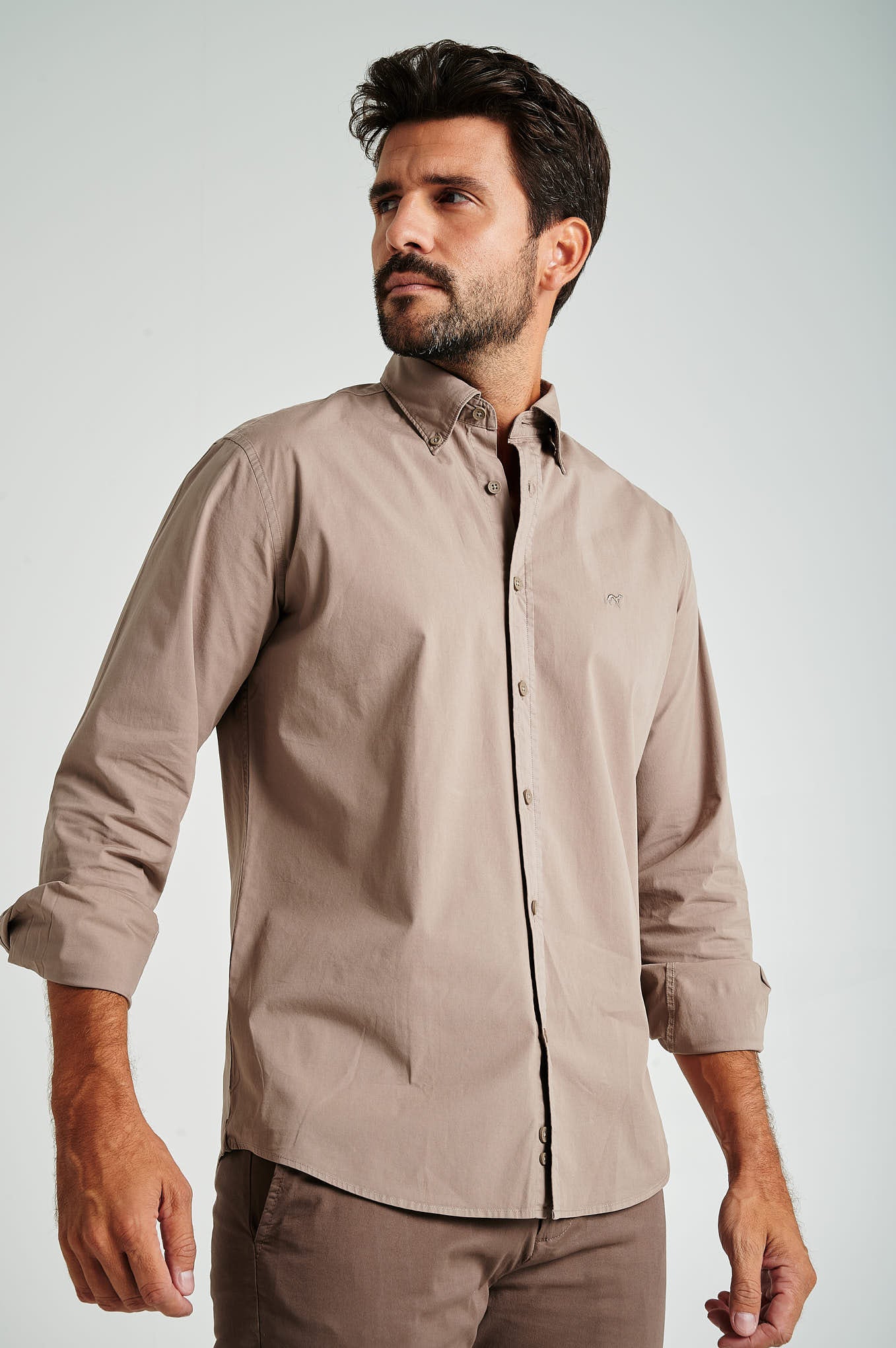Regular fit cotton elastane comfort poplin shirt in garment dye