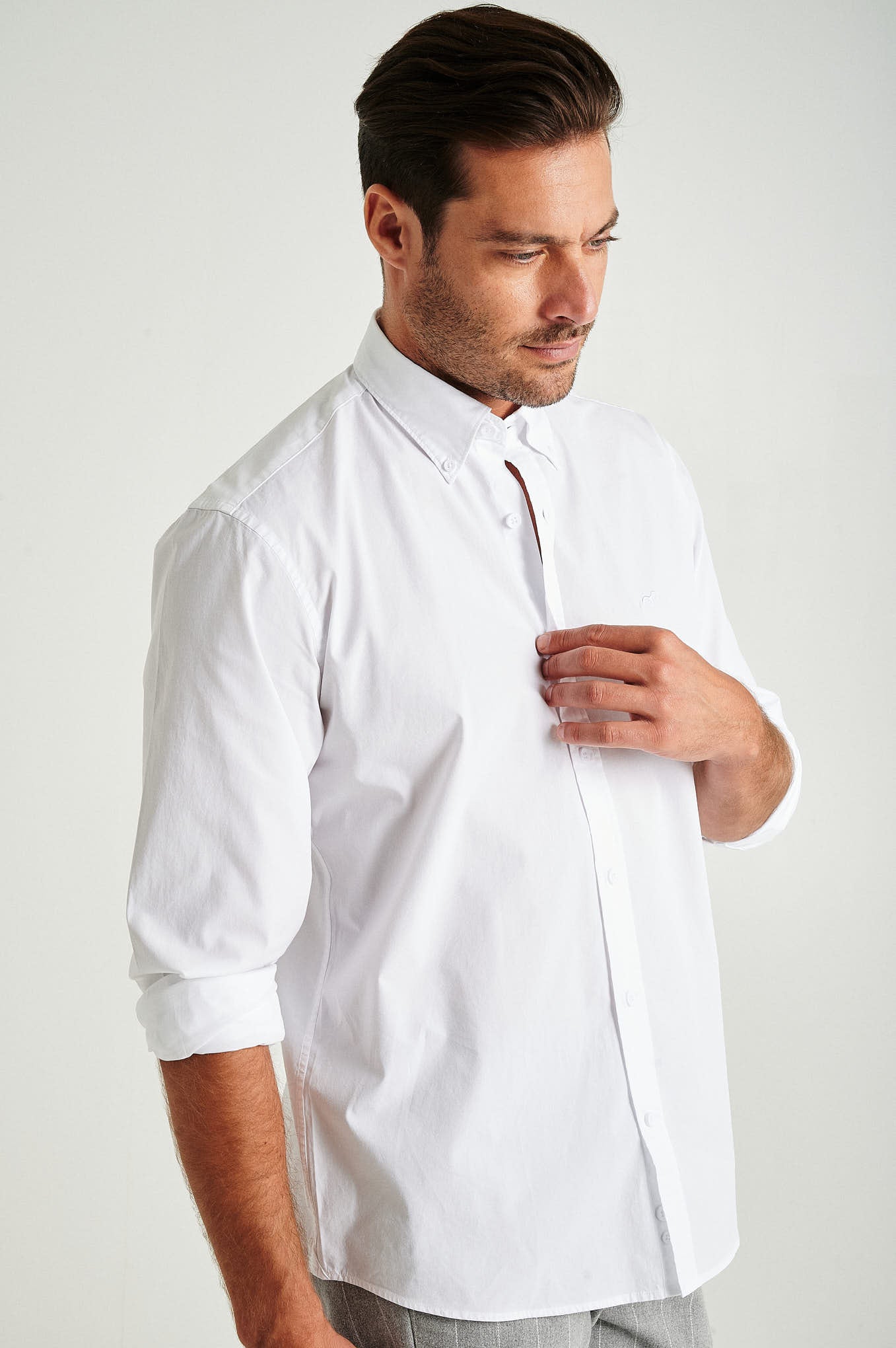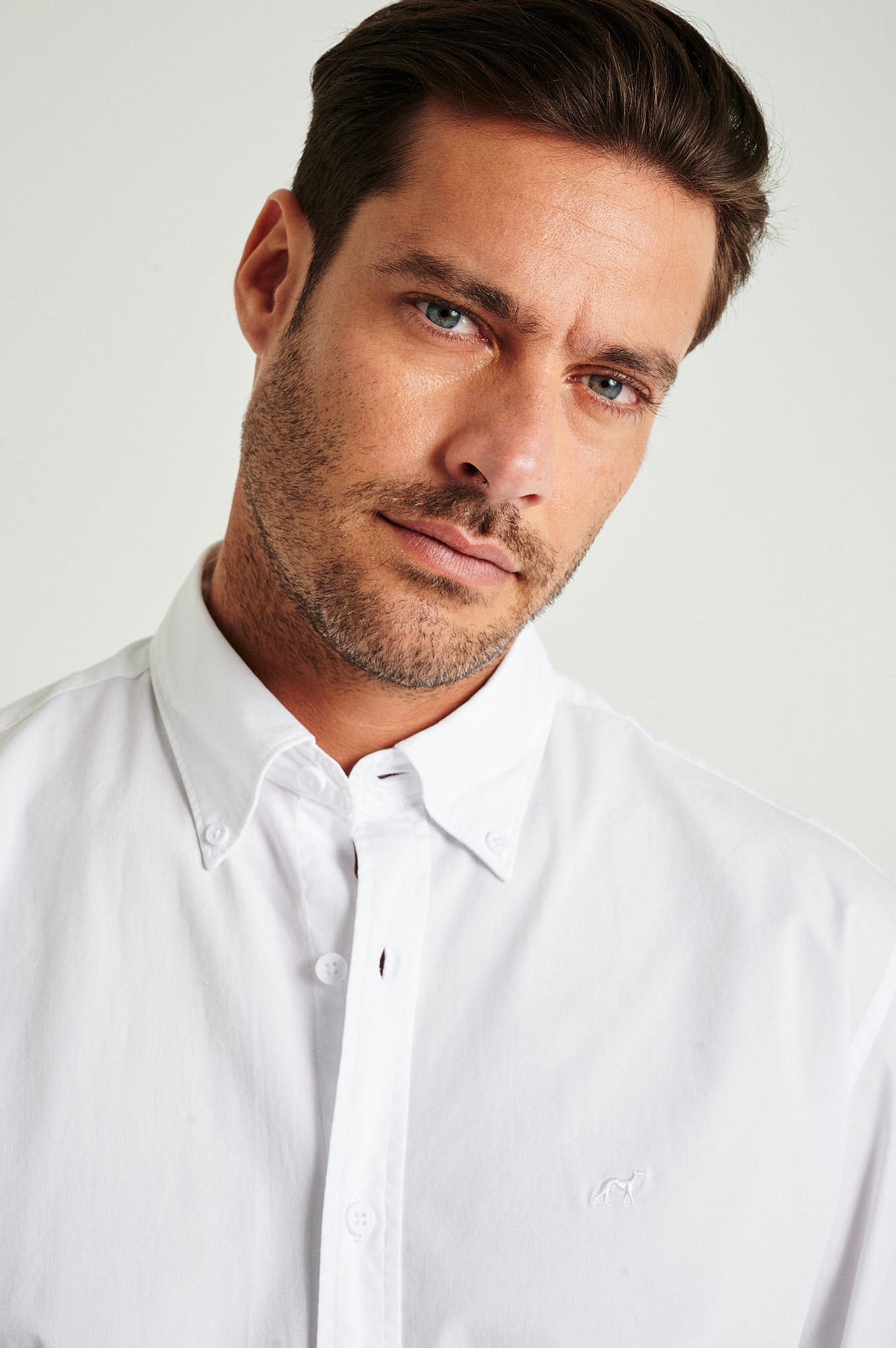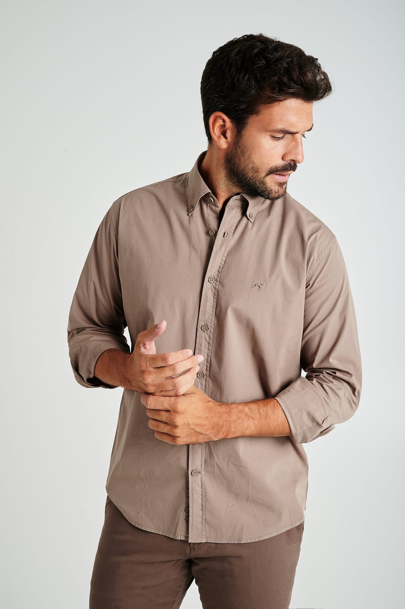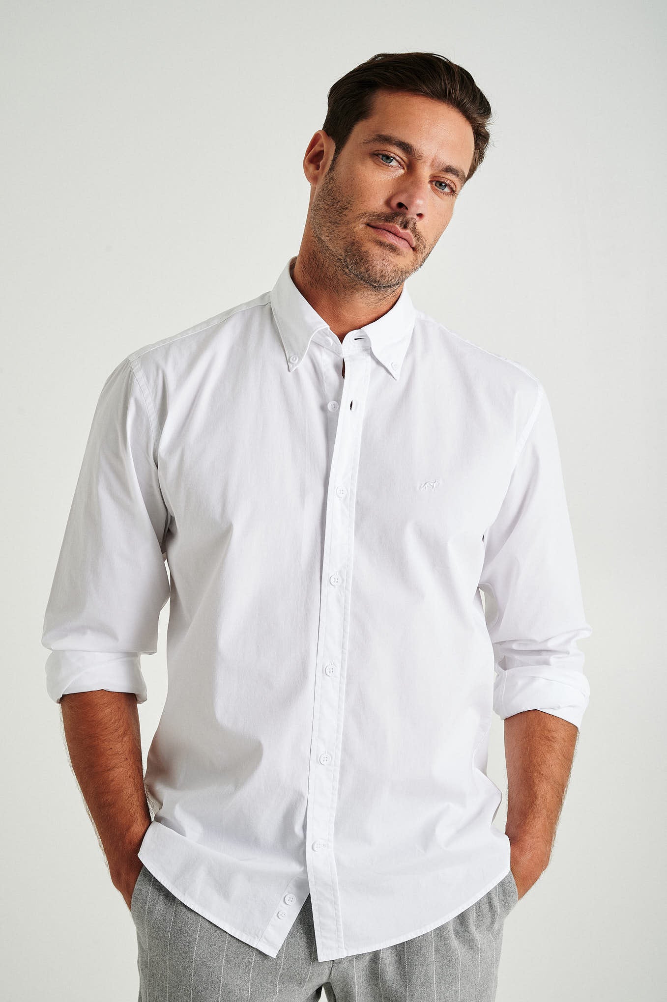 Regular fit cotton elastane comfort poplin shirt in garment dye