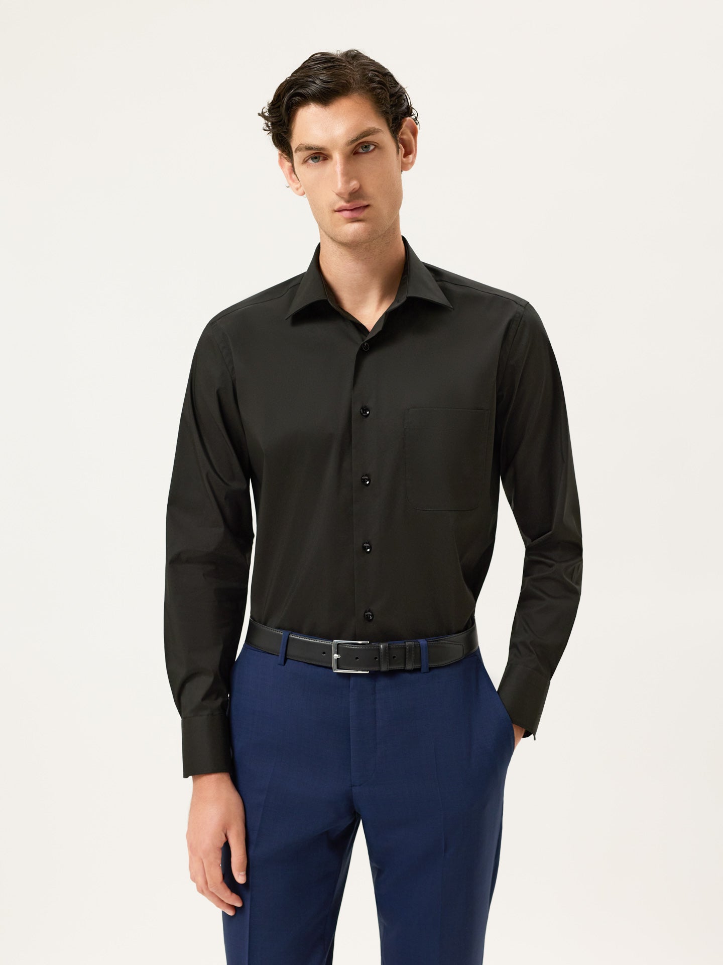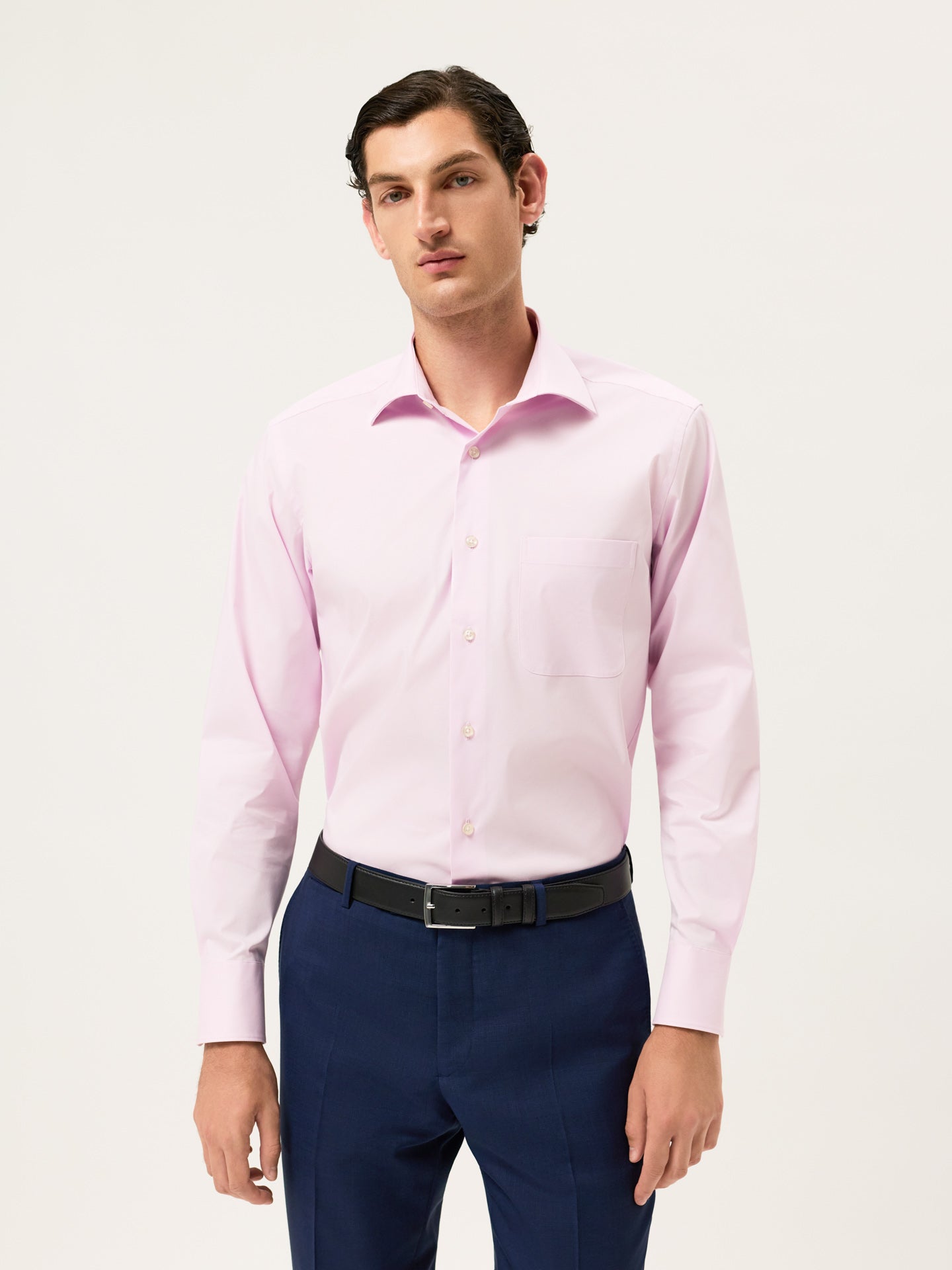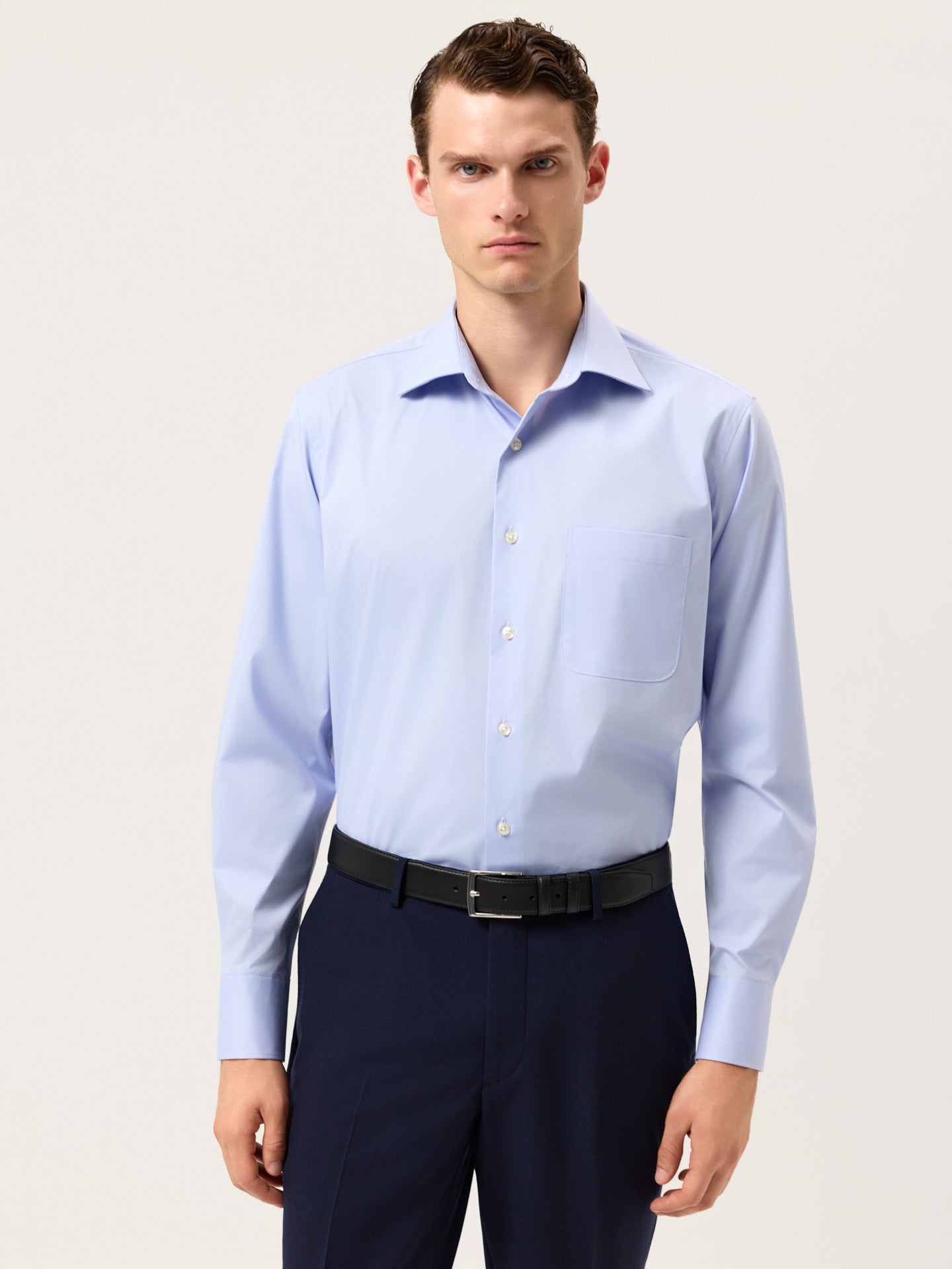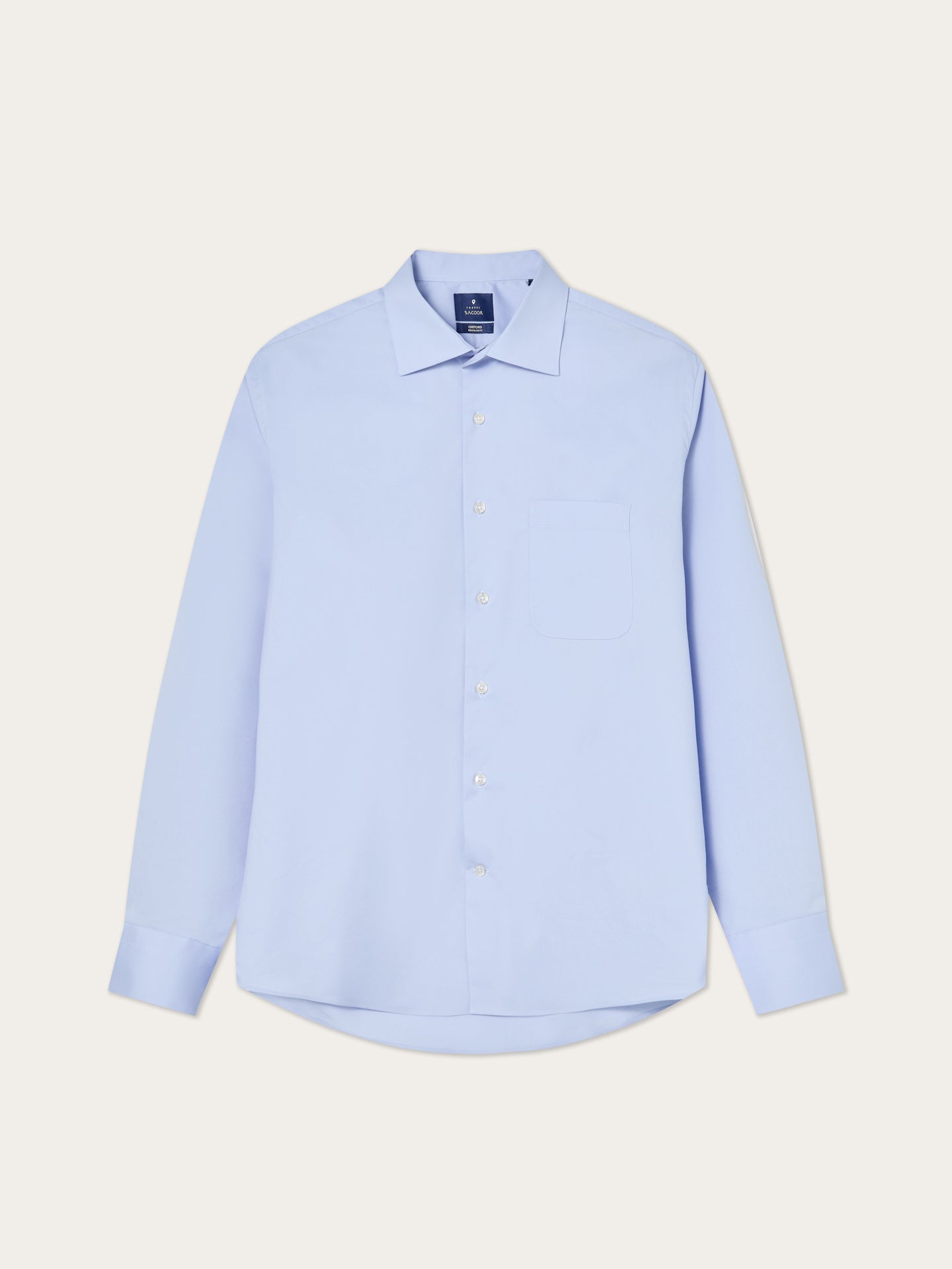 Regular Fit Cotton Stretch Travel Shirt With Oxford Collar and Chest Pocket.