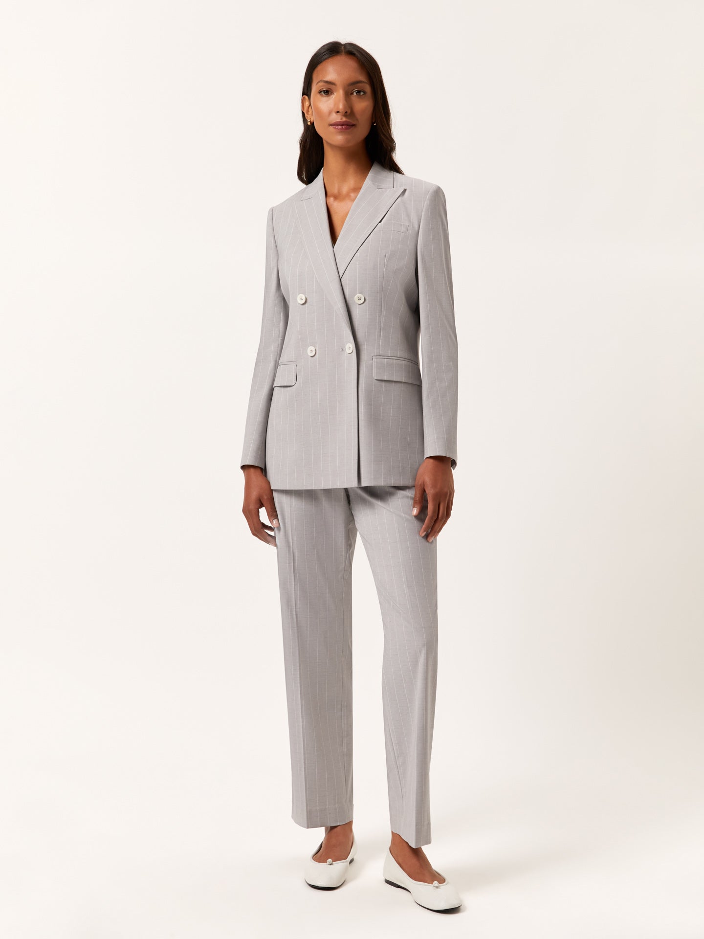 Regular Fit Pinstripe Trousers In Rayon & Cotton Blend