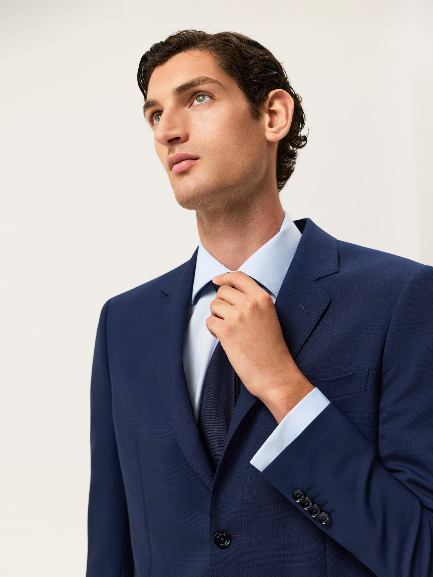 Regular Fit Twill Formal Shirt With Oxford Collar And Double Cuff