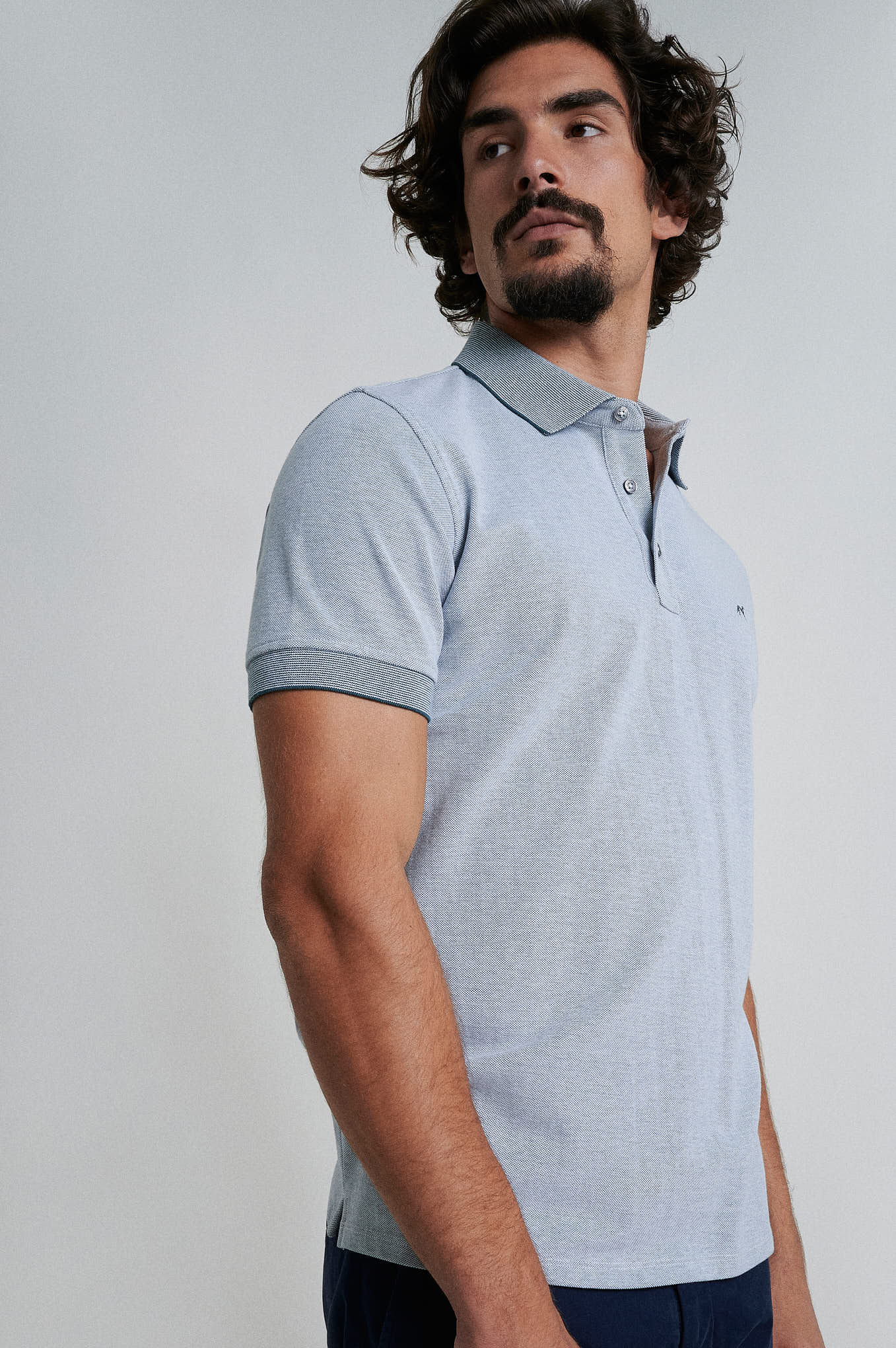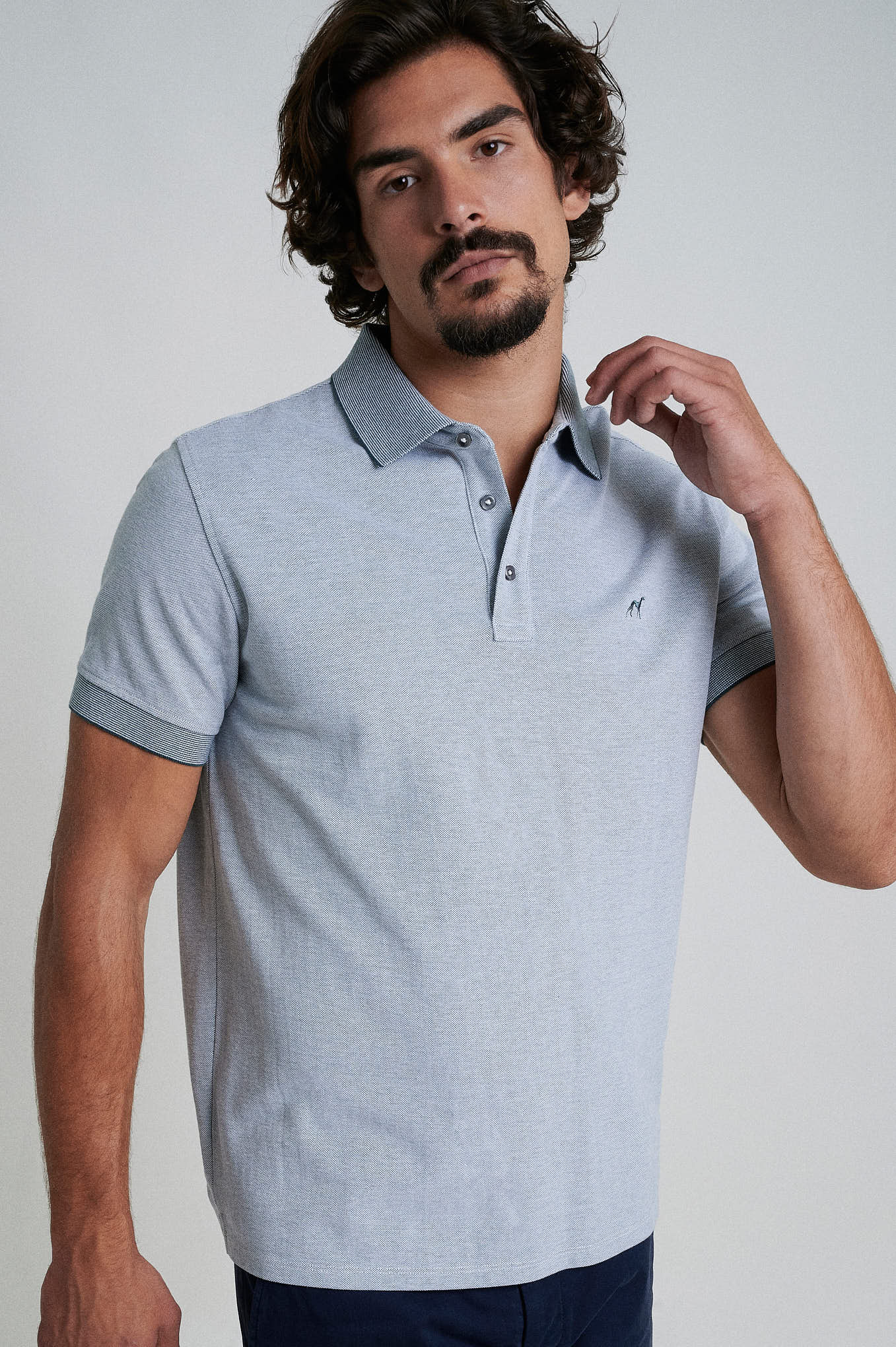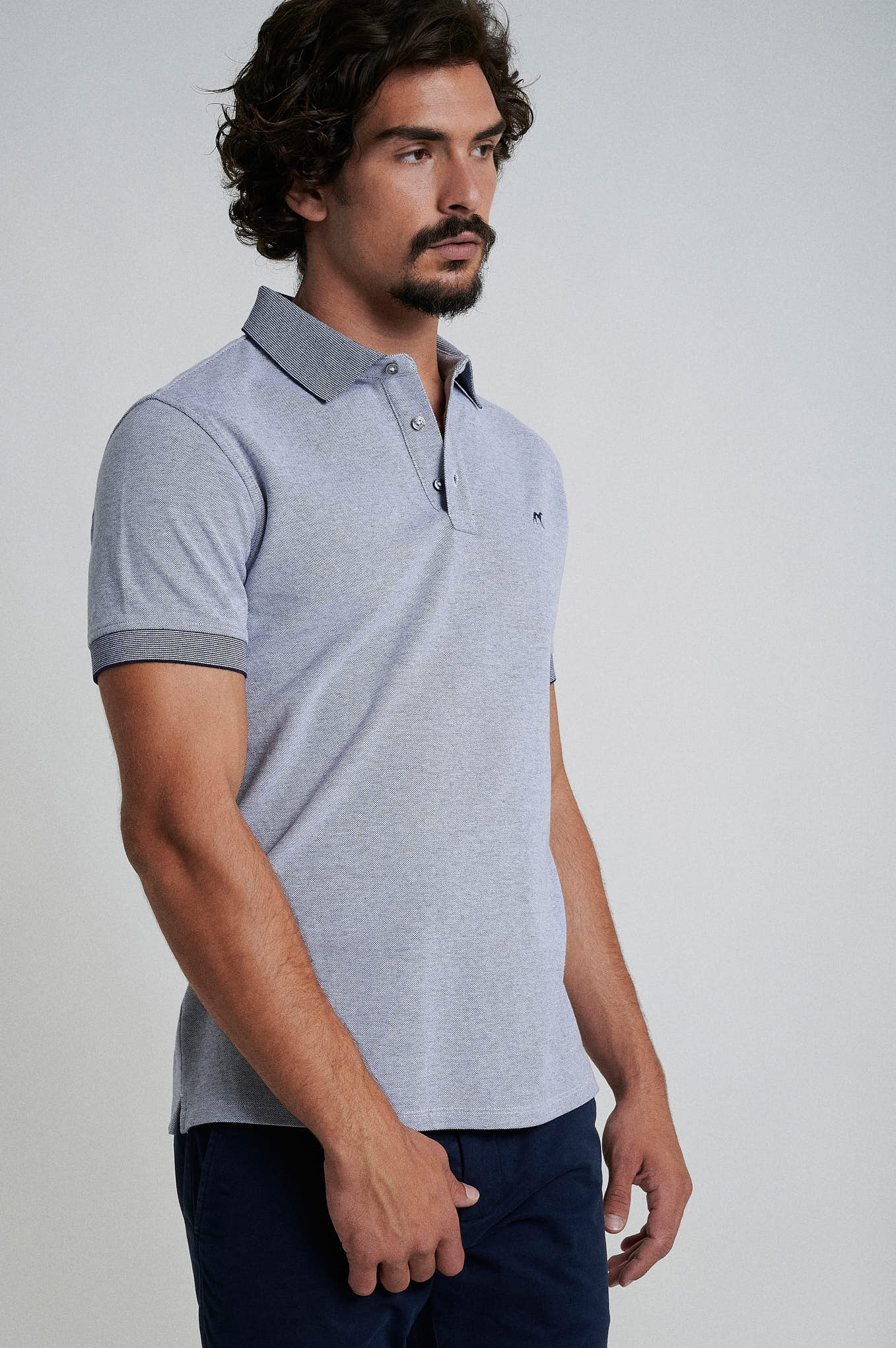 Short sleeve mercerized cotton polo piquet oxford structure