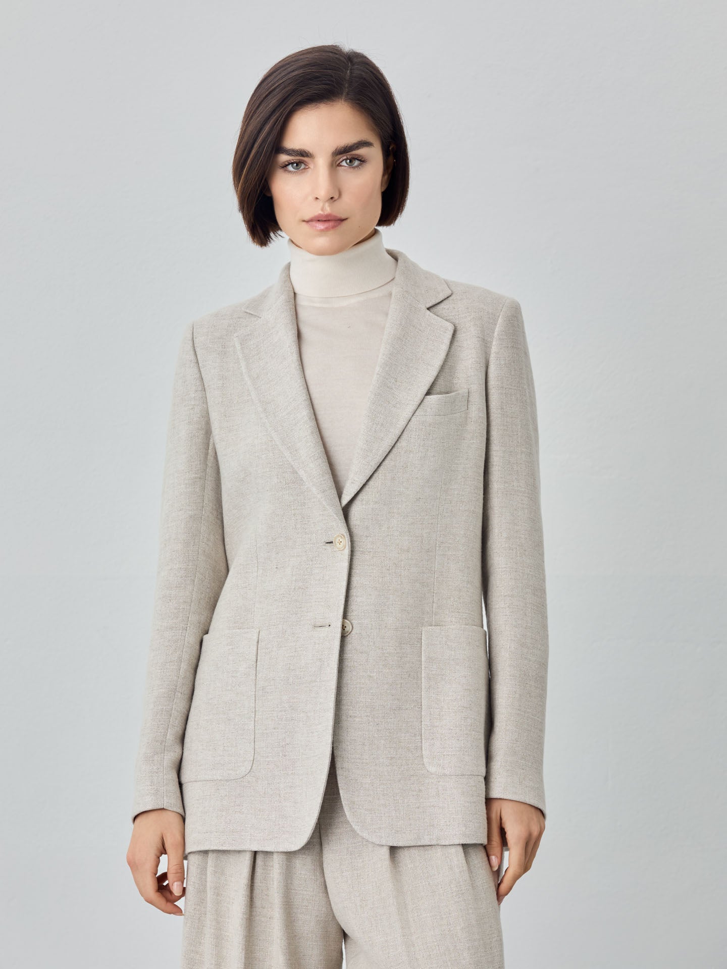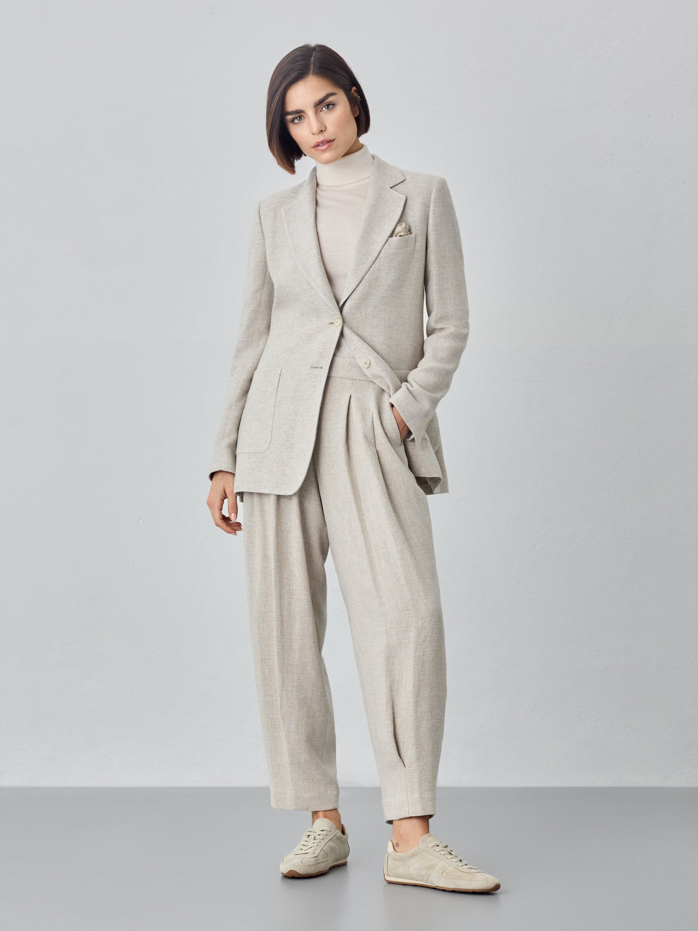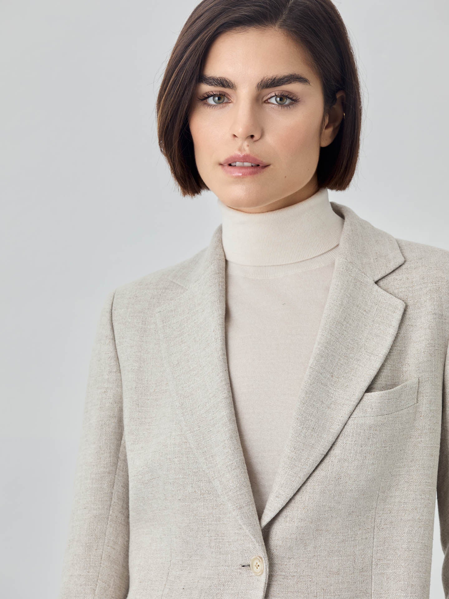 Single-Breasted Suit Blazer In Viscose Linen and Lyocell Blend