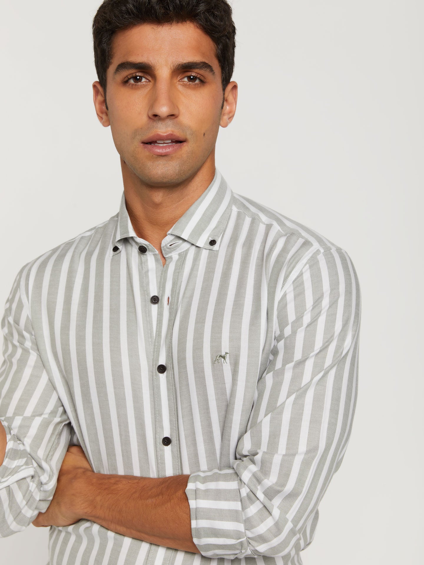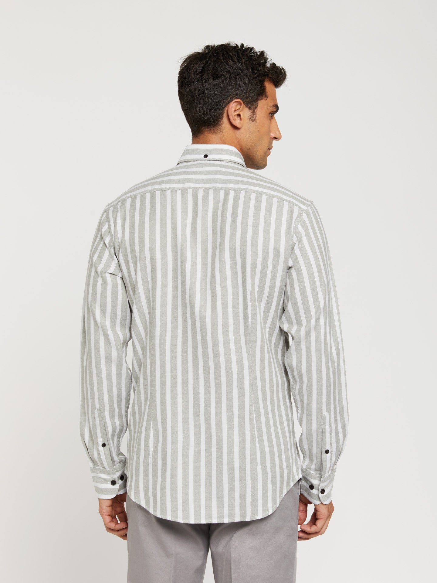 Slim fit 100% bci cotton striped flannel shirt