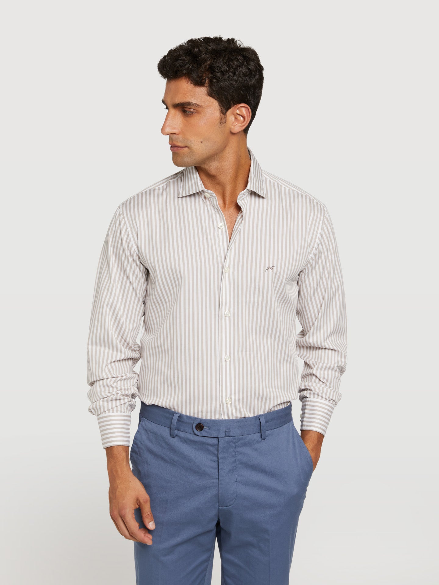 Slim fit 100% bci cotton striped shirt