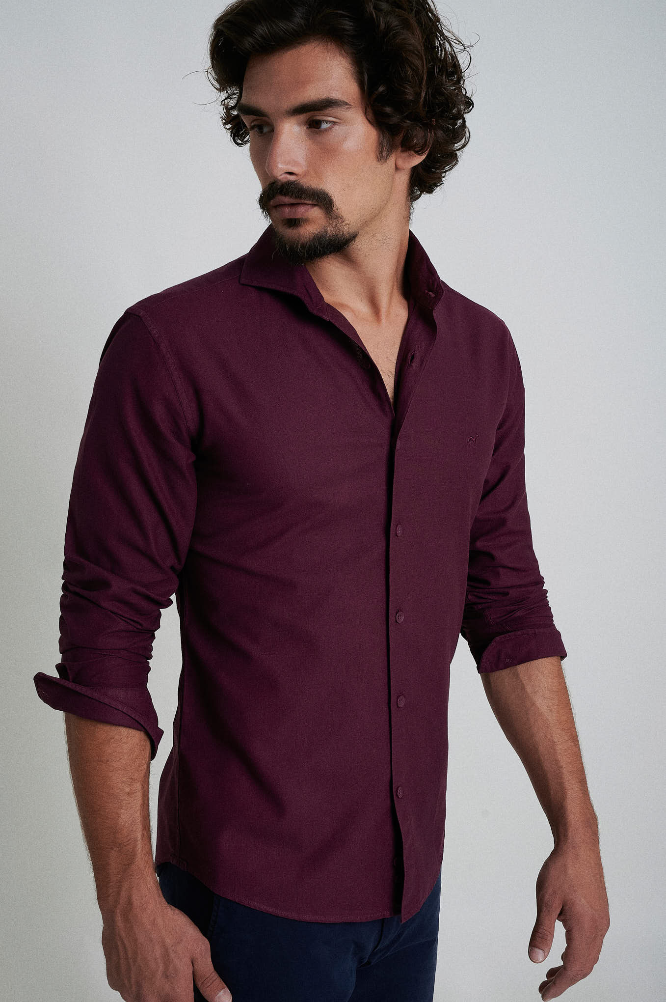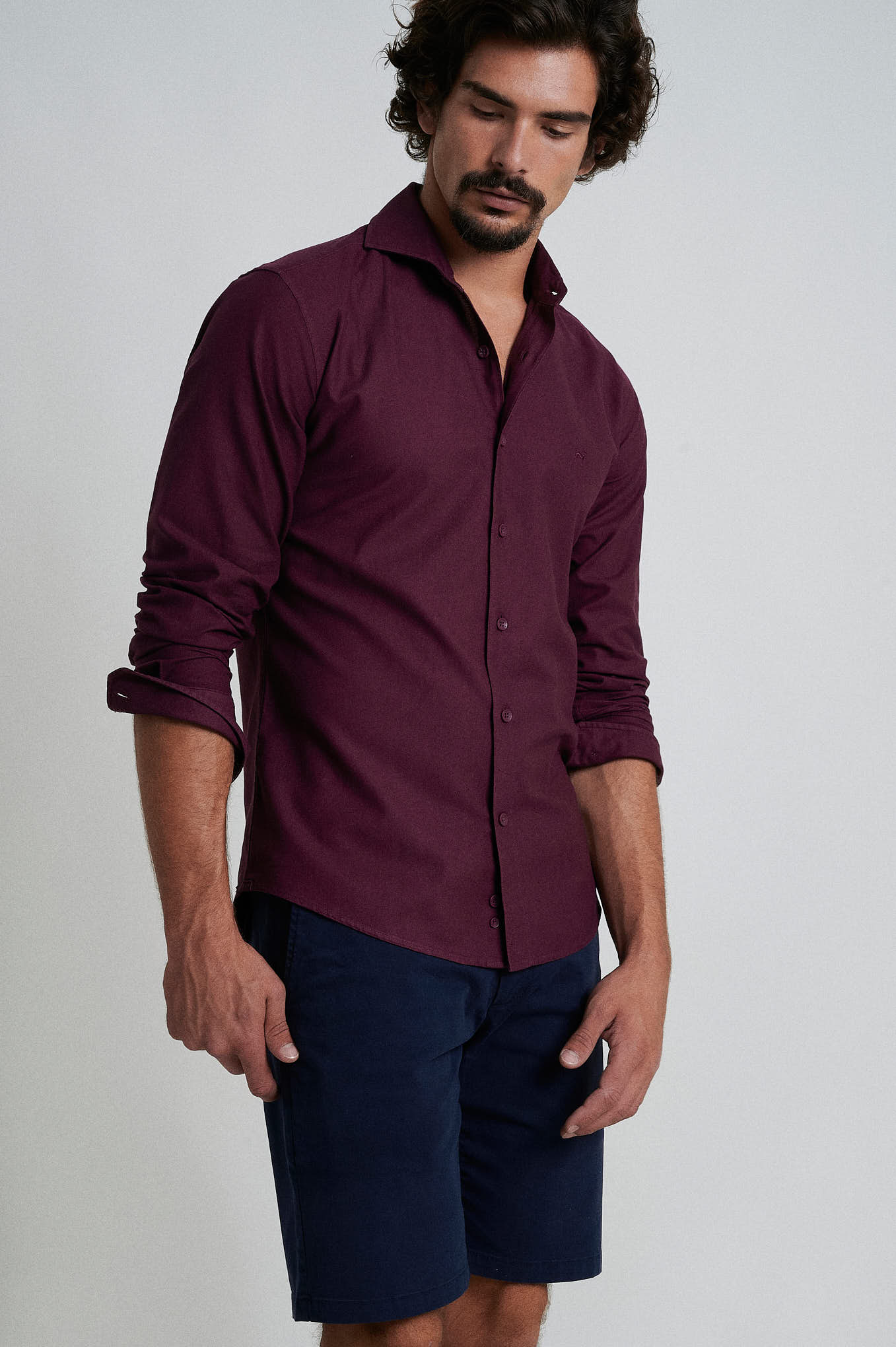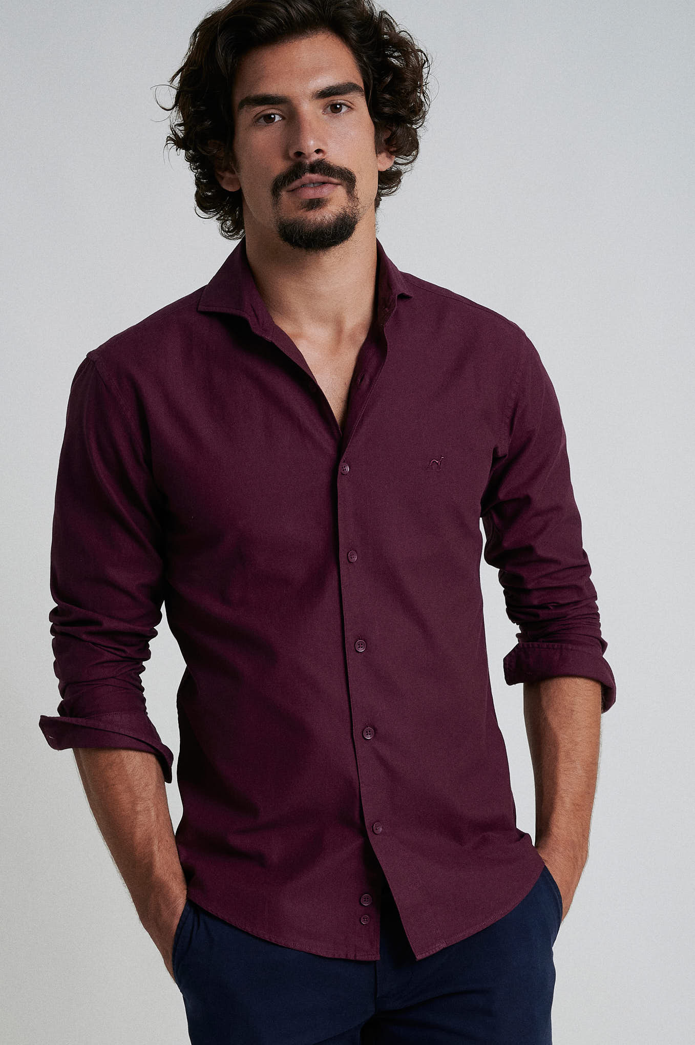 Slim fit 100% cotton jaquard garment dye shirt