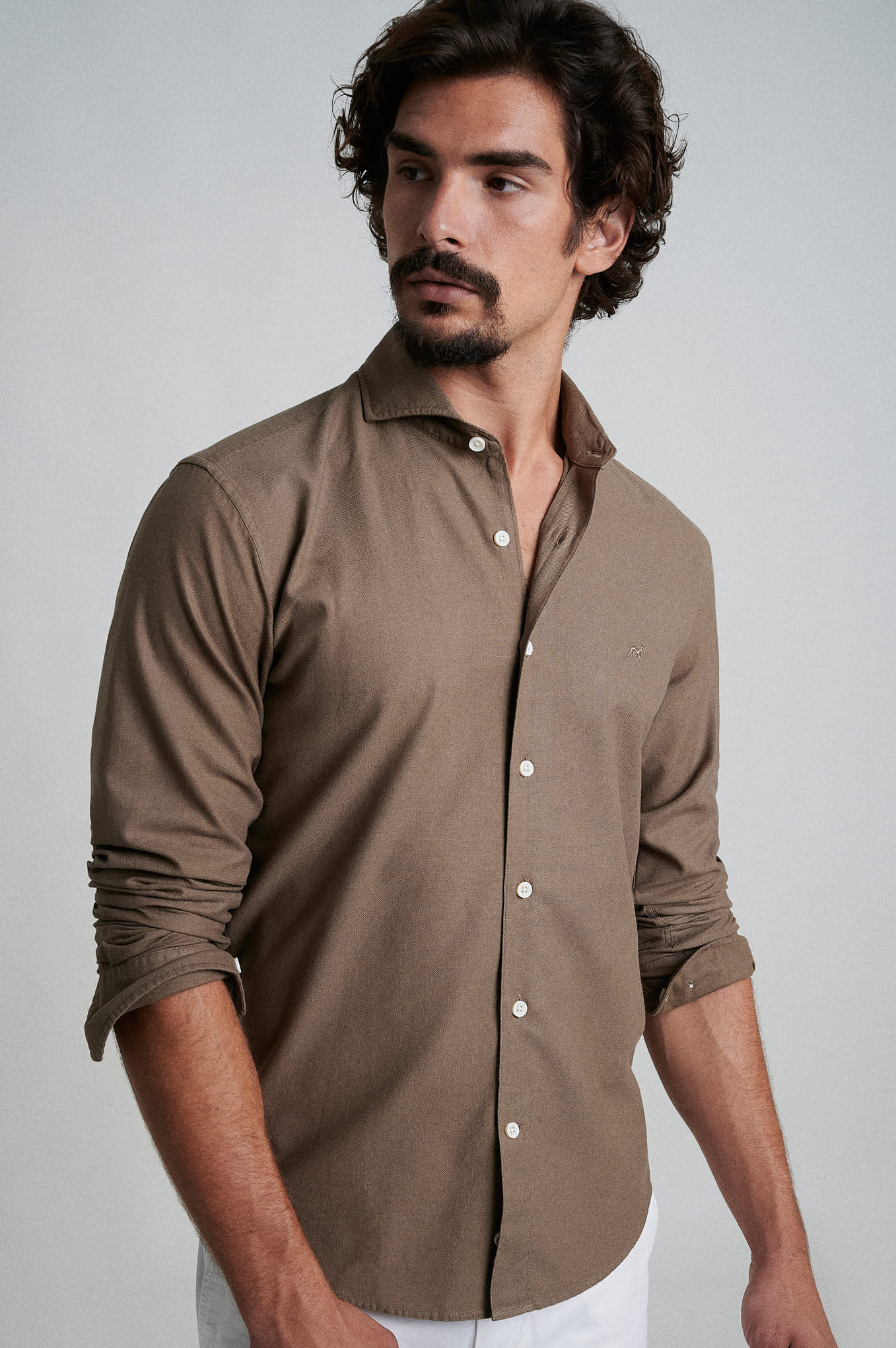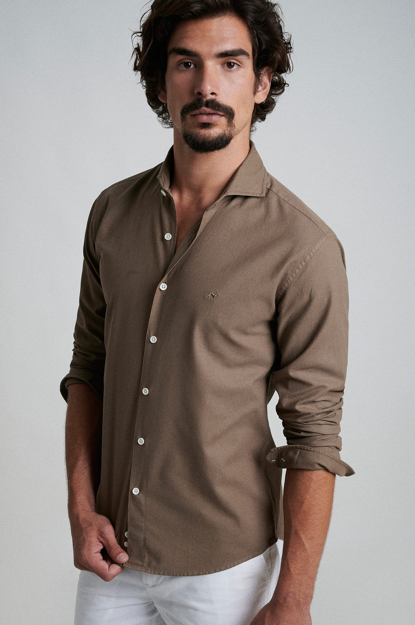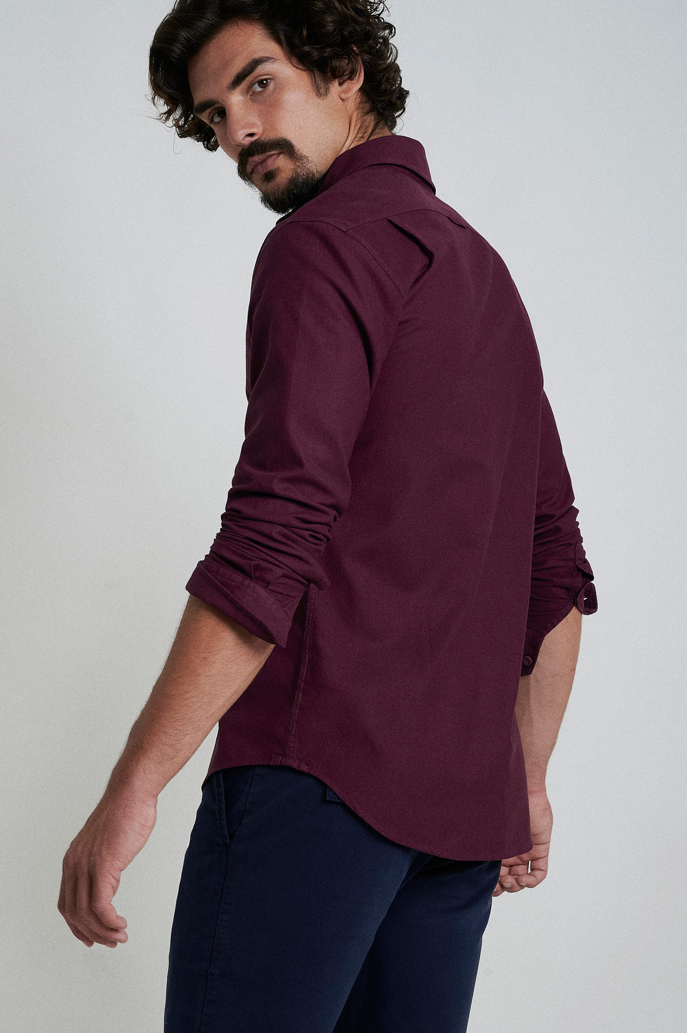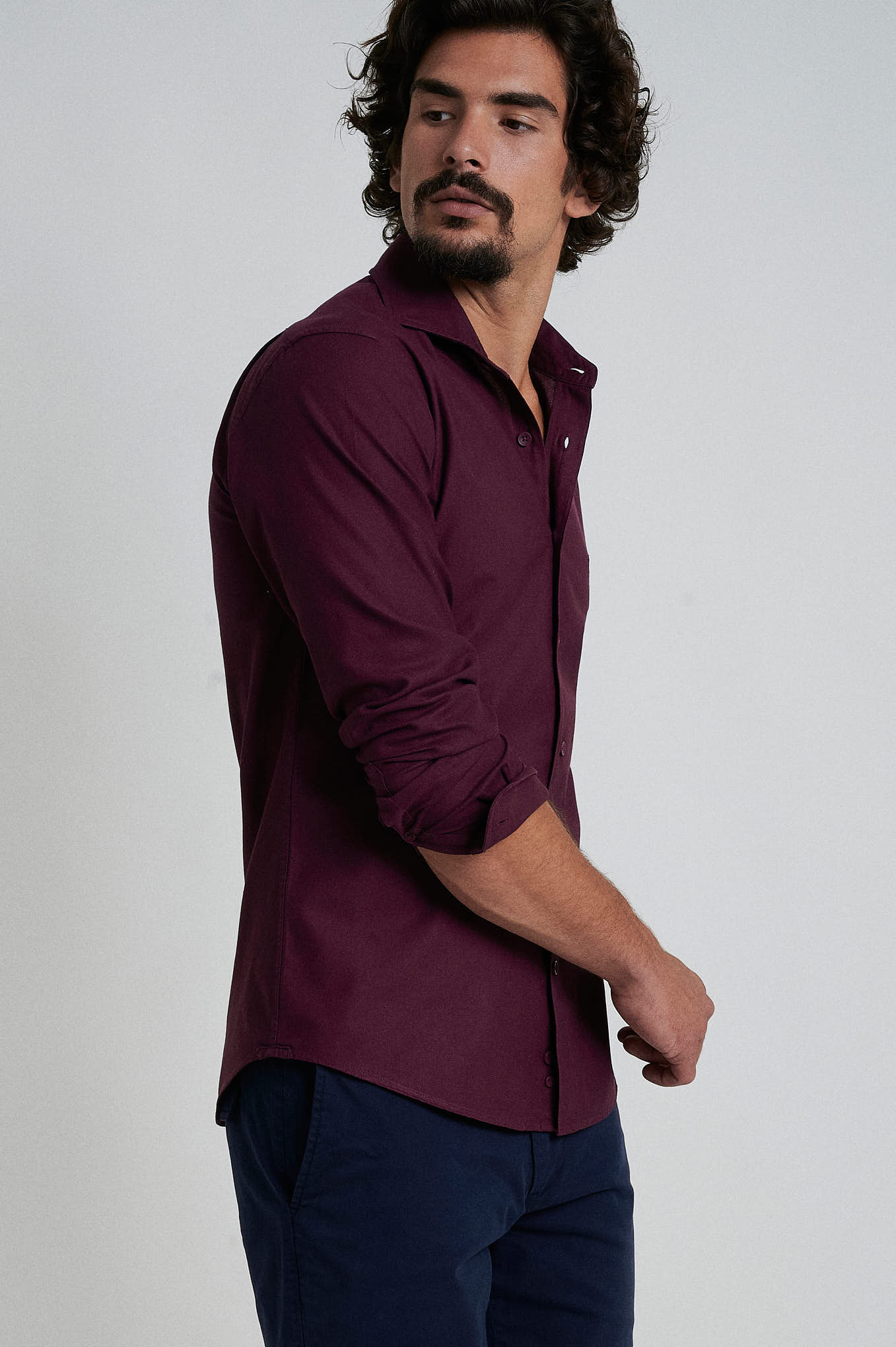 Slim fit 100% cotton jaquard garment dye shirt