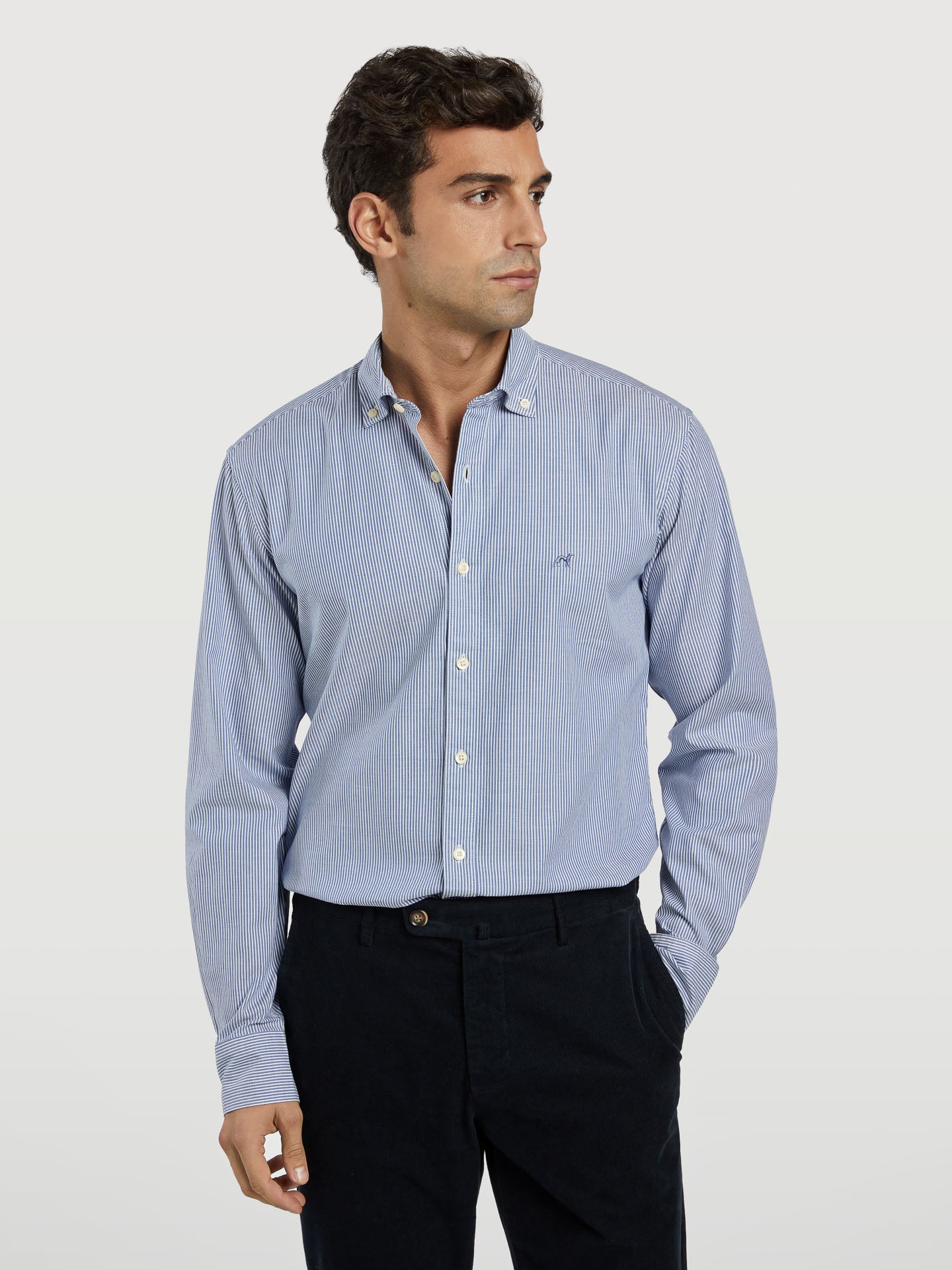Slim fit 100%BCI cotton striped oxford shirt