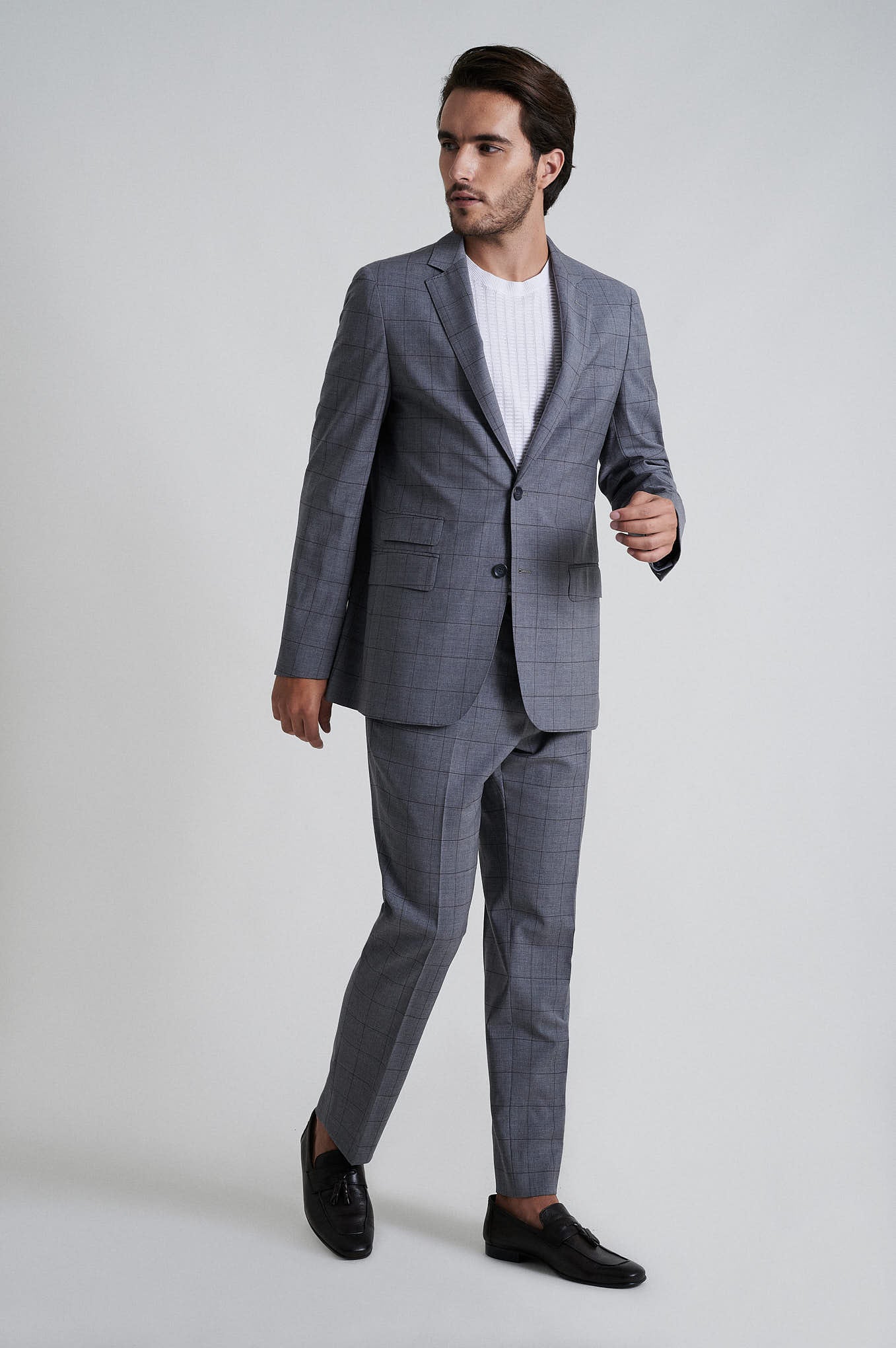 Slim fit comfort wool elastane suit half canvas construction Anti-crease finishing