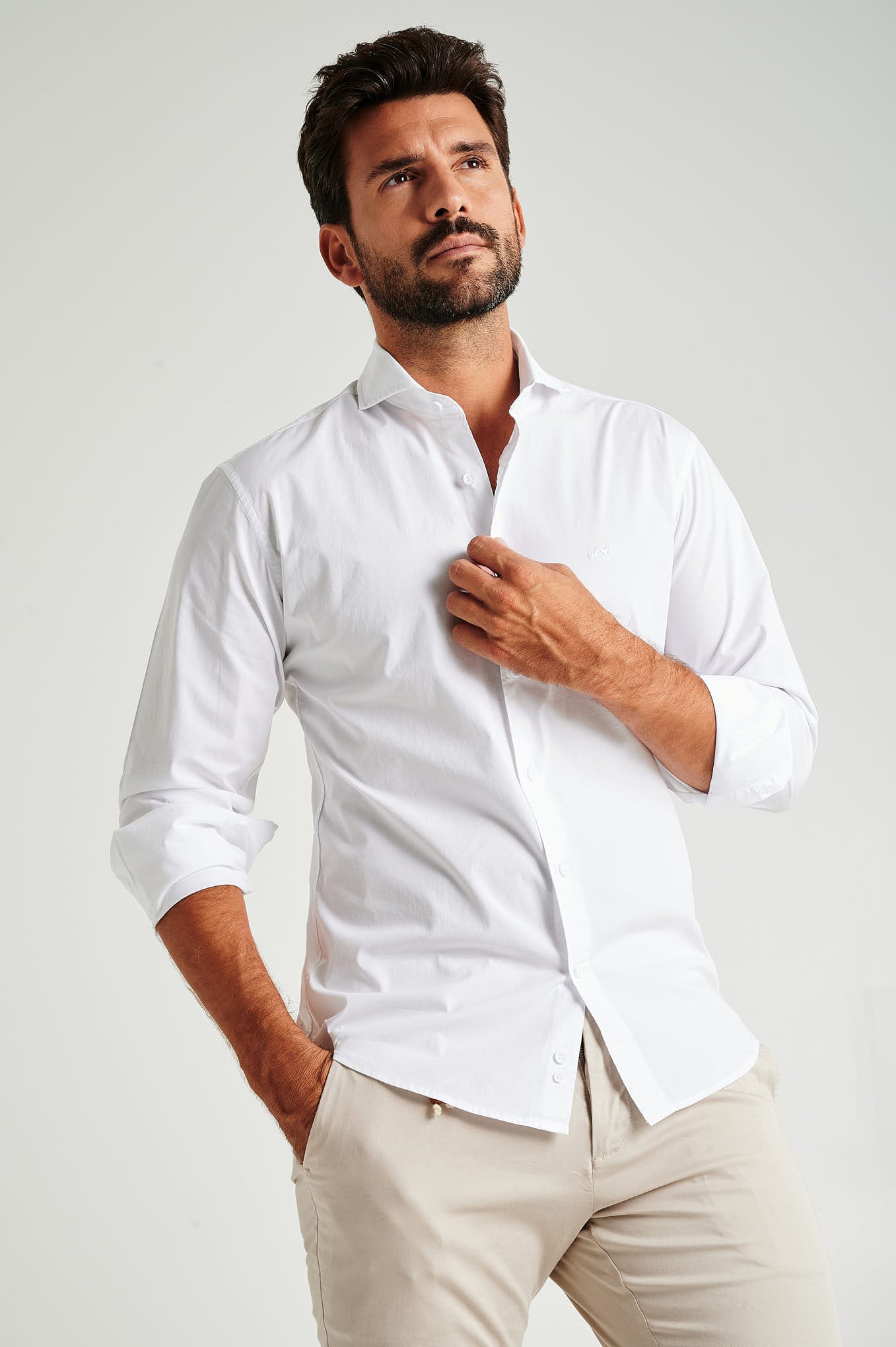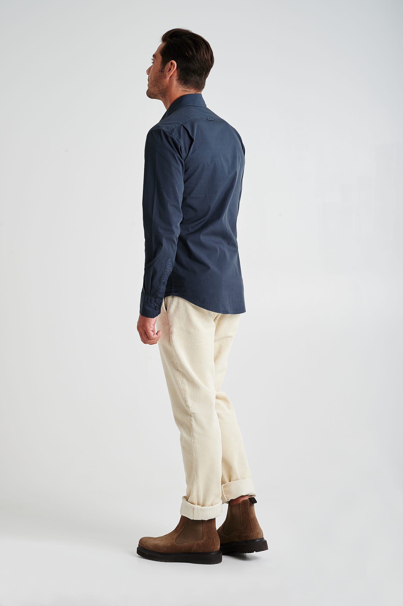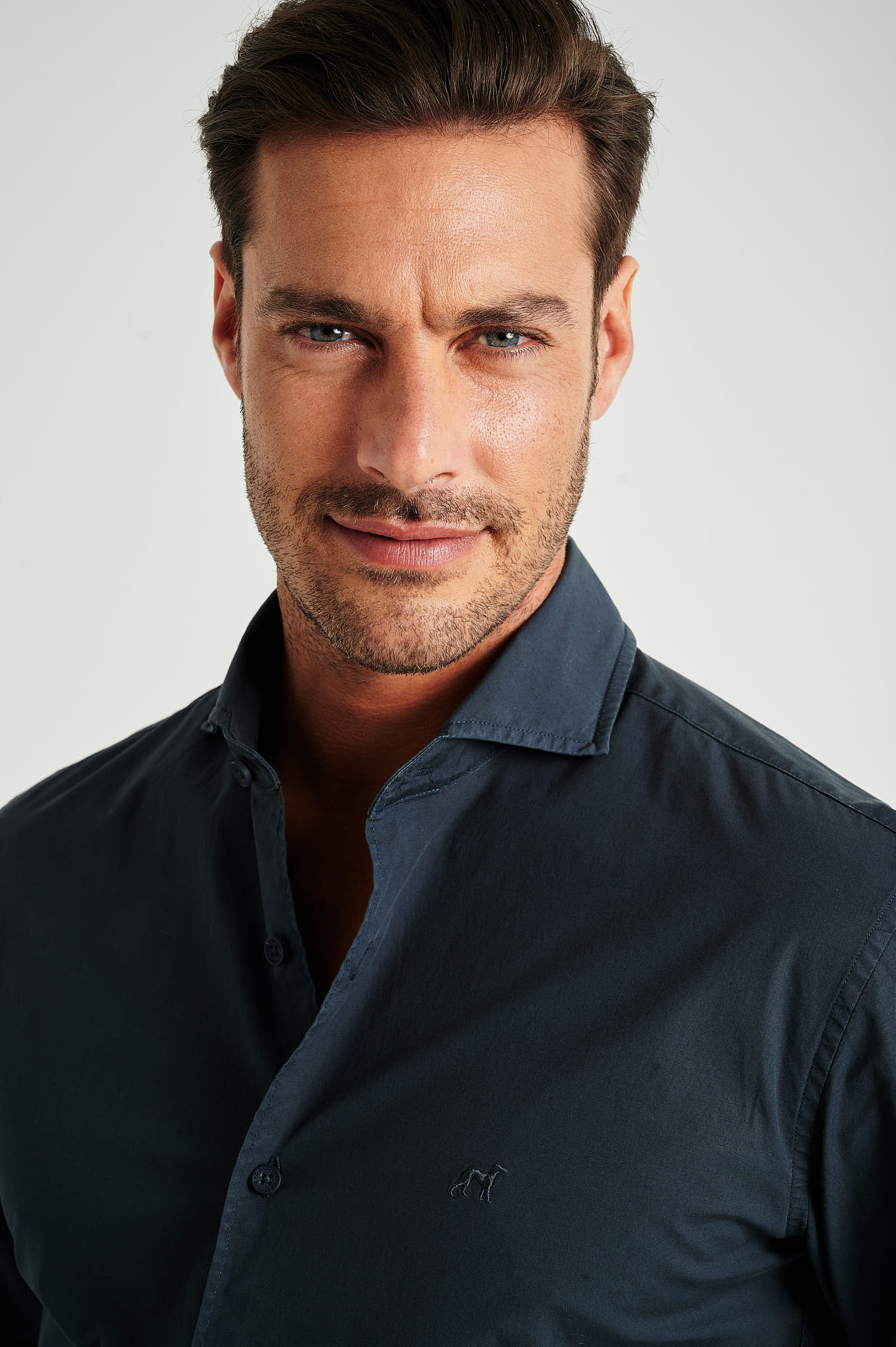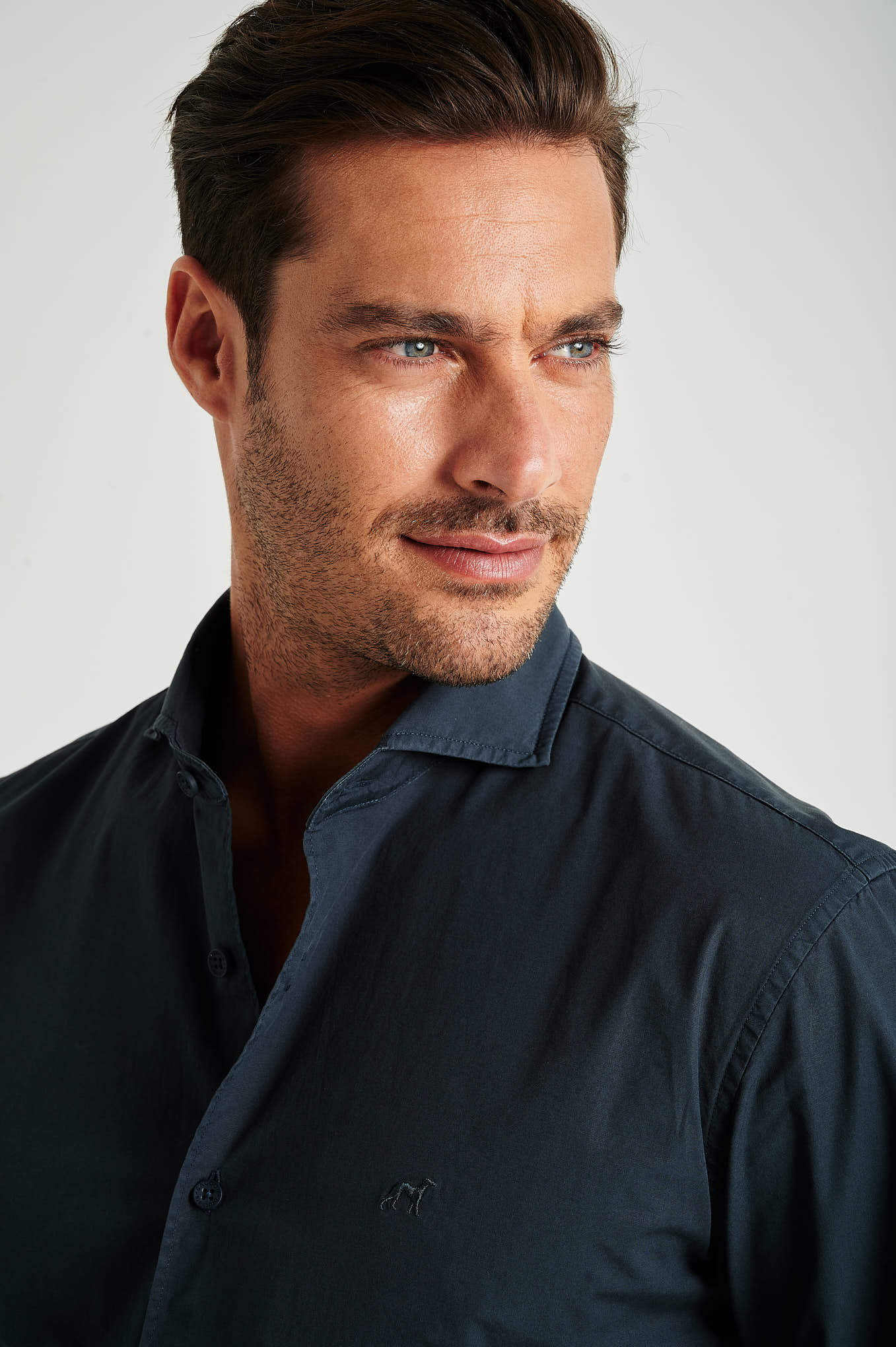 Slim fit cotton elastane comfort poplin shirt in garment dye
