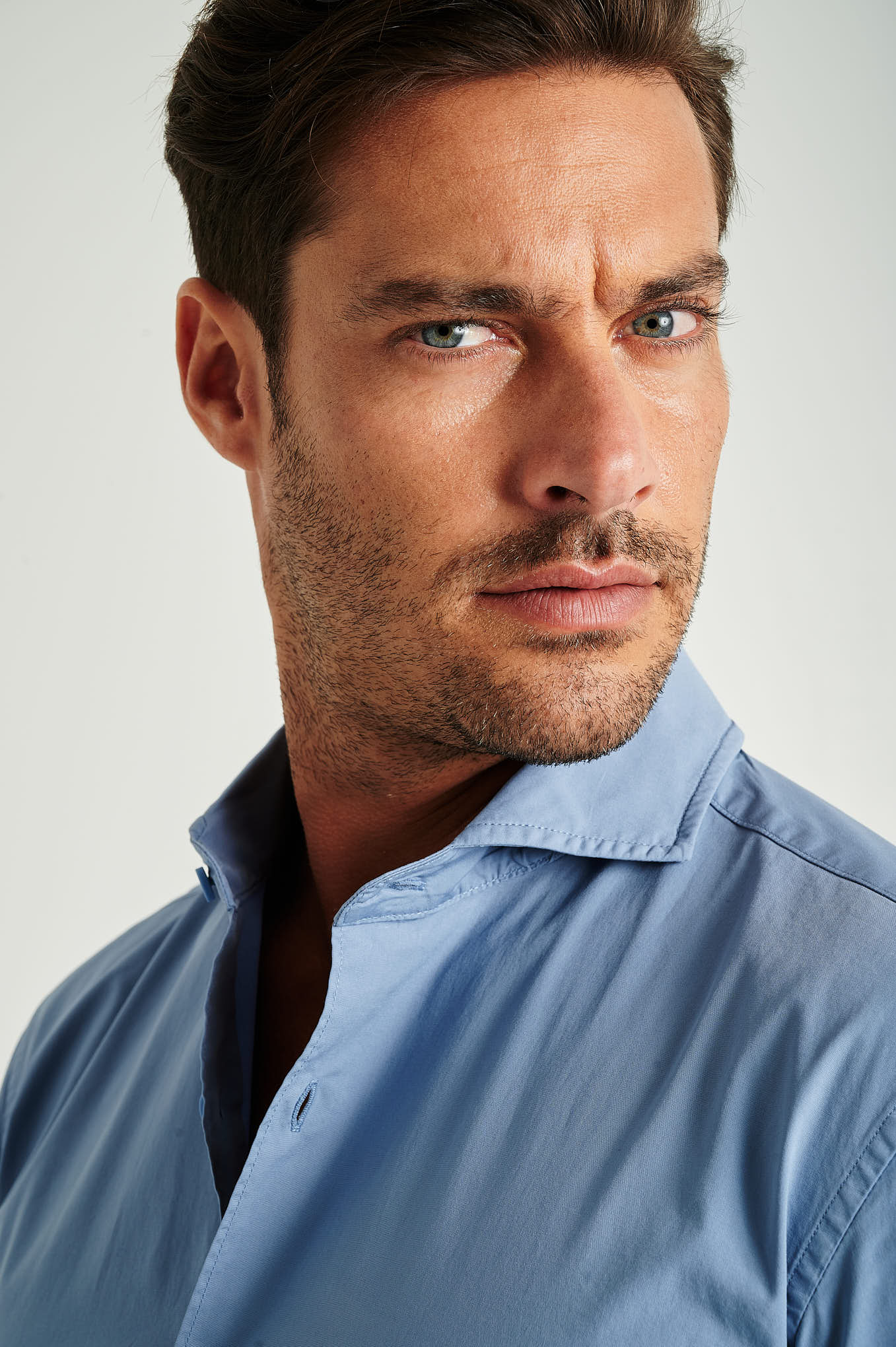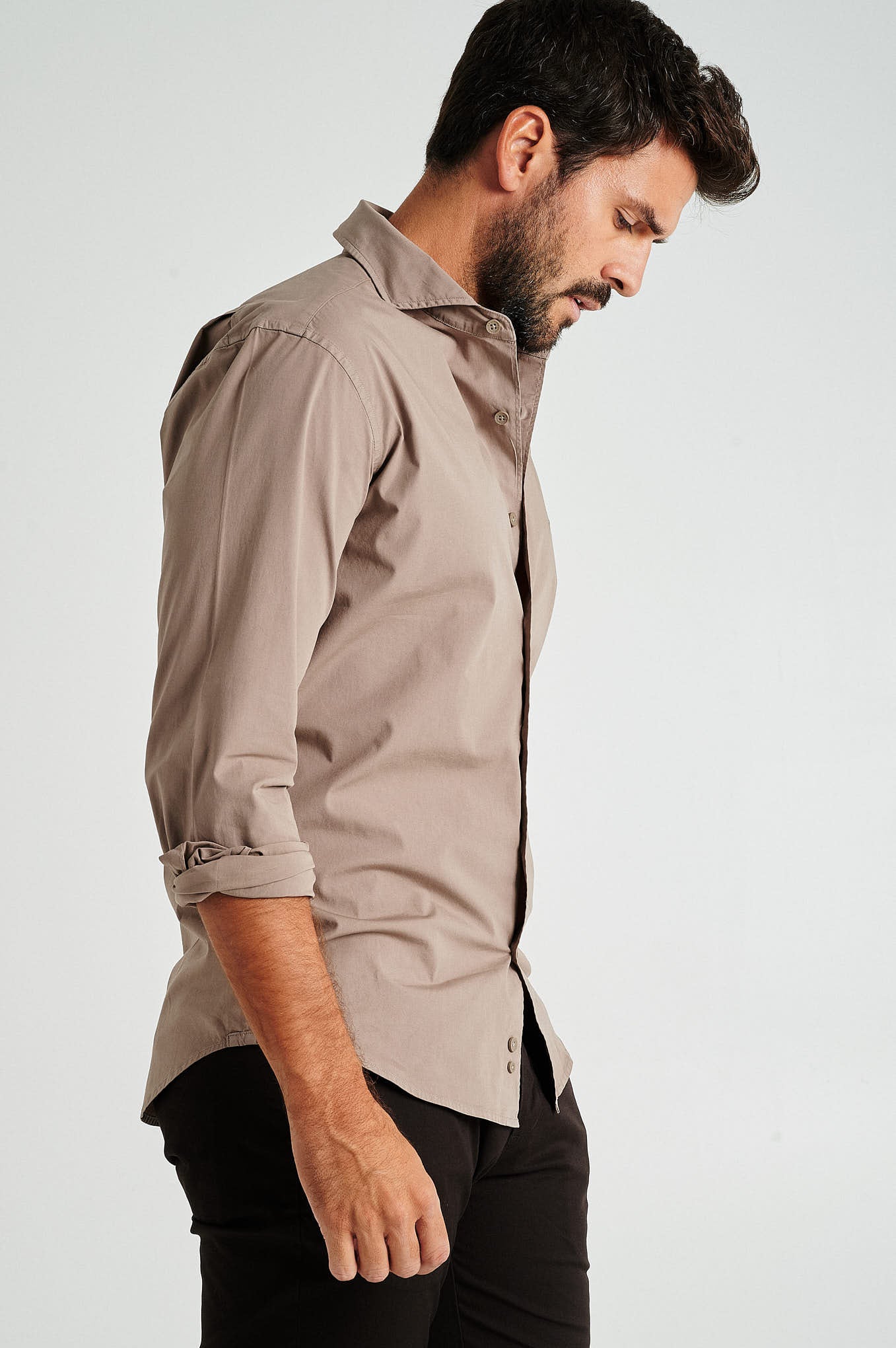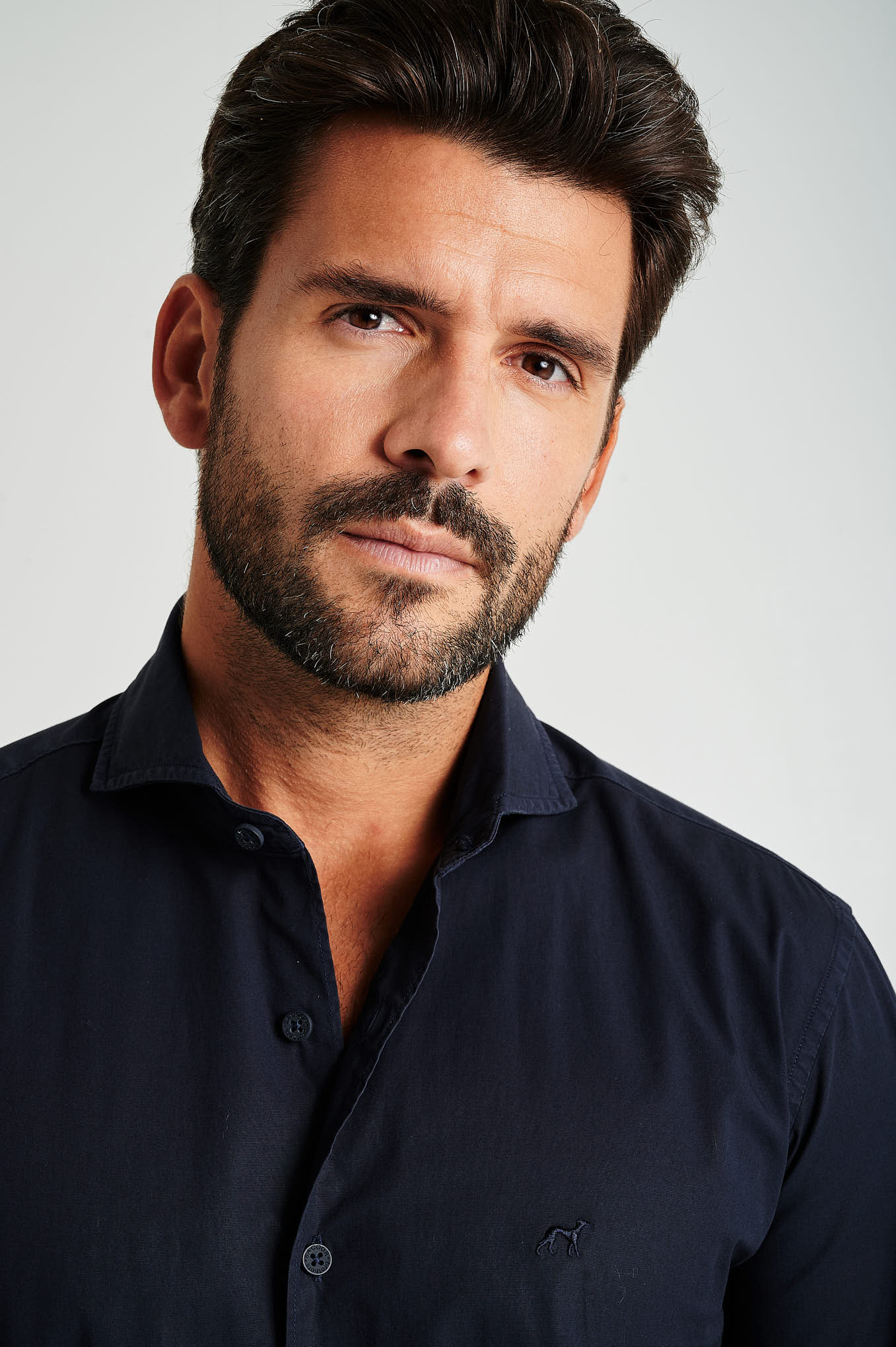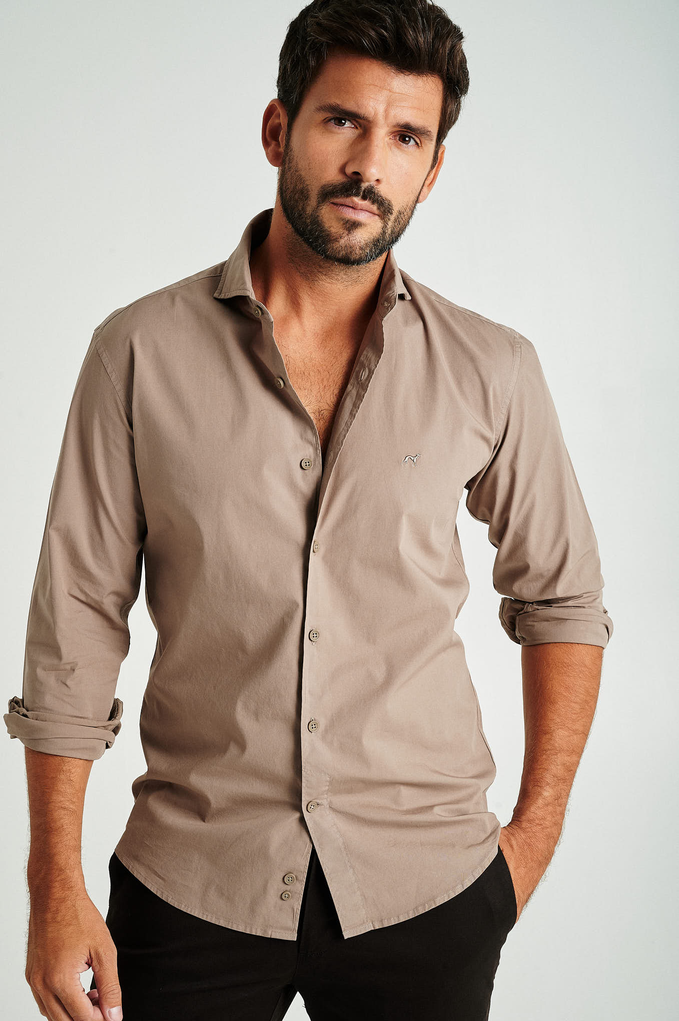 Slim fit cotton elastane comfort poplin shirt in garment dye