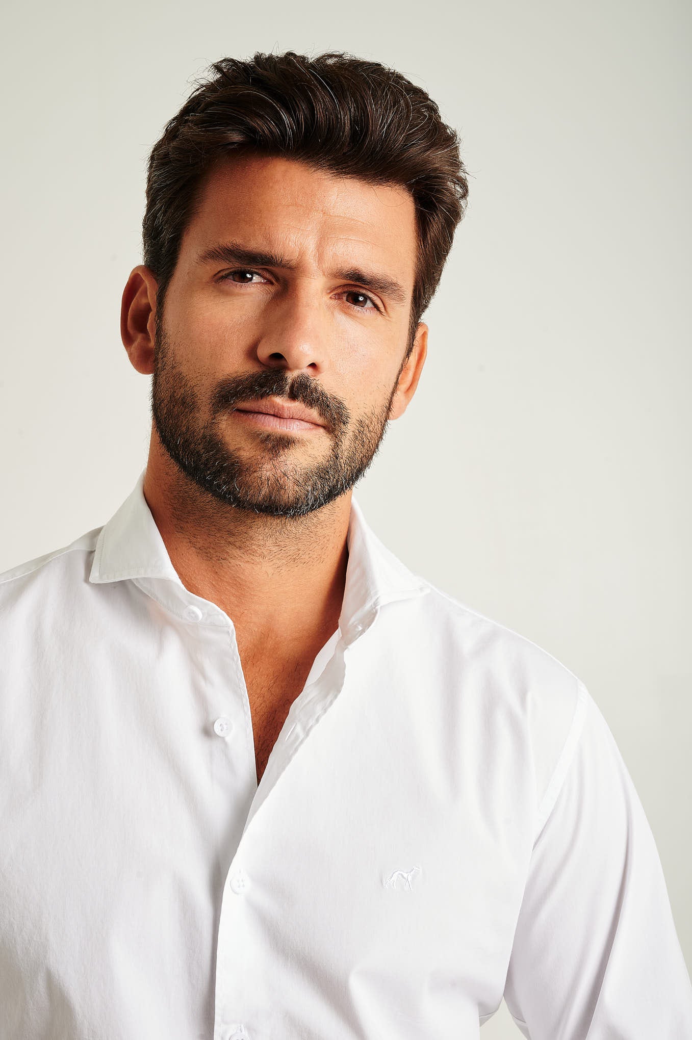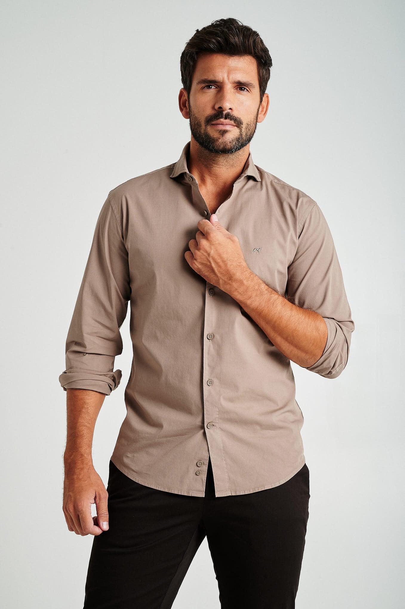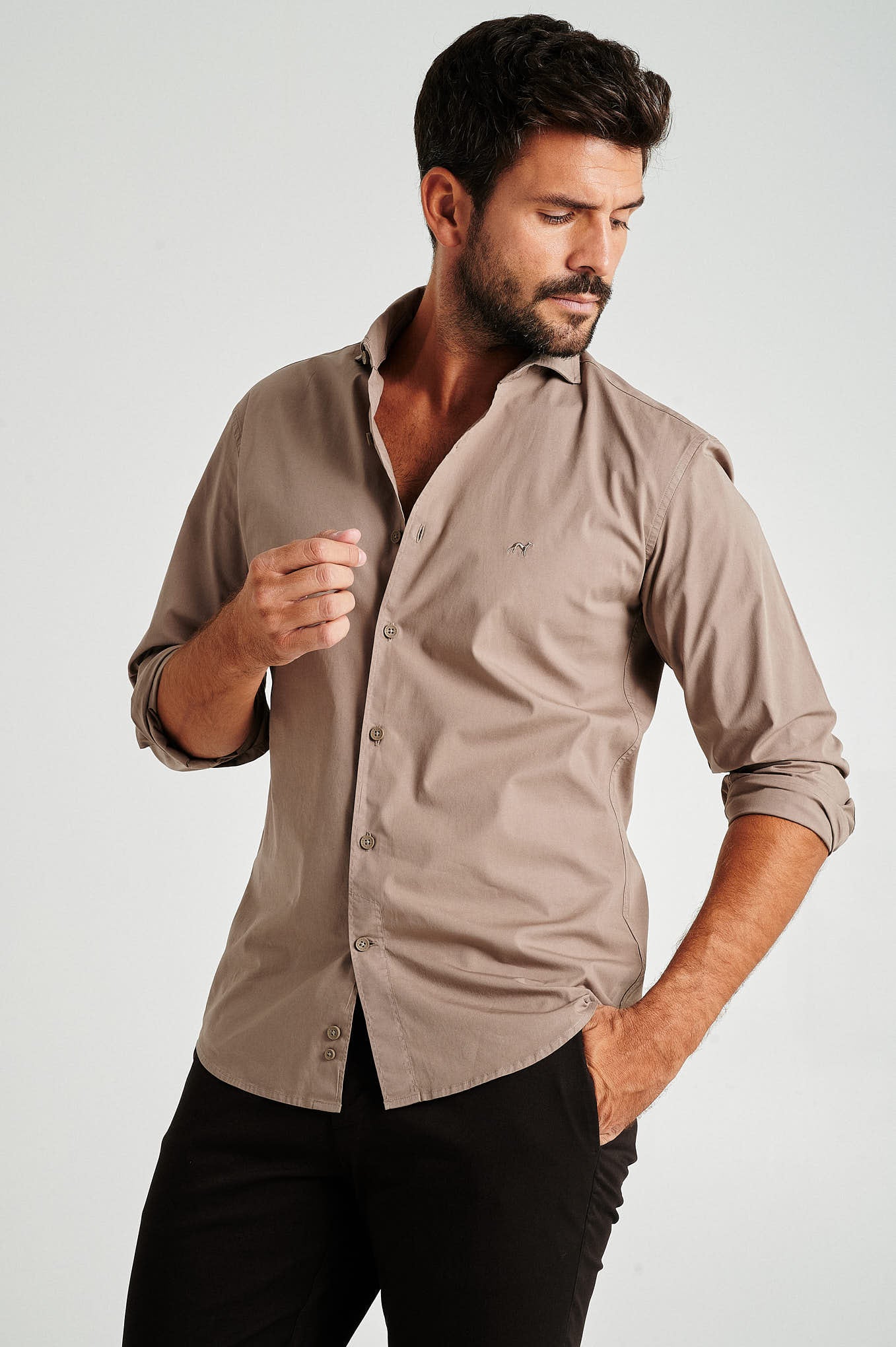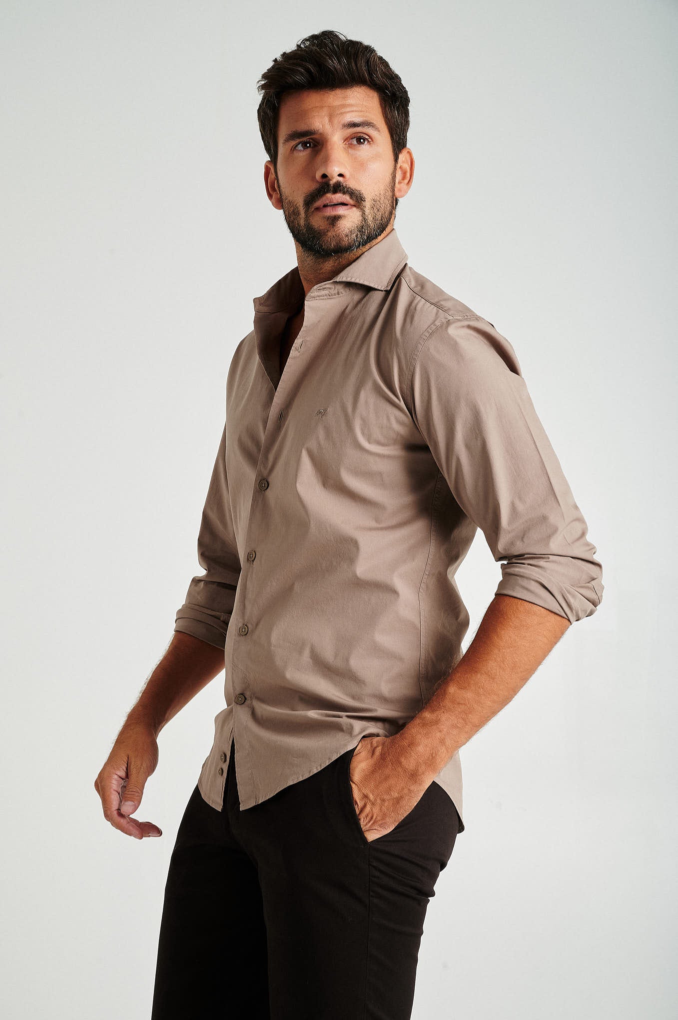 Slim fit cotton elastane comfort poplin shirt in garment dye