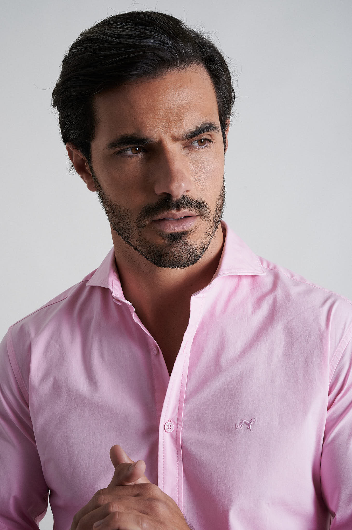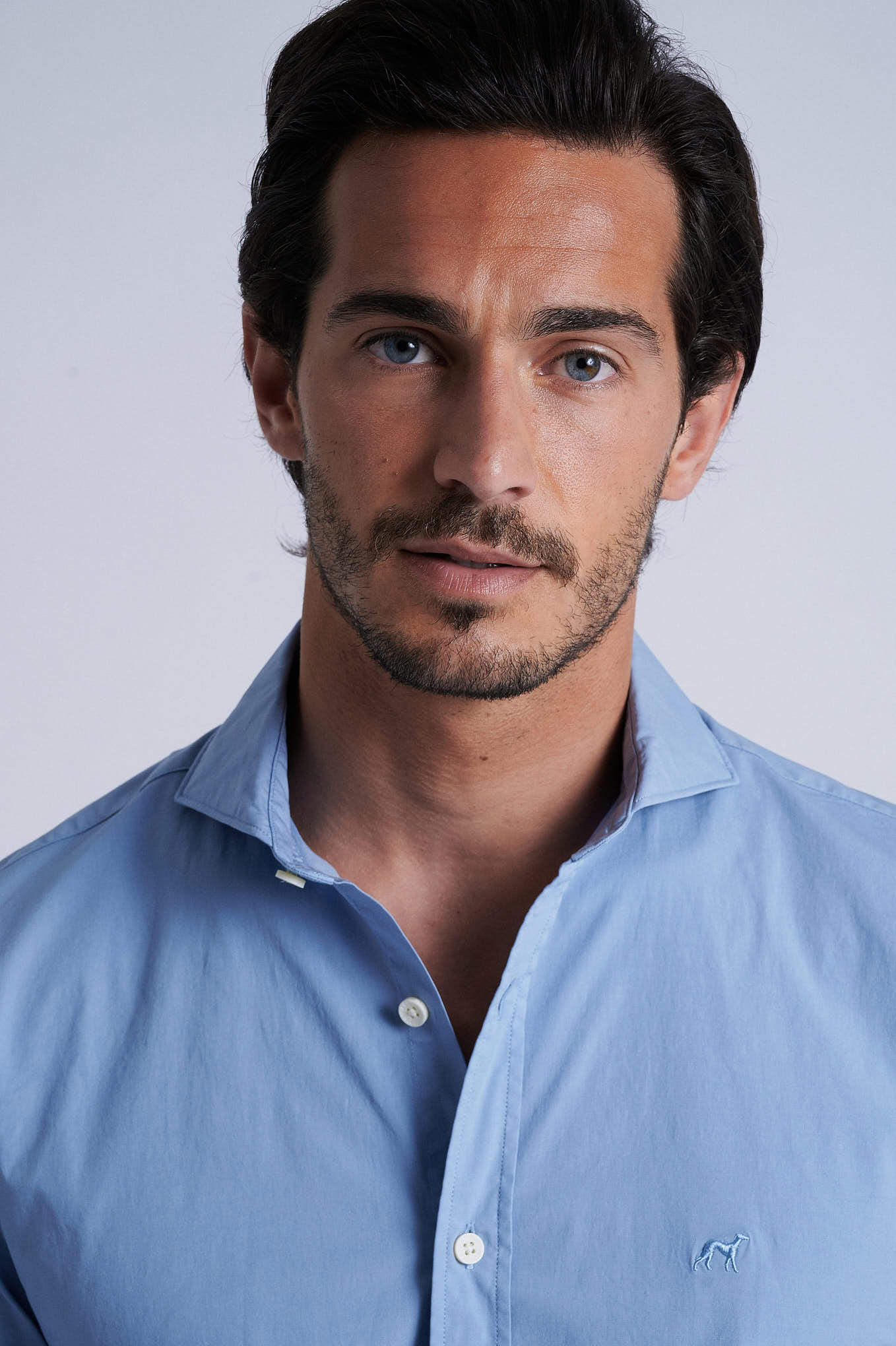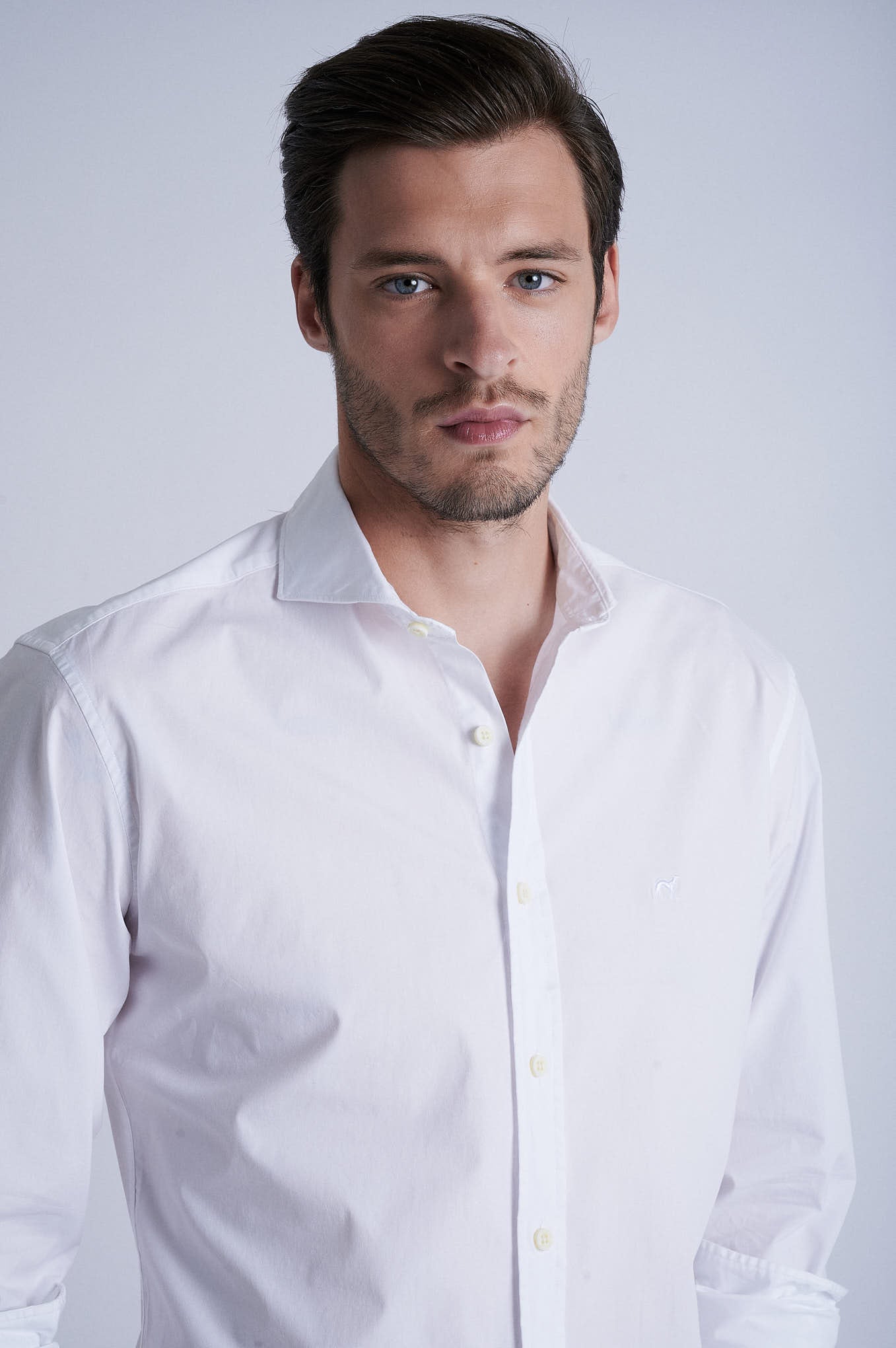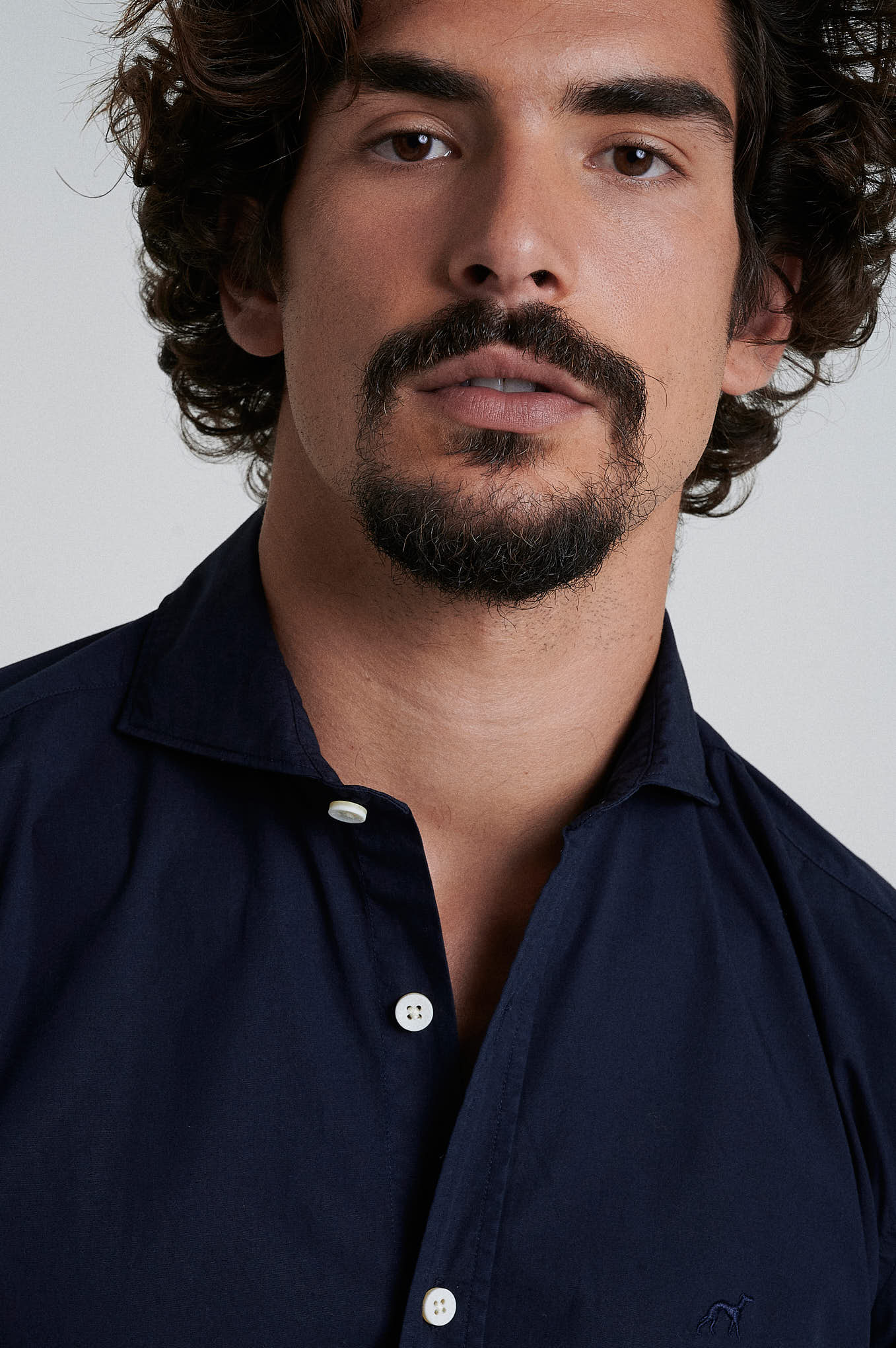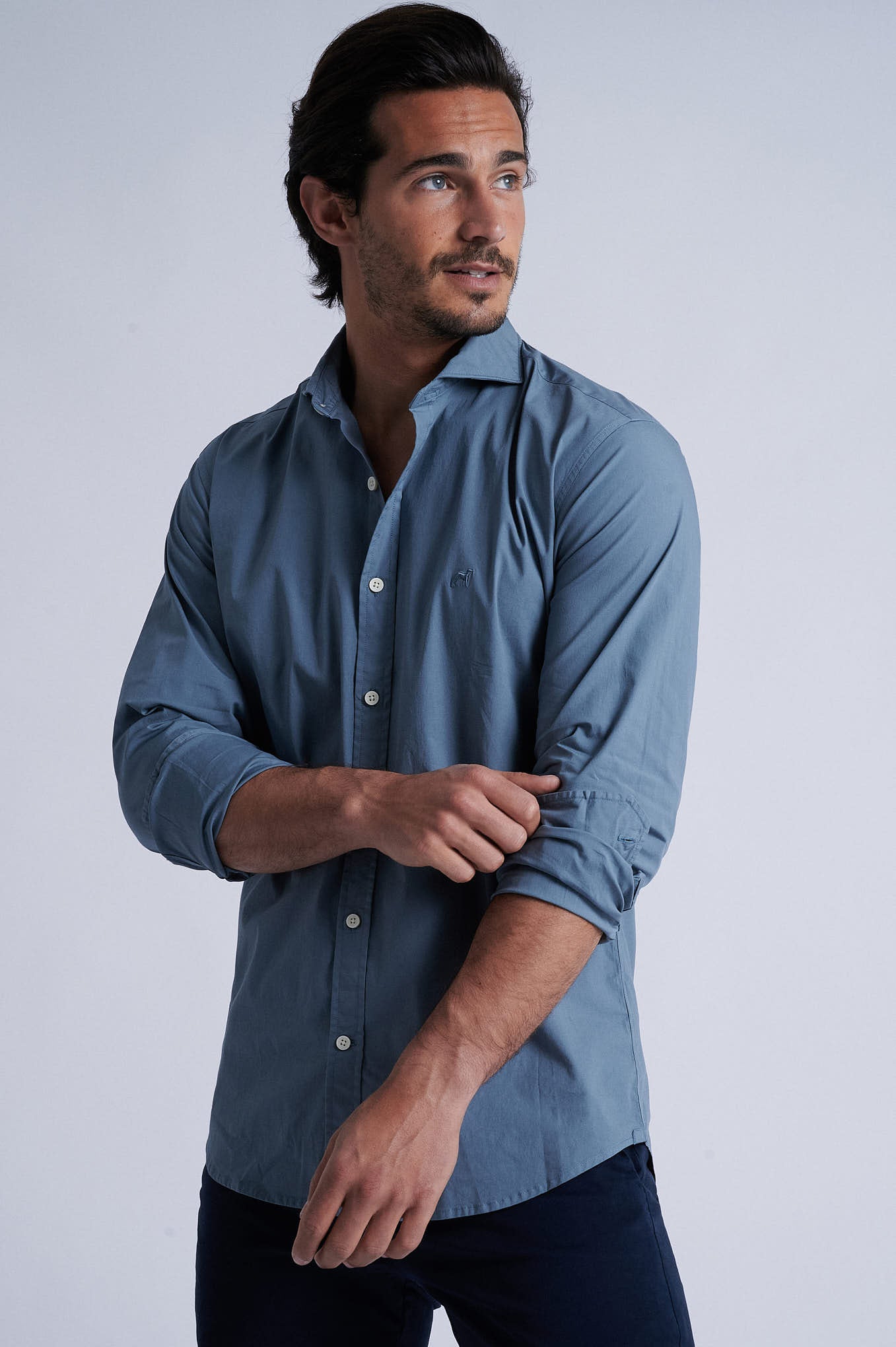 Slim fit cotton elastane comfort poplin shirt in garment dye