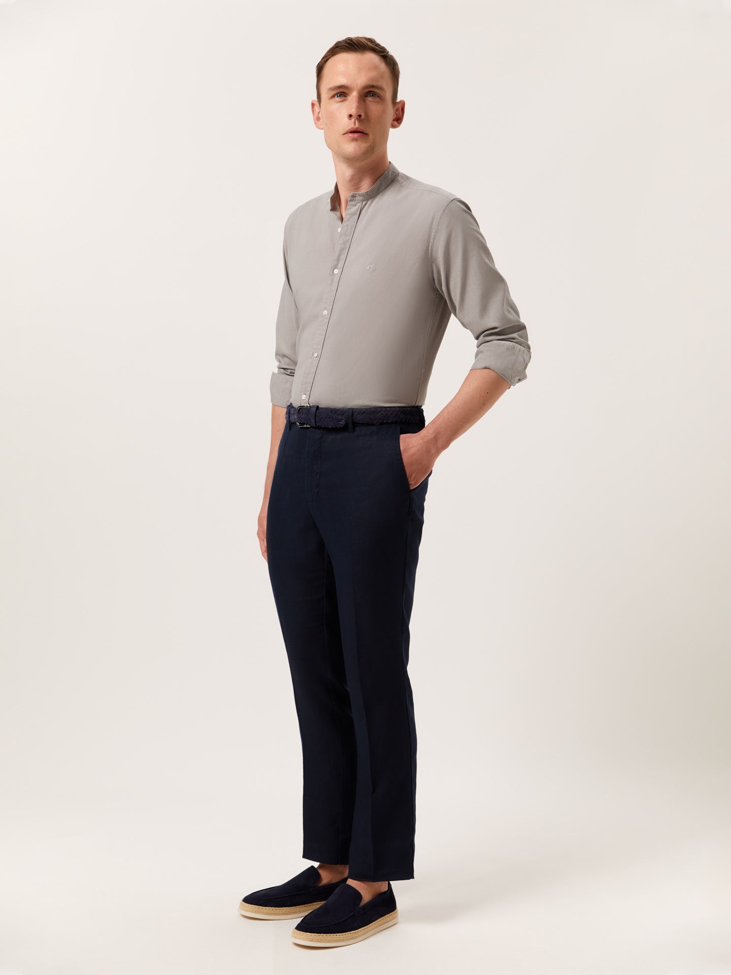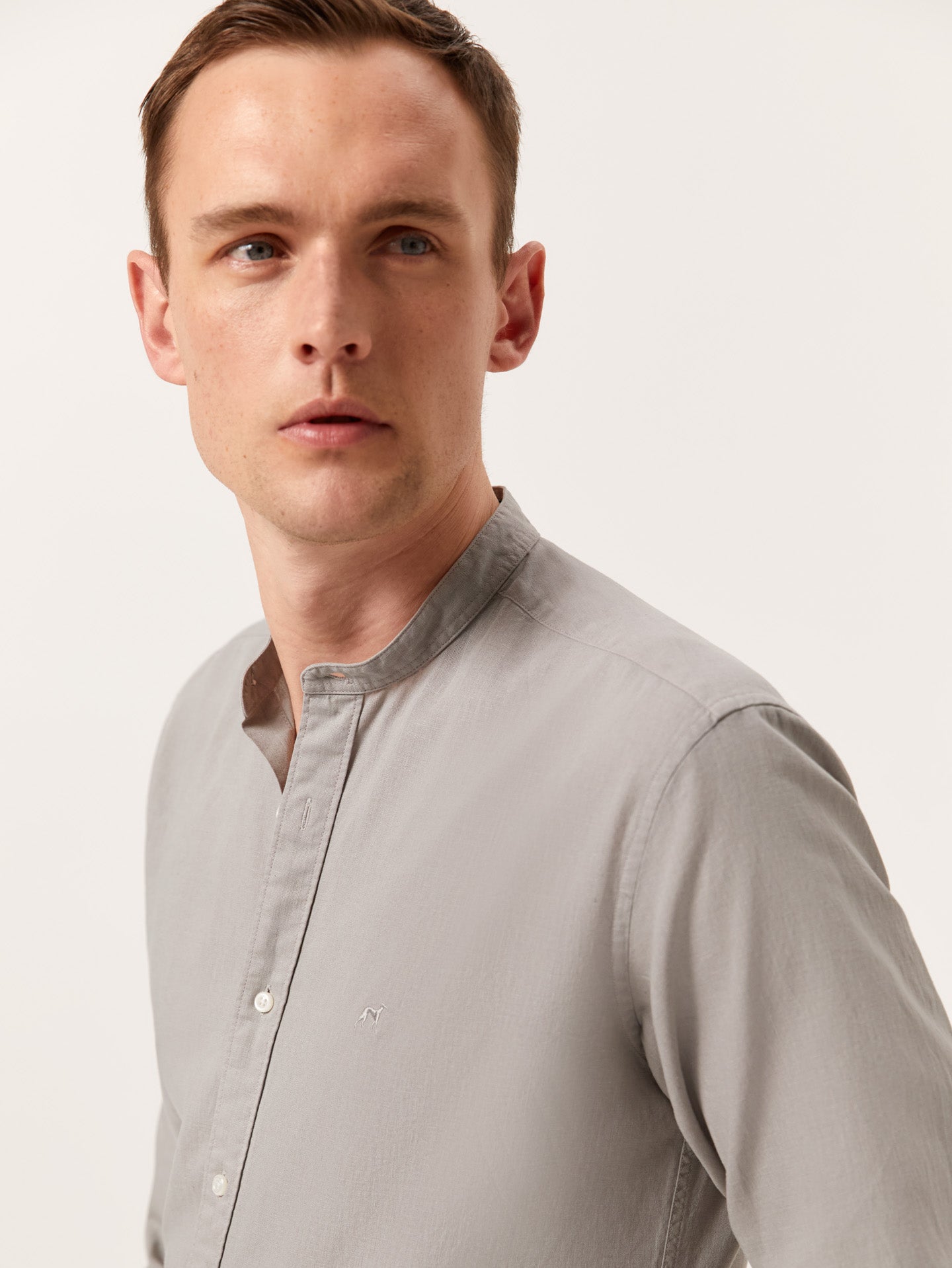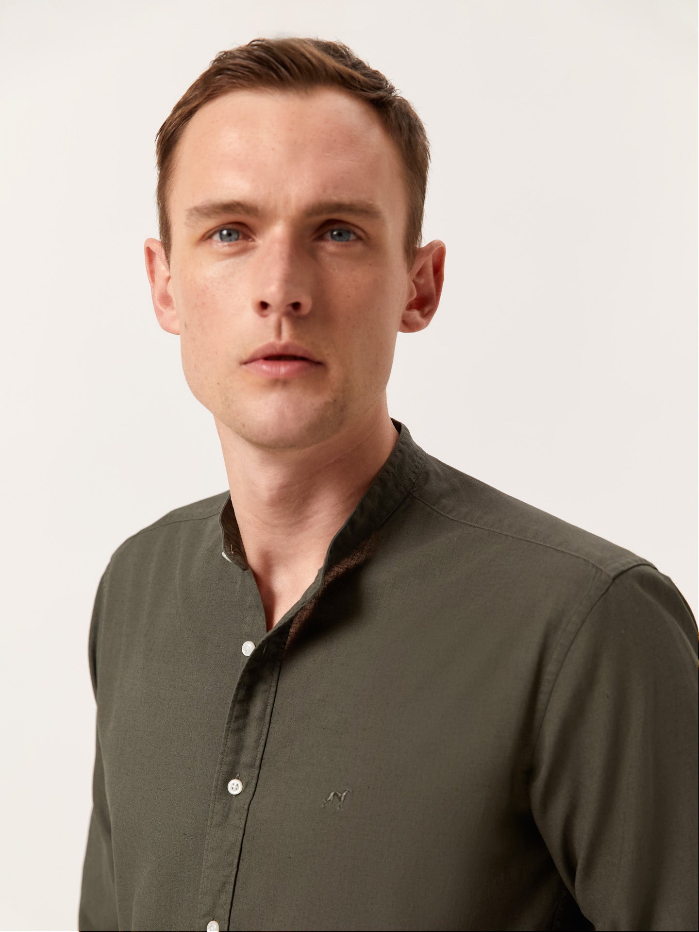 Slim Fit Garment Dye Cotton Linen Shirt with Mao Collar