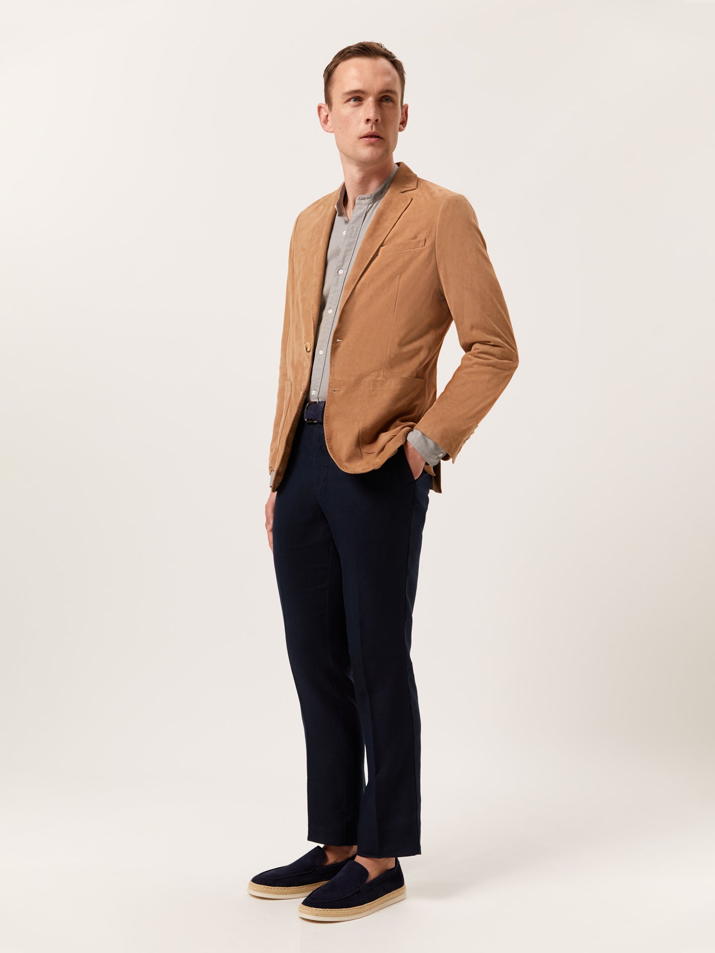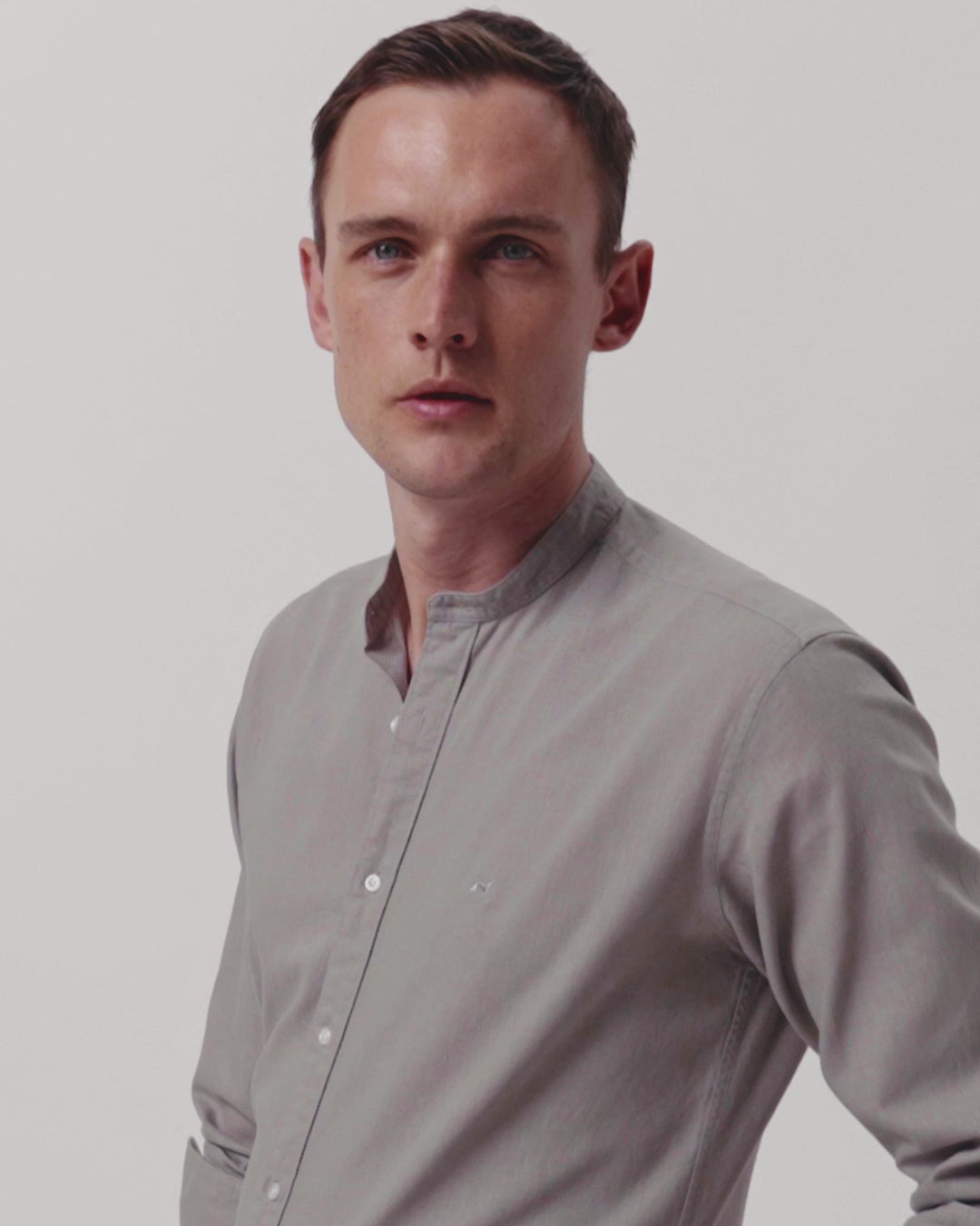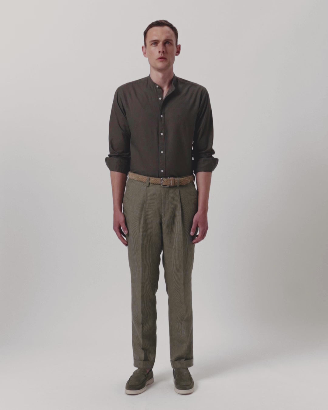 Slim Fit Garment Dye Cotton Linen Shirt with Mao Collar