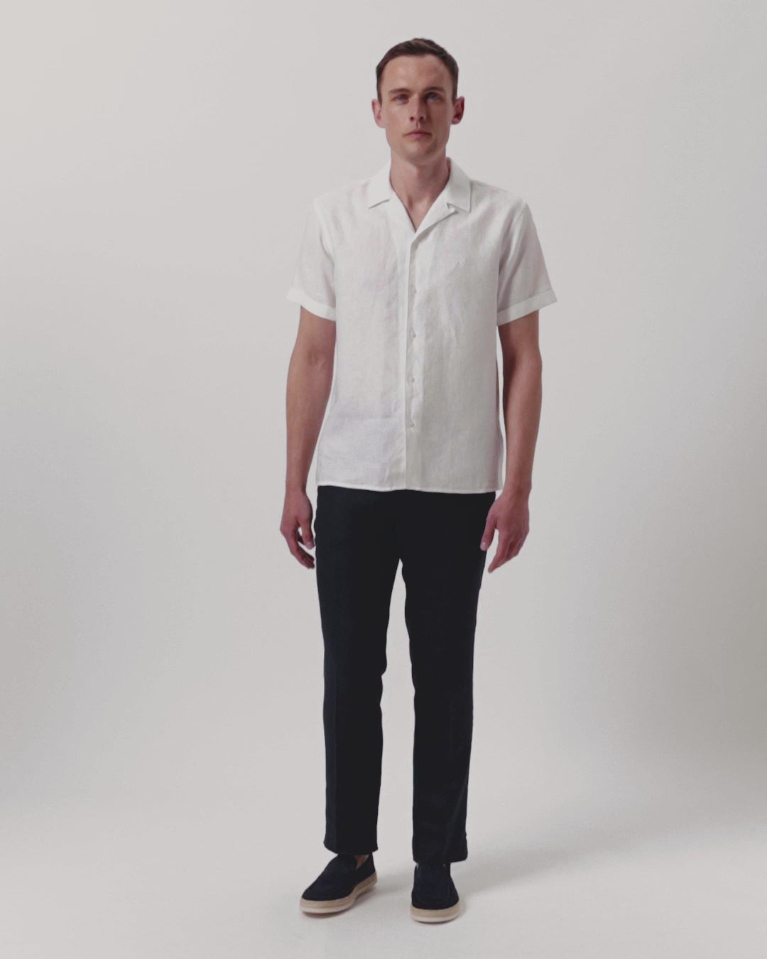 Slim Fit Garment Dye Cotton Linen Shirt with Mao Collar