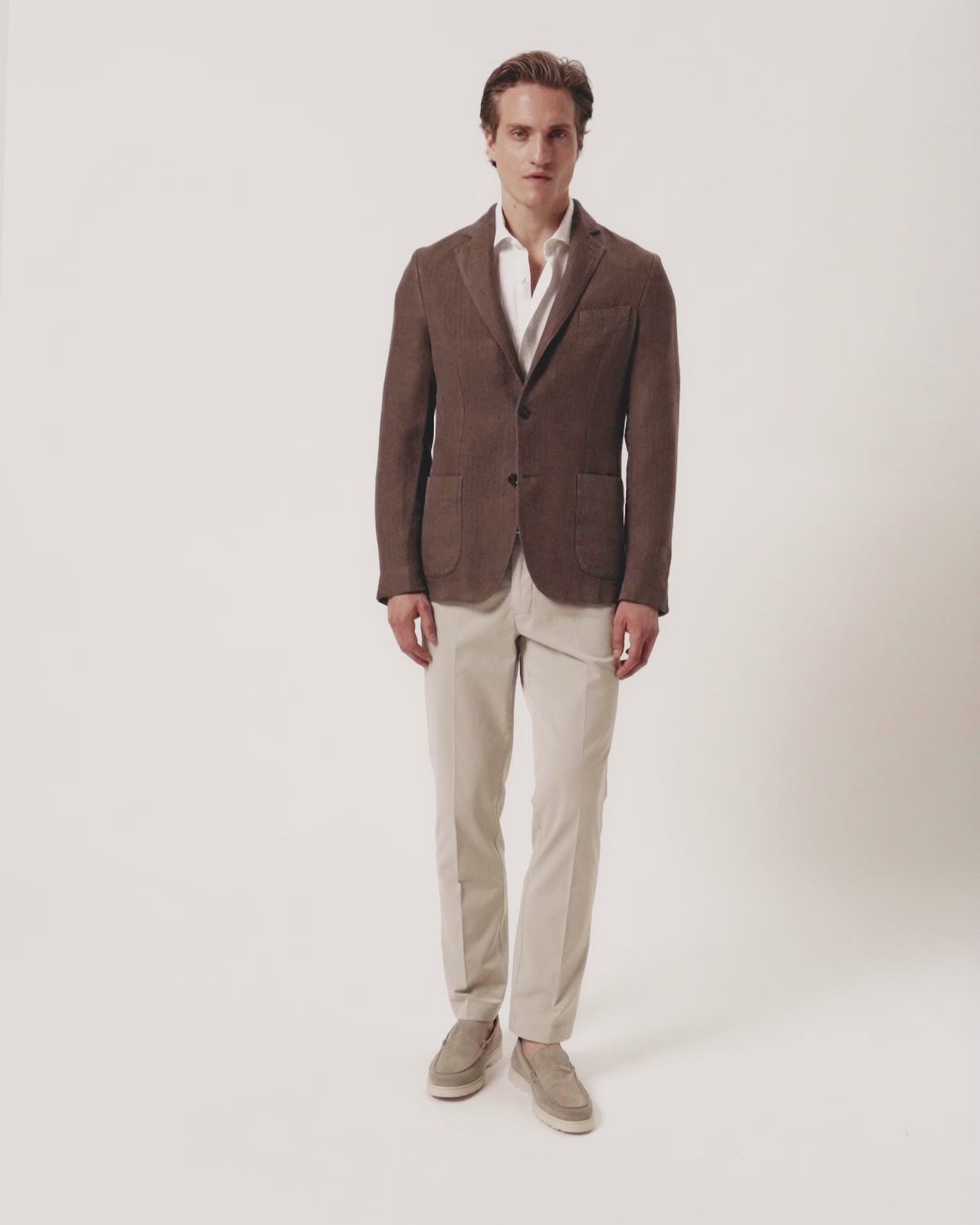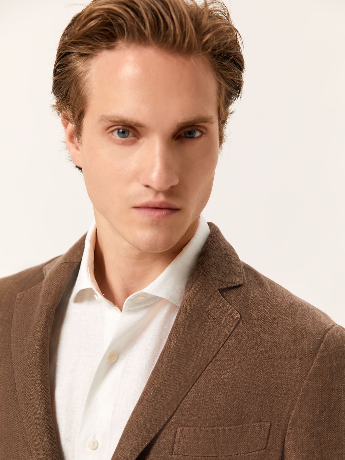 Slim Fit Garment Dye herringbone Blazer in 100% Linen
