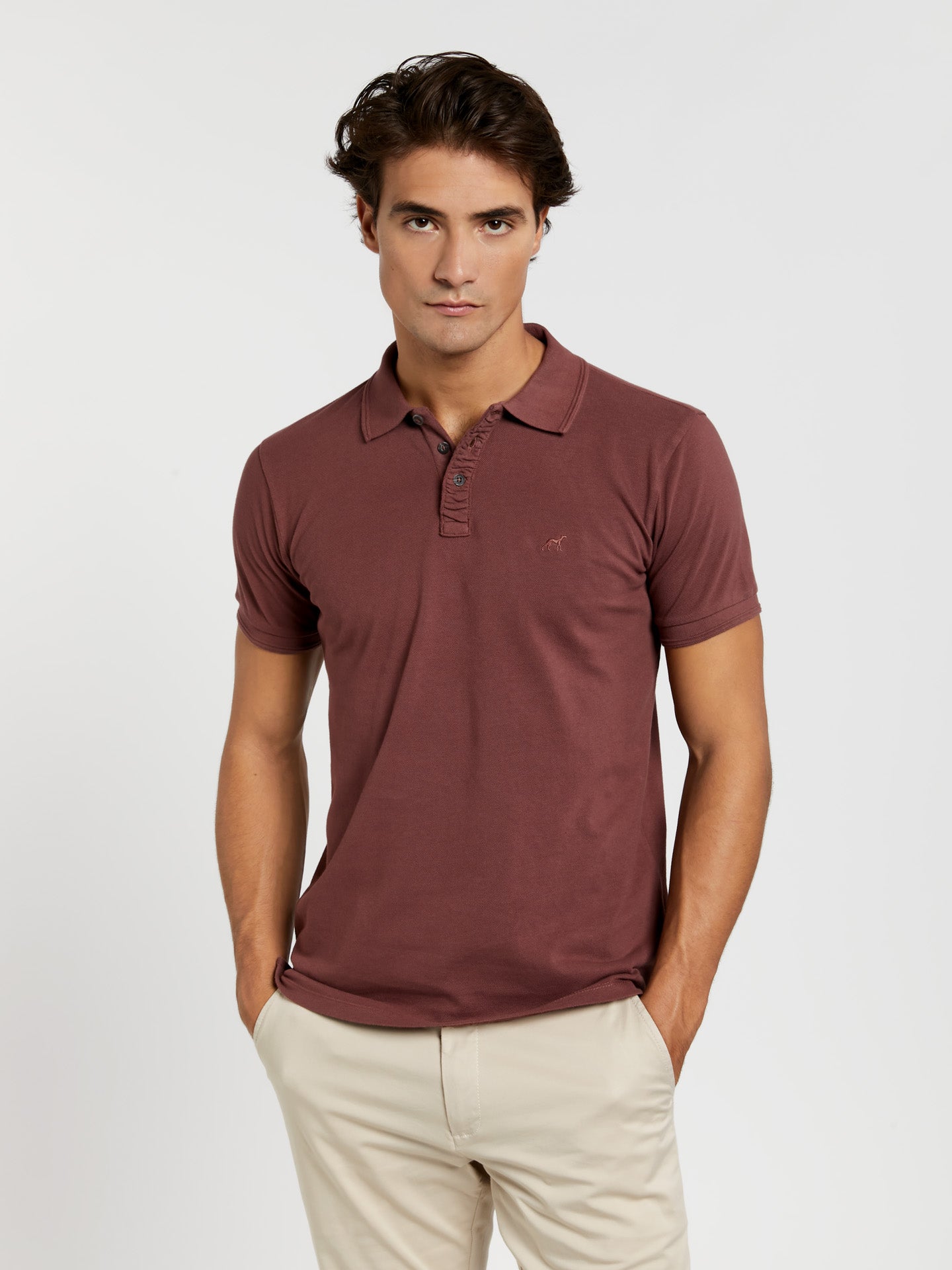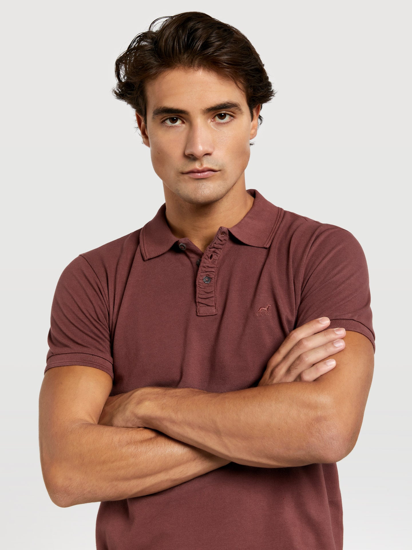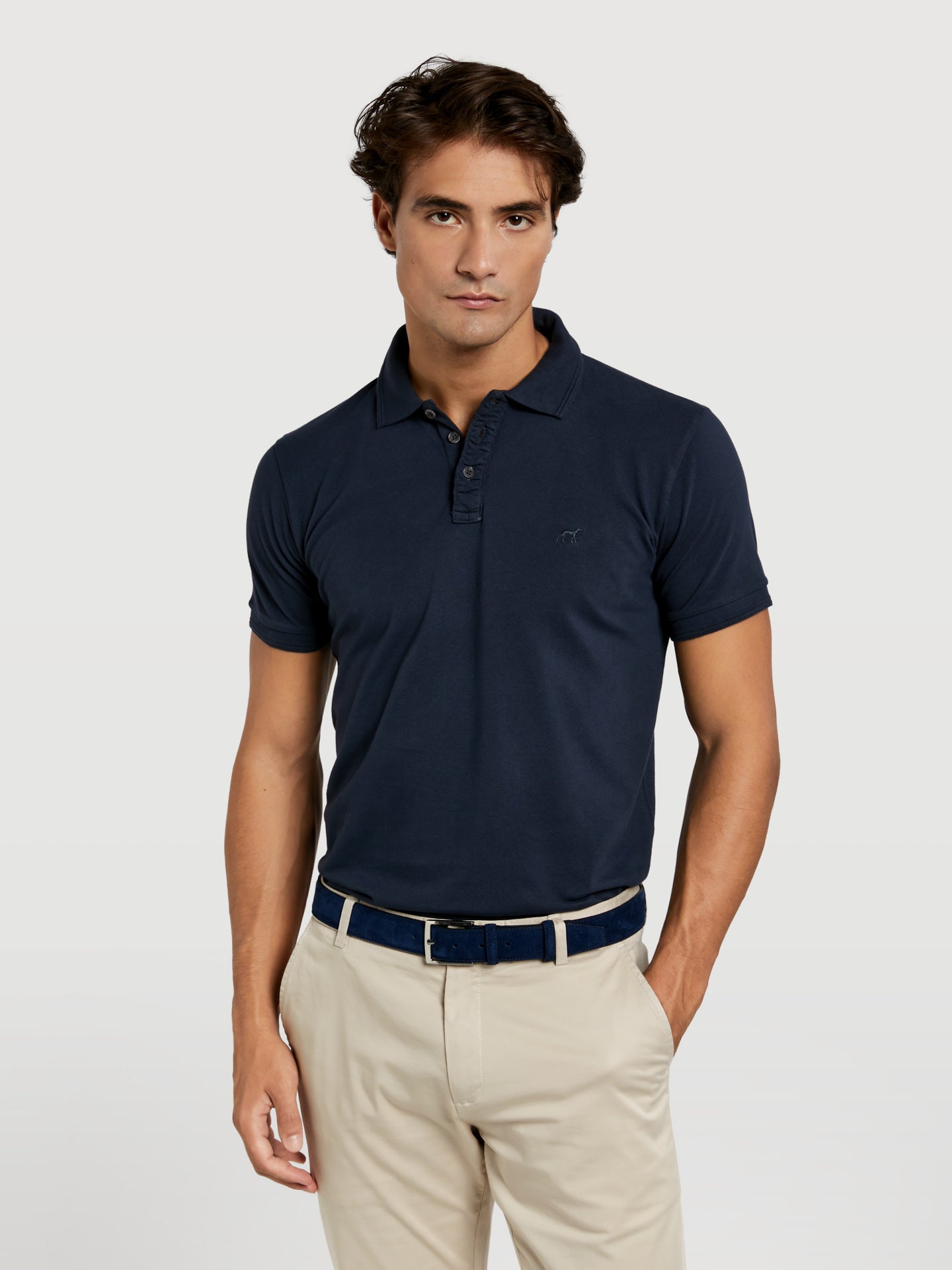 Slim fit garment dye piqué polo shirt with wrinkled placket