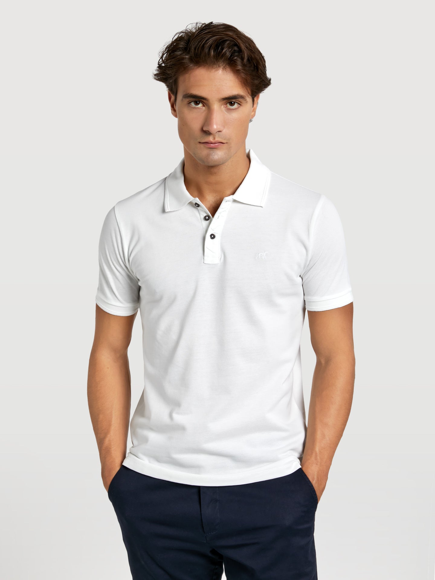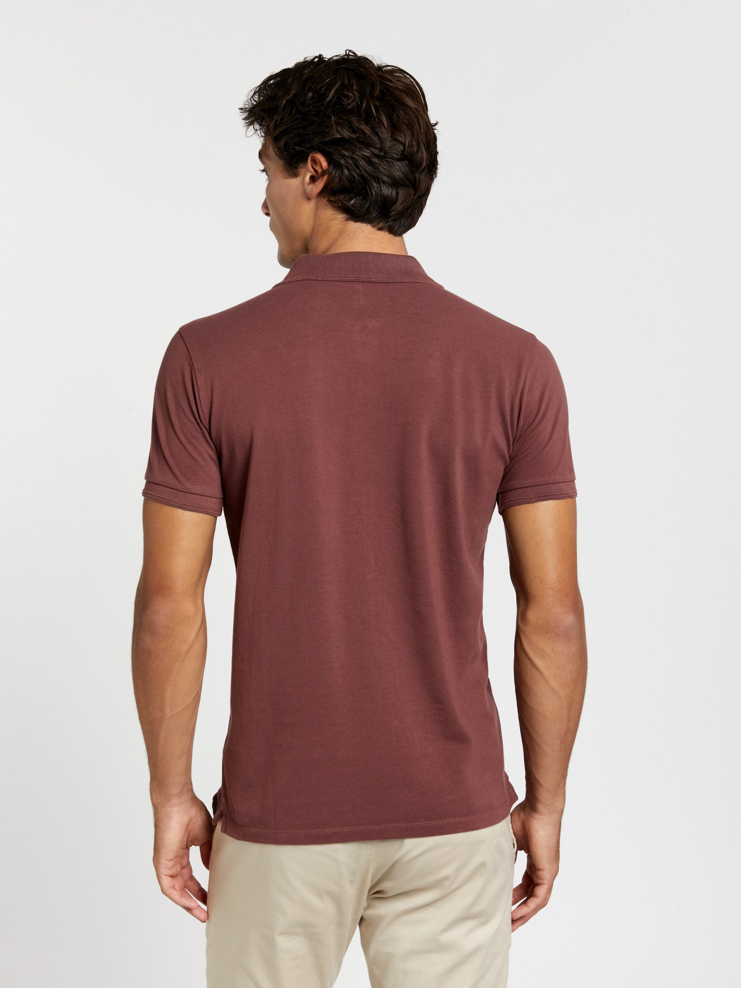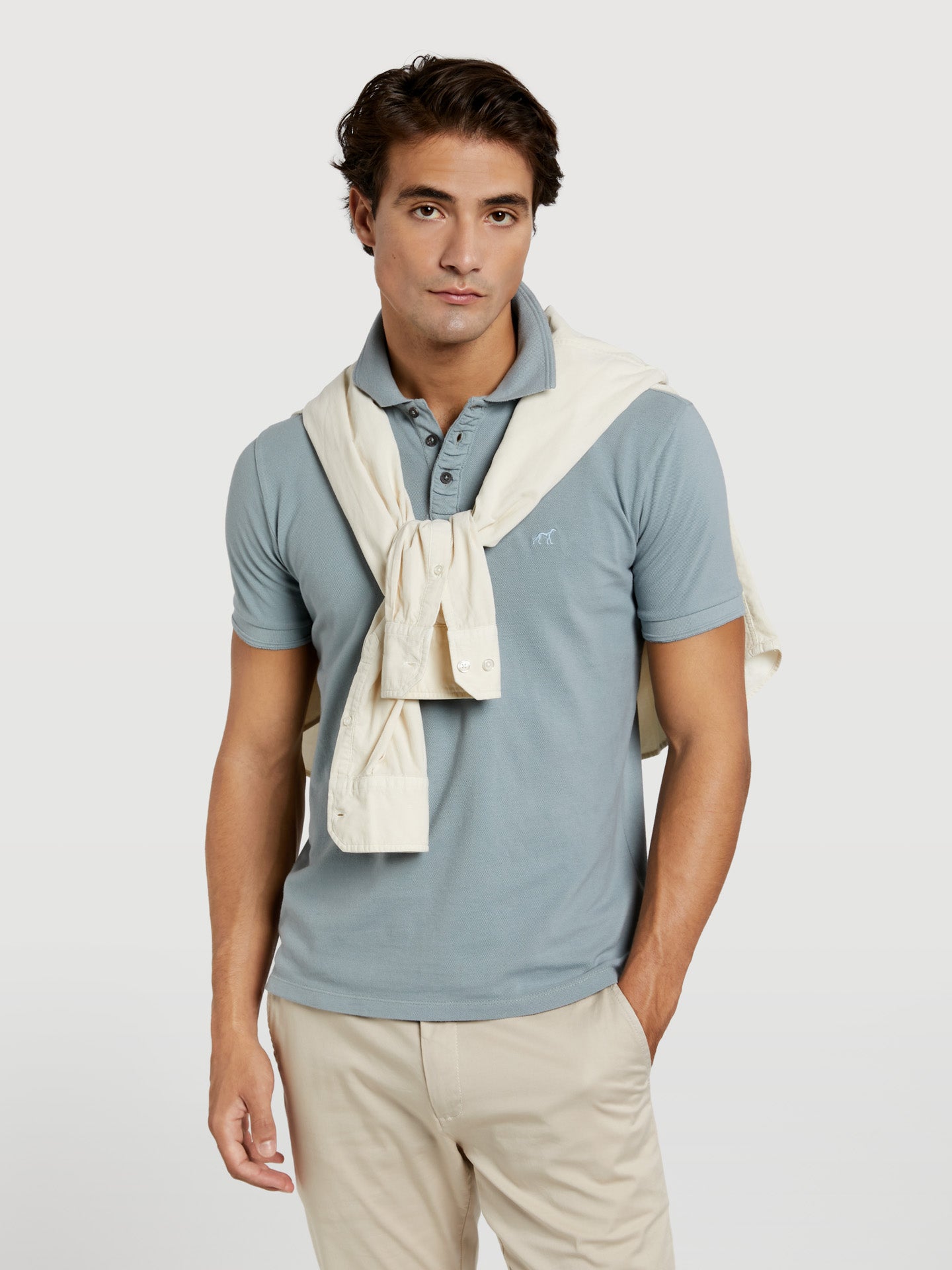Slim fit garment dye piqué polo shirt with wrinkled placket